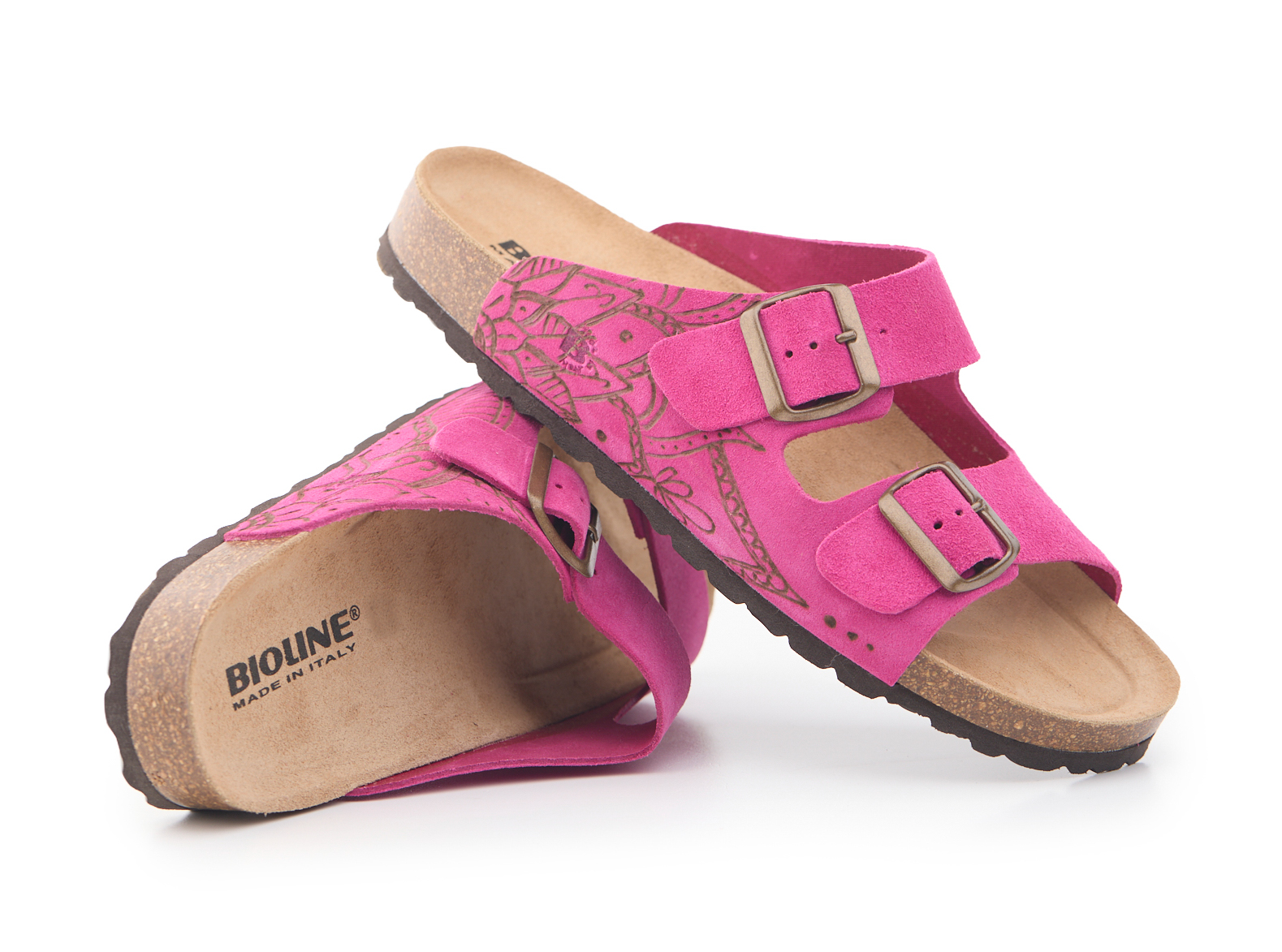 Anatomically shaped rubber-cork footbed, closed-cell EVA sole resistant to corrosion, seawater, oils and grease, non-polluting, resilient and resistant to traction, good shock absorption.