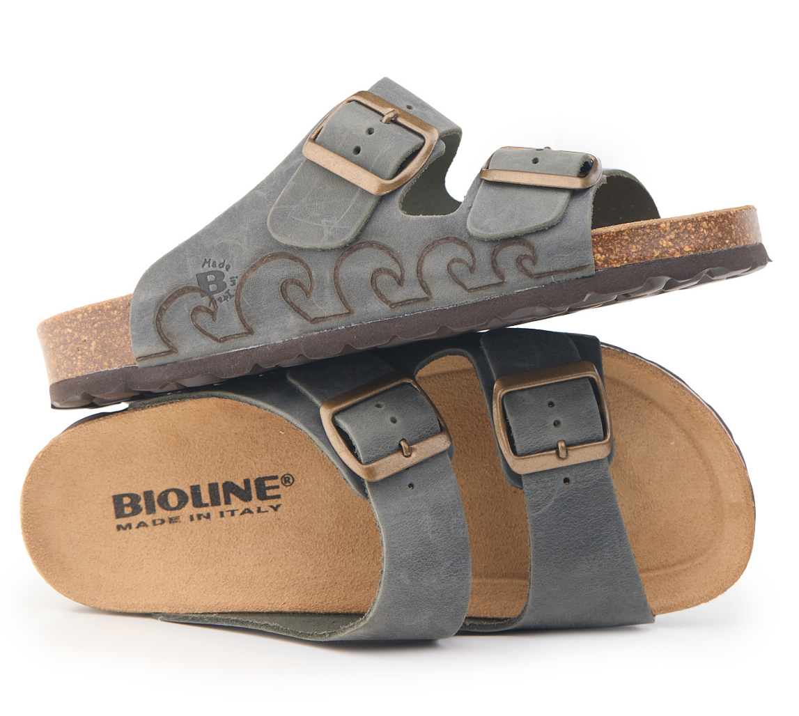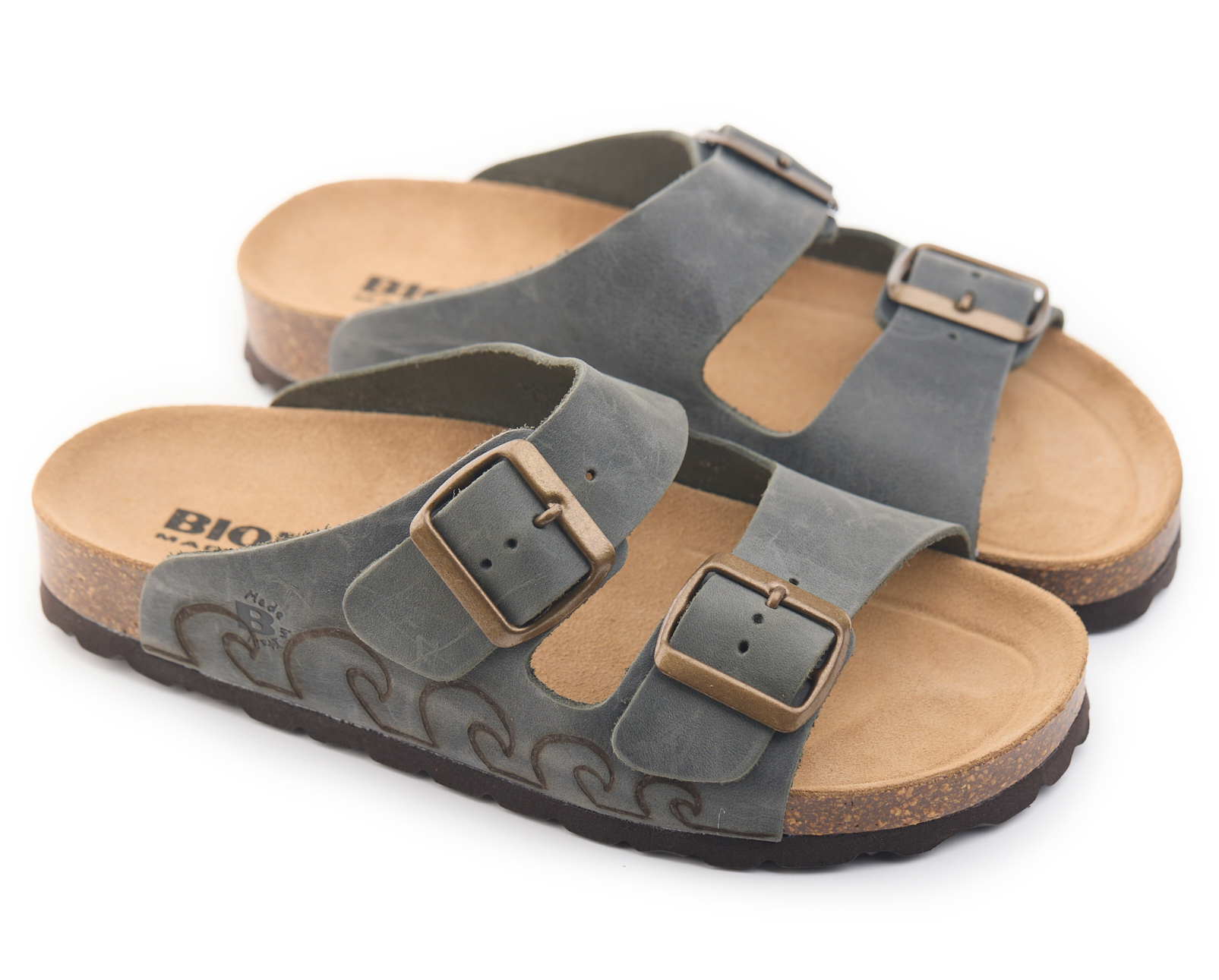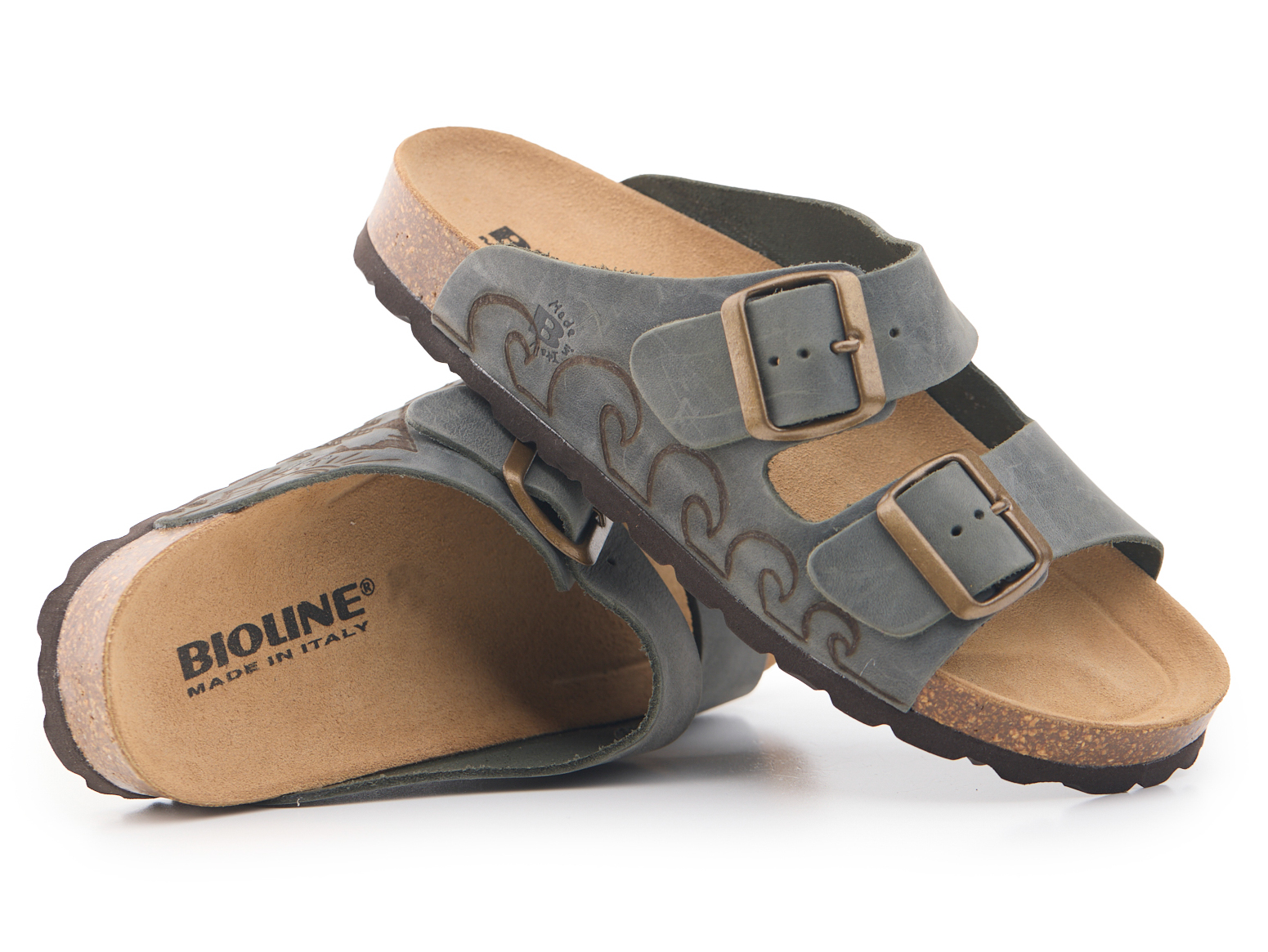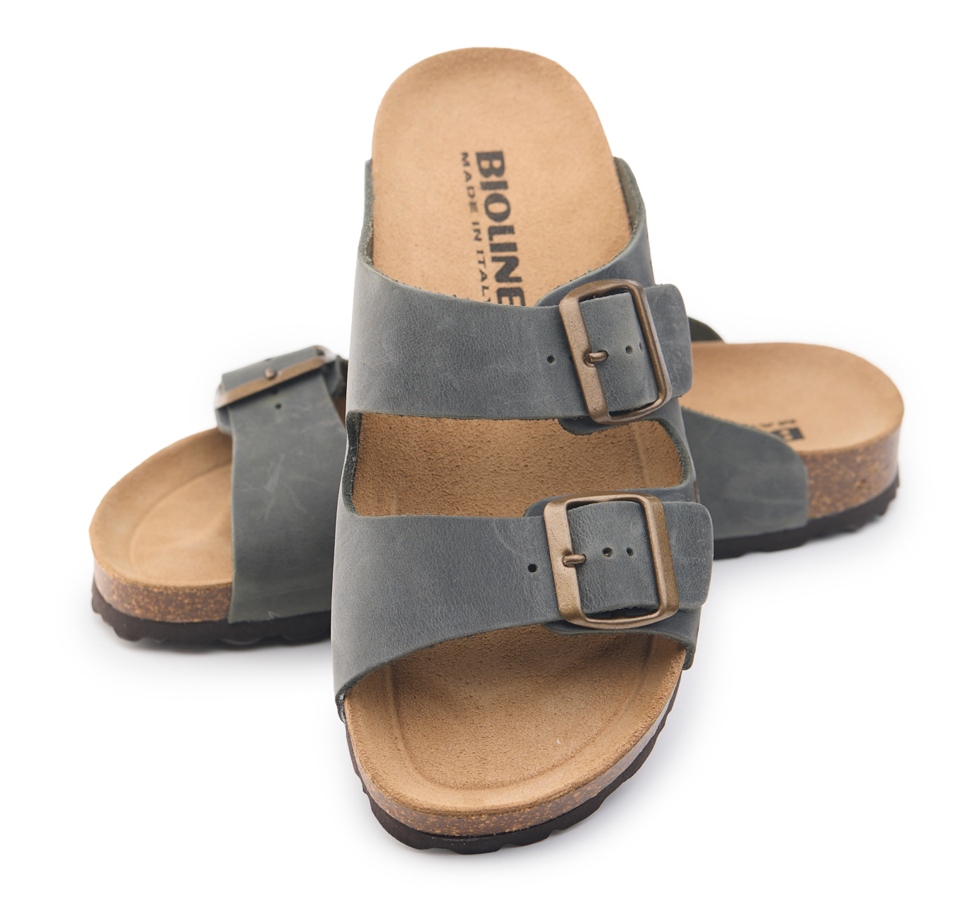 Anatomically shaped rubber-cork footbed, closed-cell EVA sole resistant to corrosion, seawater, oils and grease, non-polluting, resilient and resistant to traction, good shock absorption.