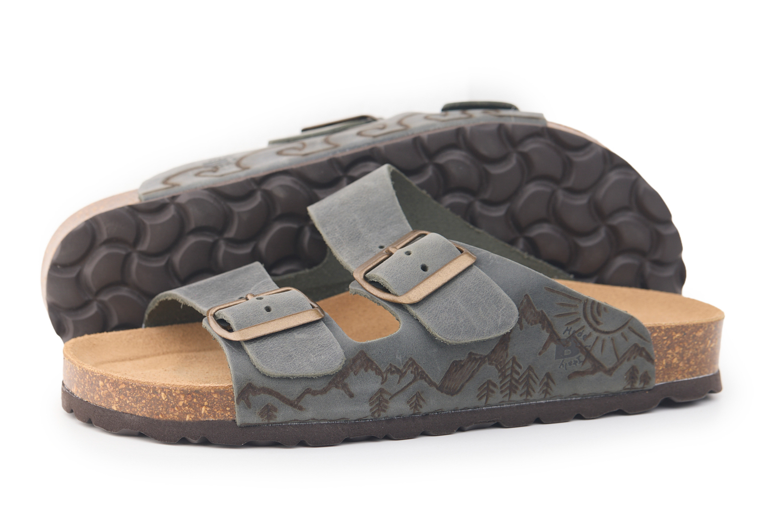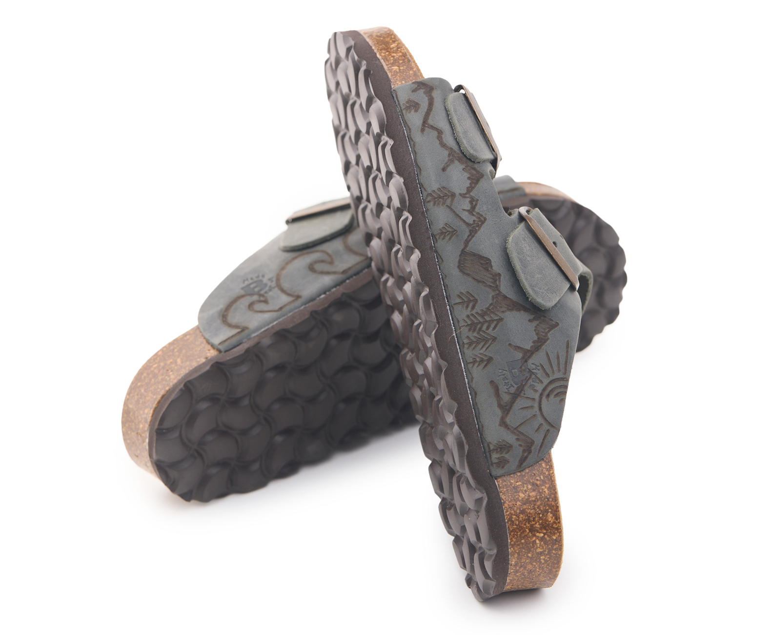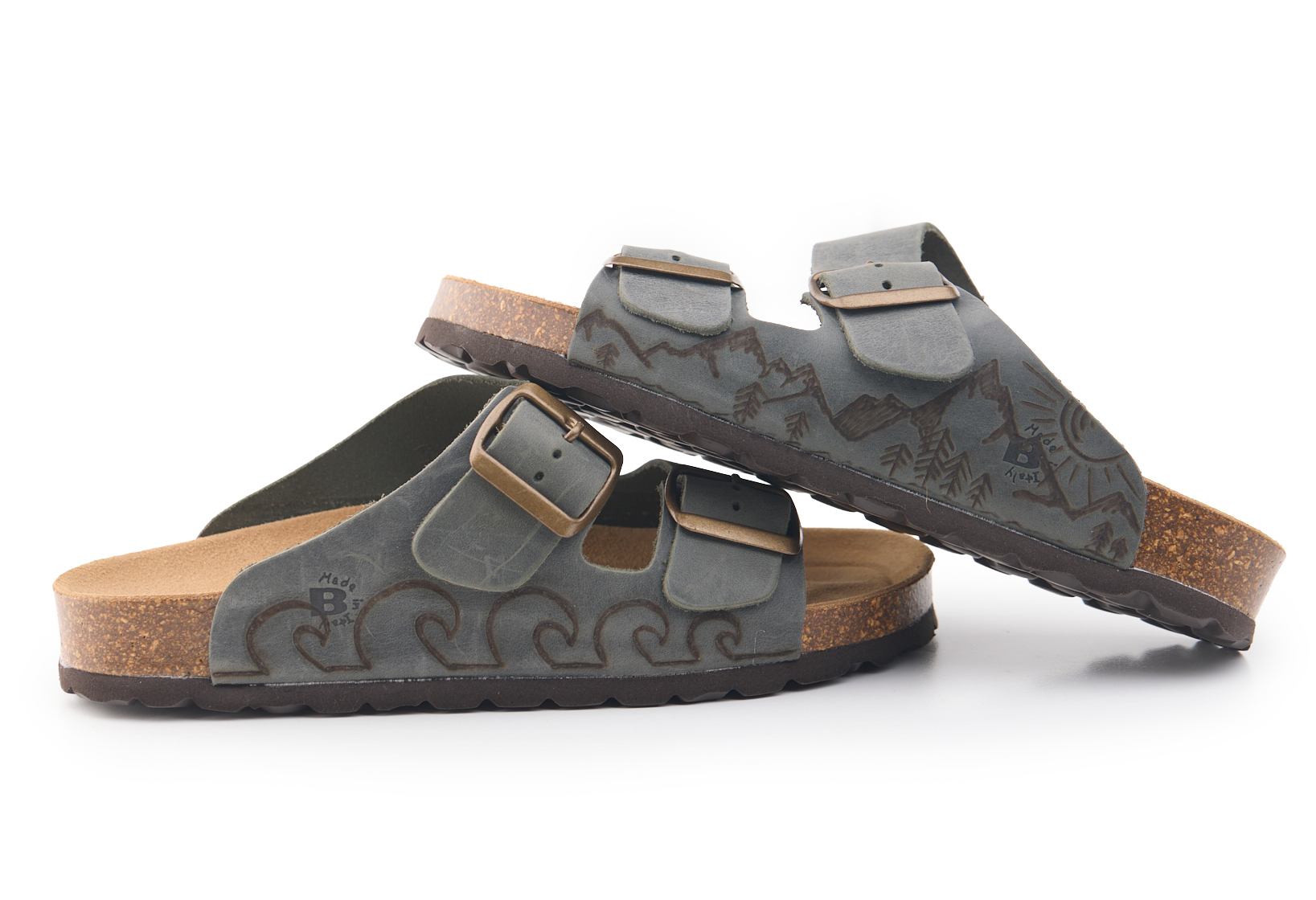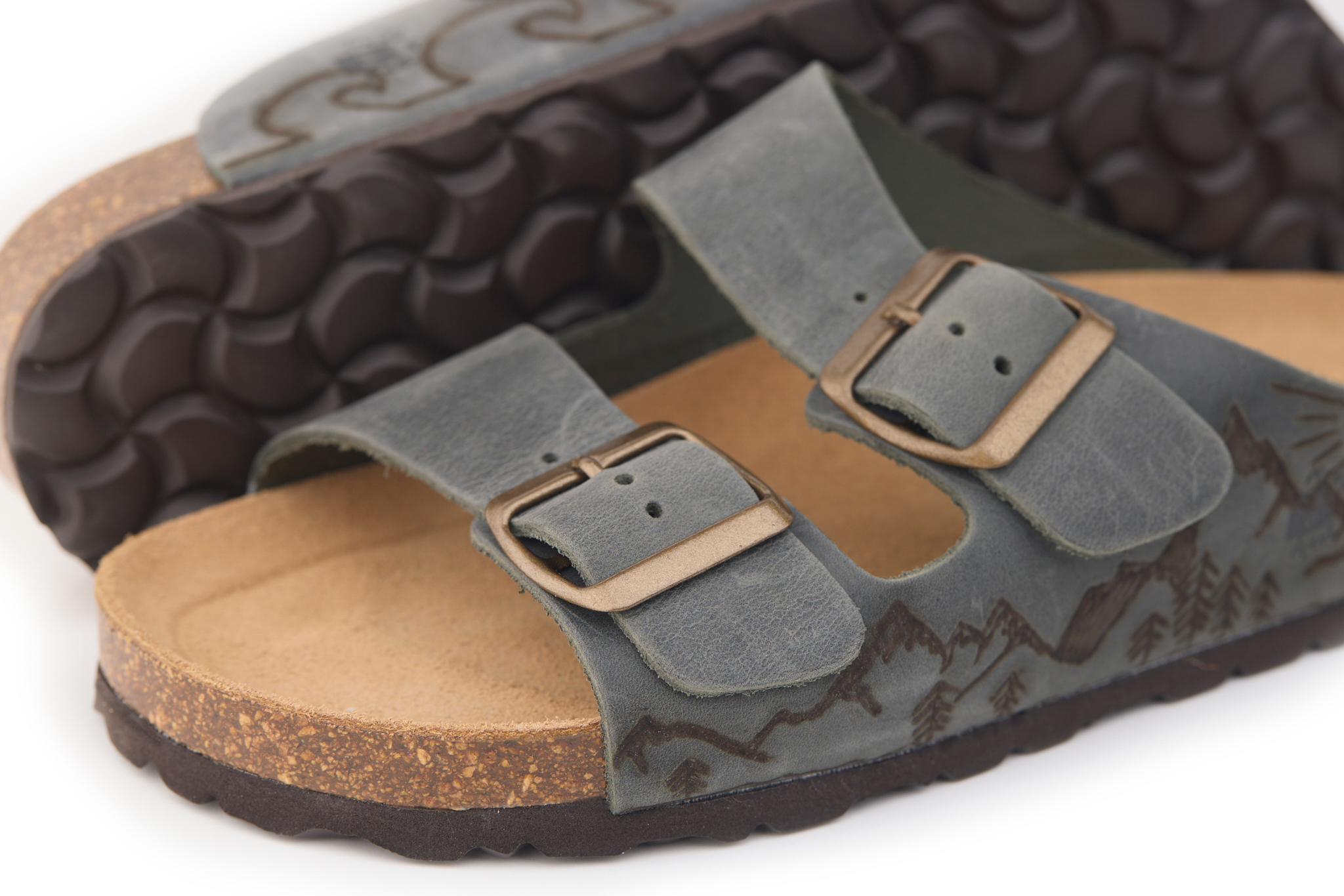 Anatomically shaped rubber-cork footbed, closed-cell EVA sole resistant to corrosion, seawater, oils and grease, non-polluting, resilient and resistant to traction, good shock absorption.