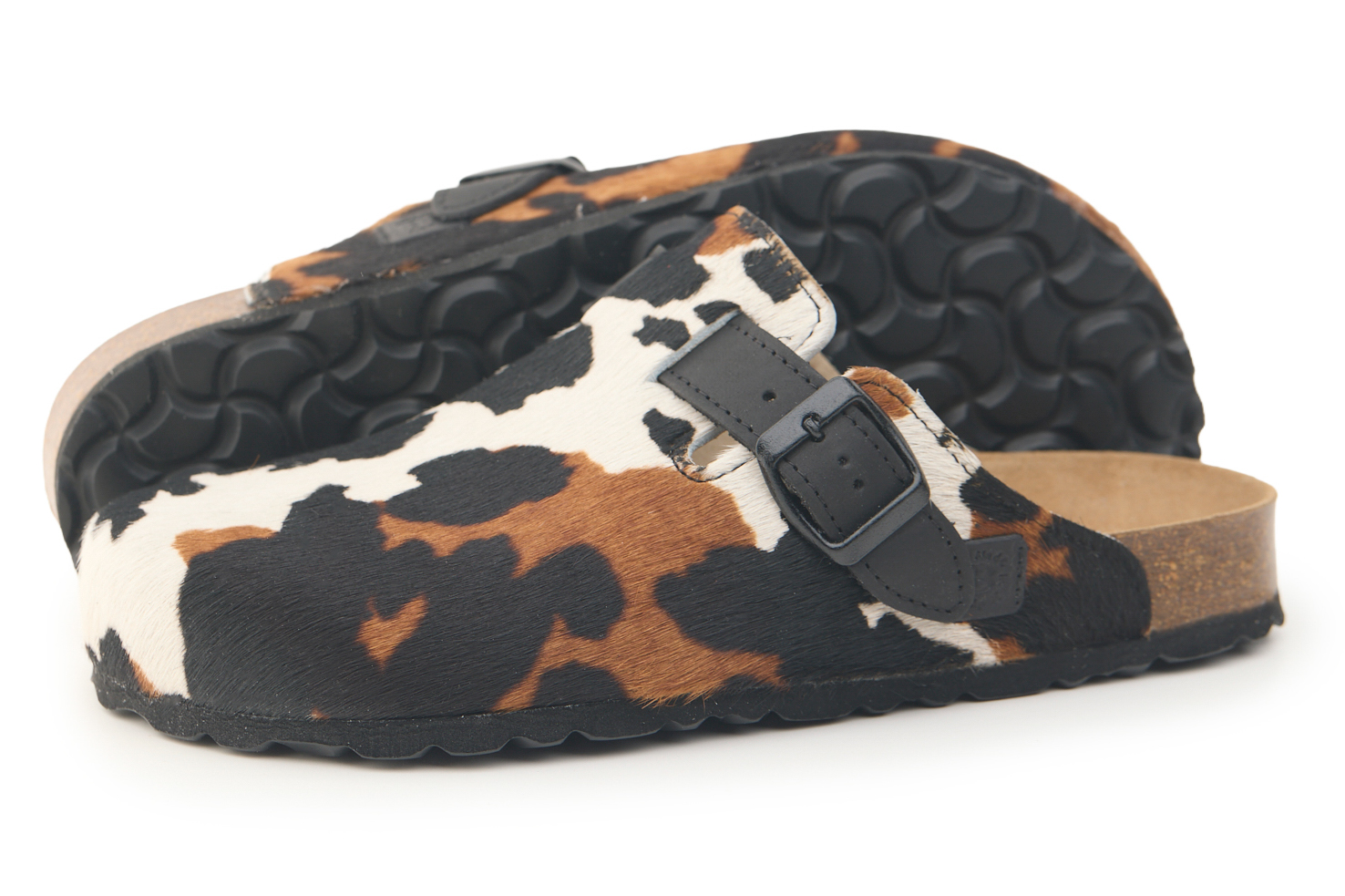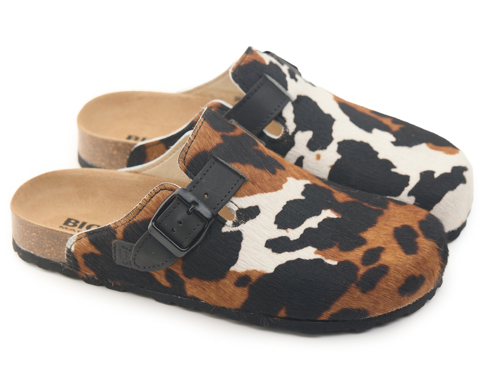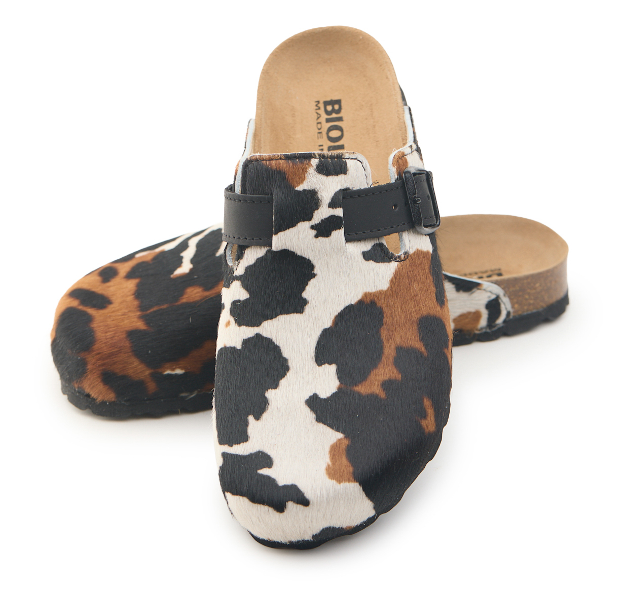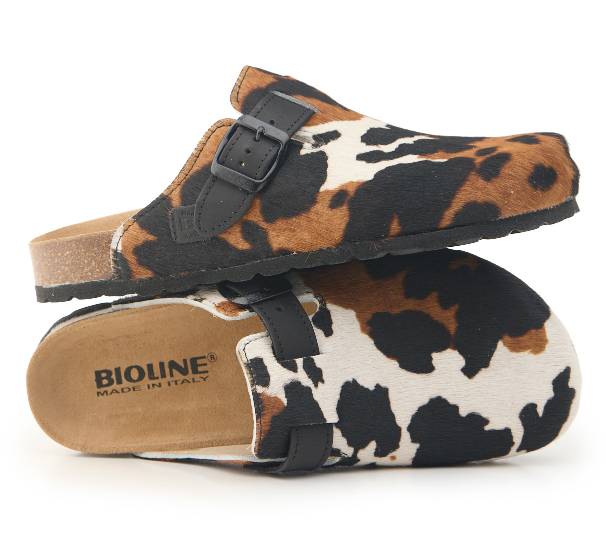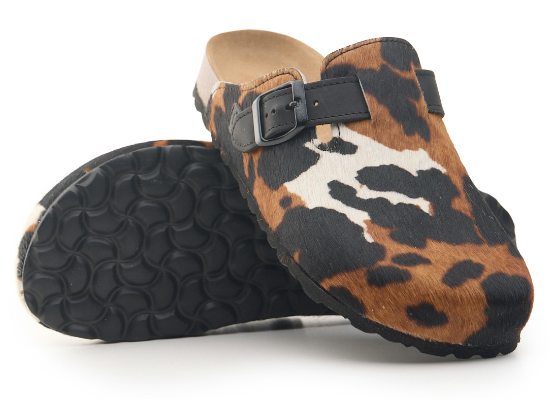 Sabot con tomaia in vera pelle cavallino mucca con cuciture. Regolabile, con cinturino dotato di fibbia in metallo.
