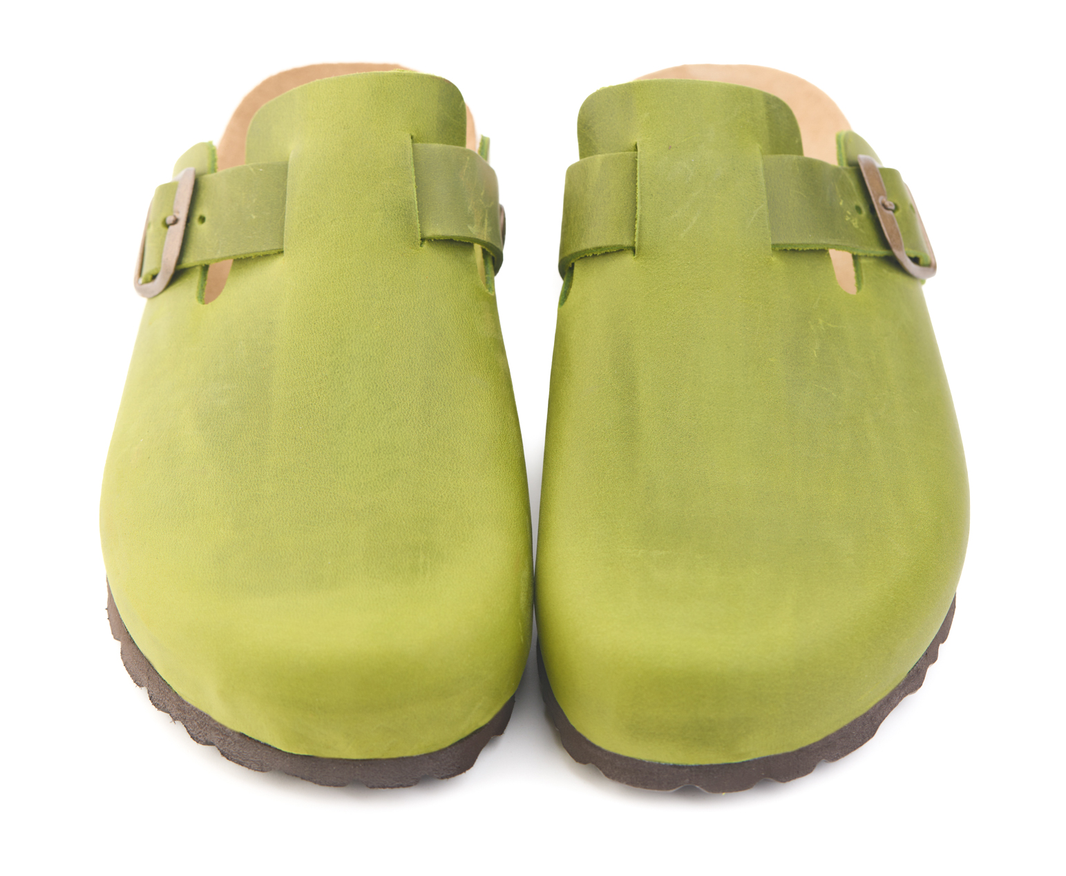 Sabot con tomaia in pelle nabuk ingrassato senza cuciture. Regolabile, con cinturino dotato di fibbia in metallo.
