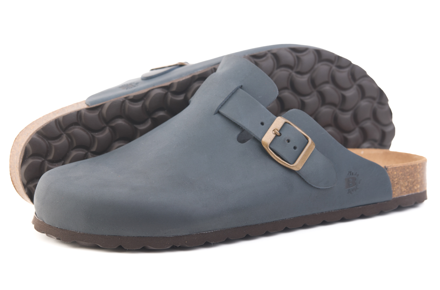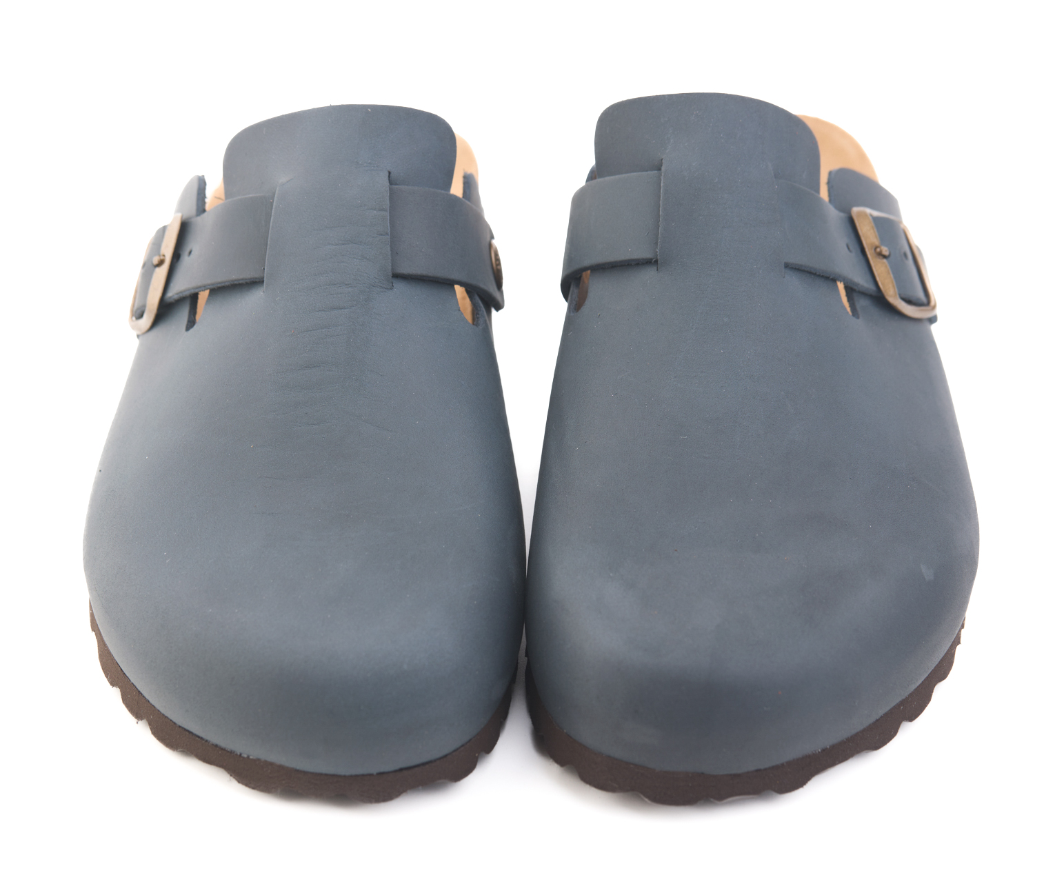 Sabot con tomaia in pelle nabuk ingrassato lavorato senza cuciture. Regolabile, con cinturino dotato di fibbia in metallo.