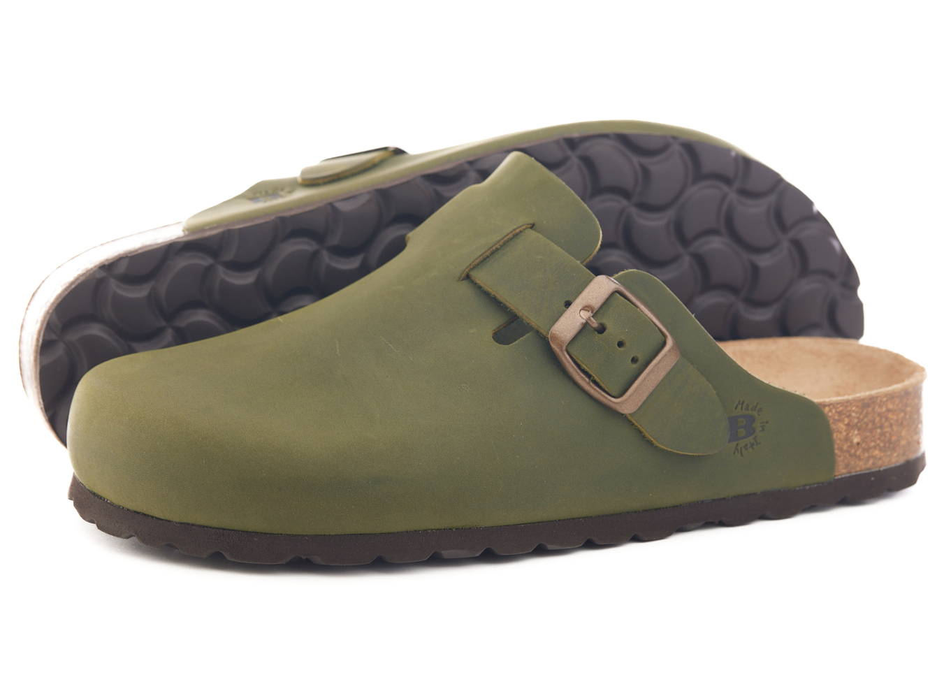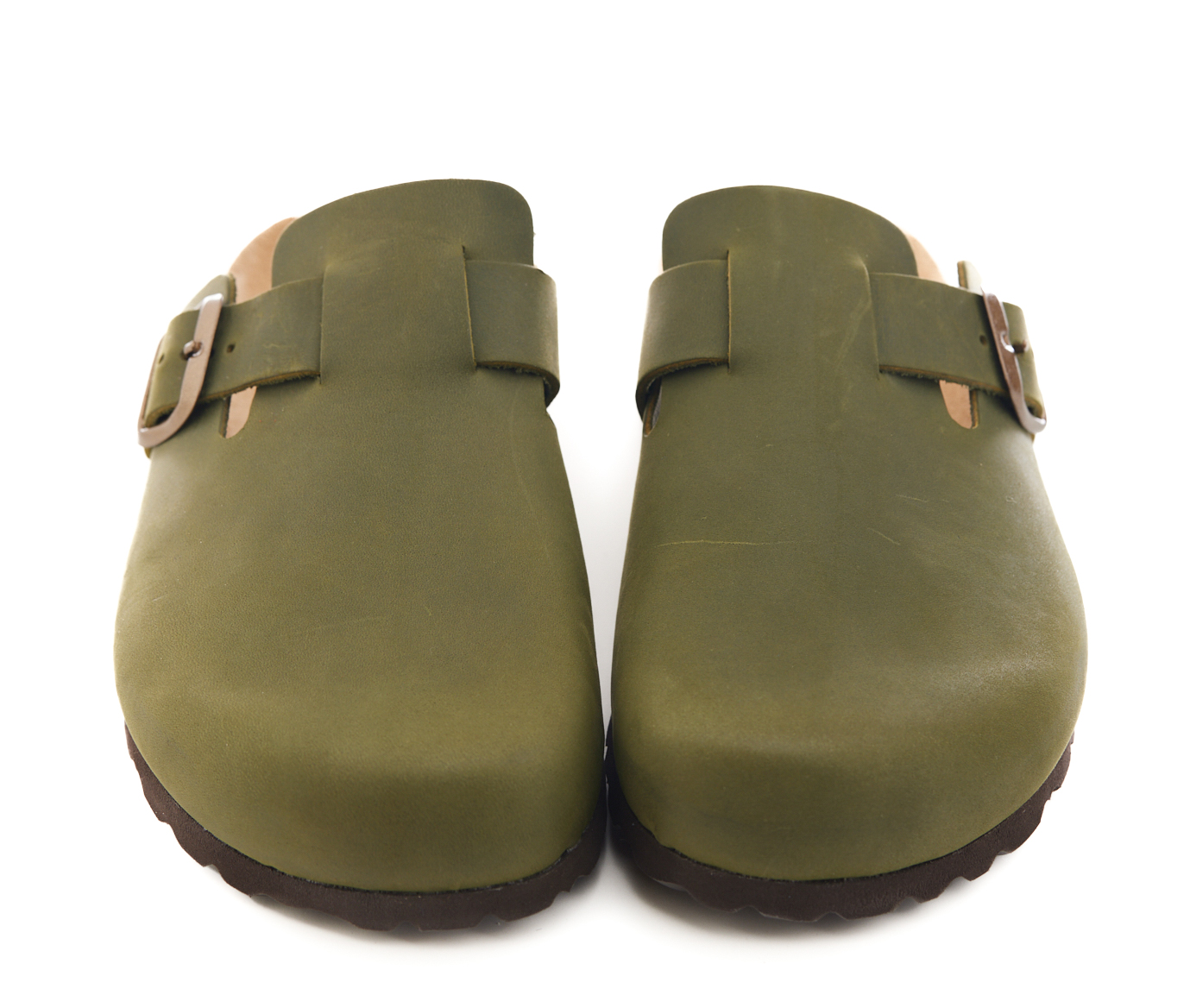 Sabot con tomaia in pelle nabuk ingrassato senza cuciture. Regolabile, con cinturino dotato di fibbia in metallo.