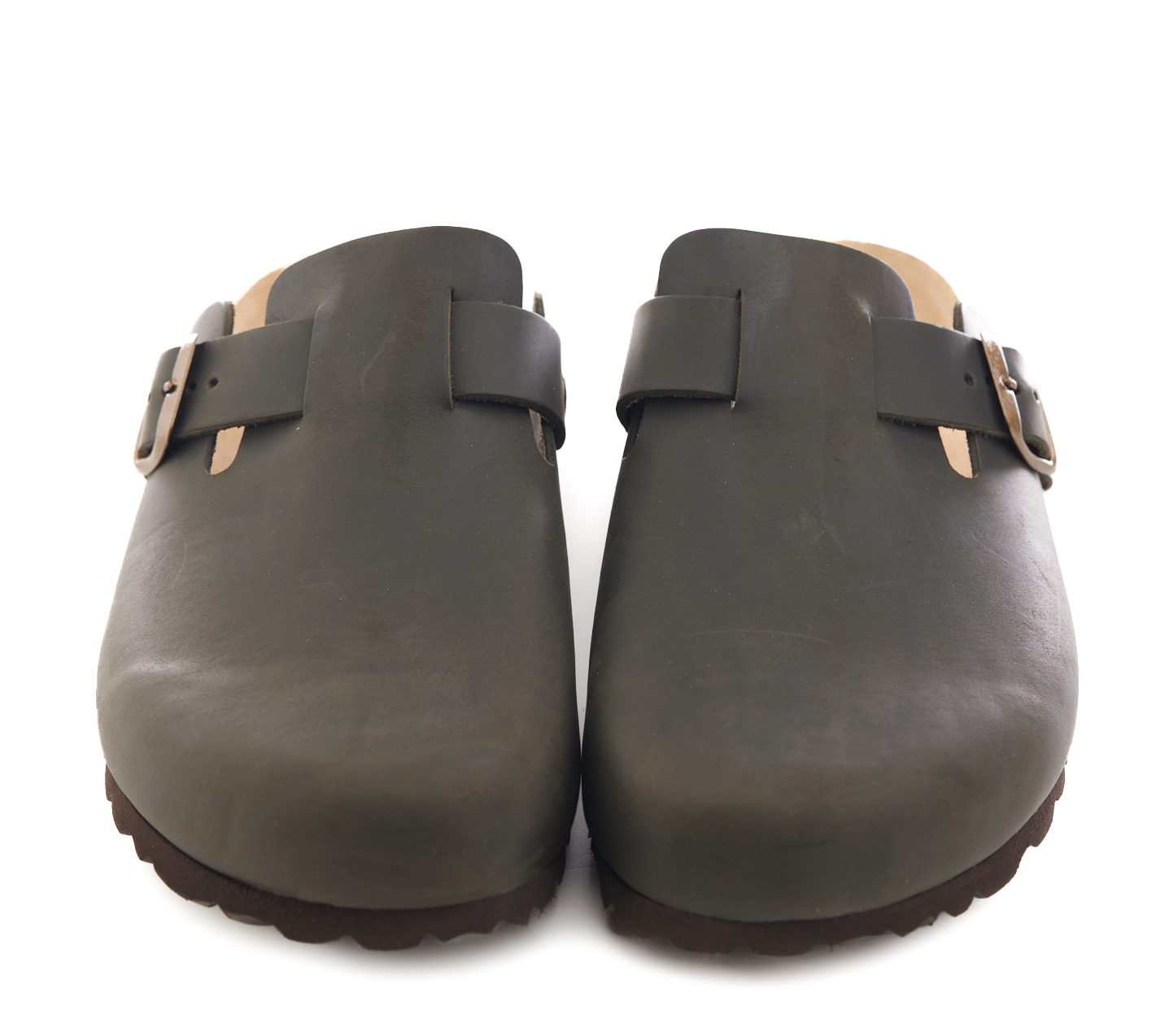 Sabot con tomaia in pelle nabuk ingrassato senza cuciture. Regolabile, con cinturino dotato di fibbia in metallo.
