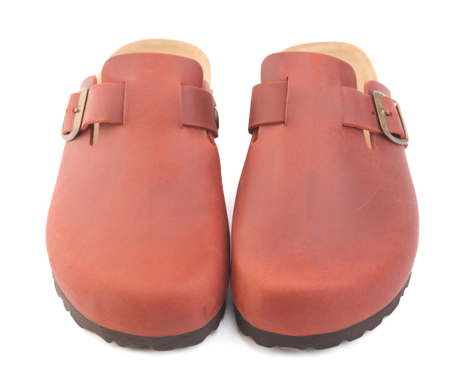 Sabot con tomaia in pelle nabuk ingrassato lavorato senza cuciture. Regolabile, con cinturino dotato di fibbia in metallo.