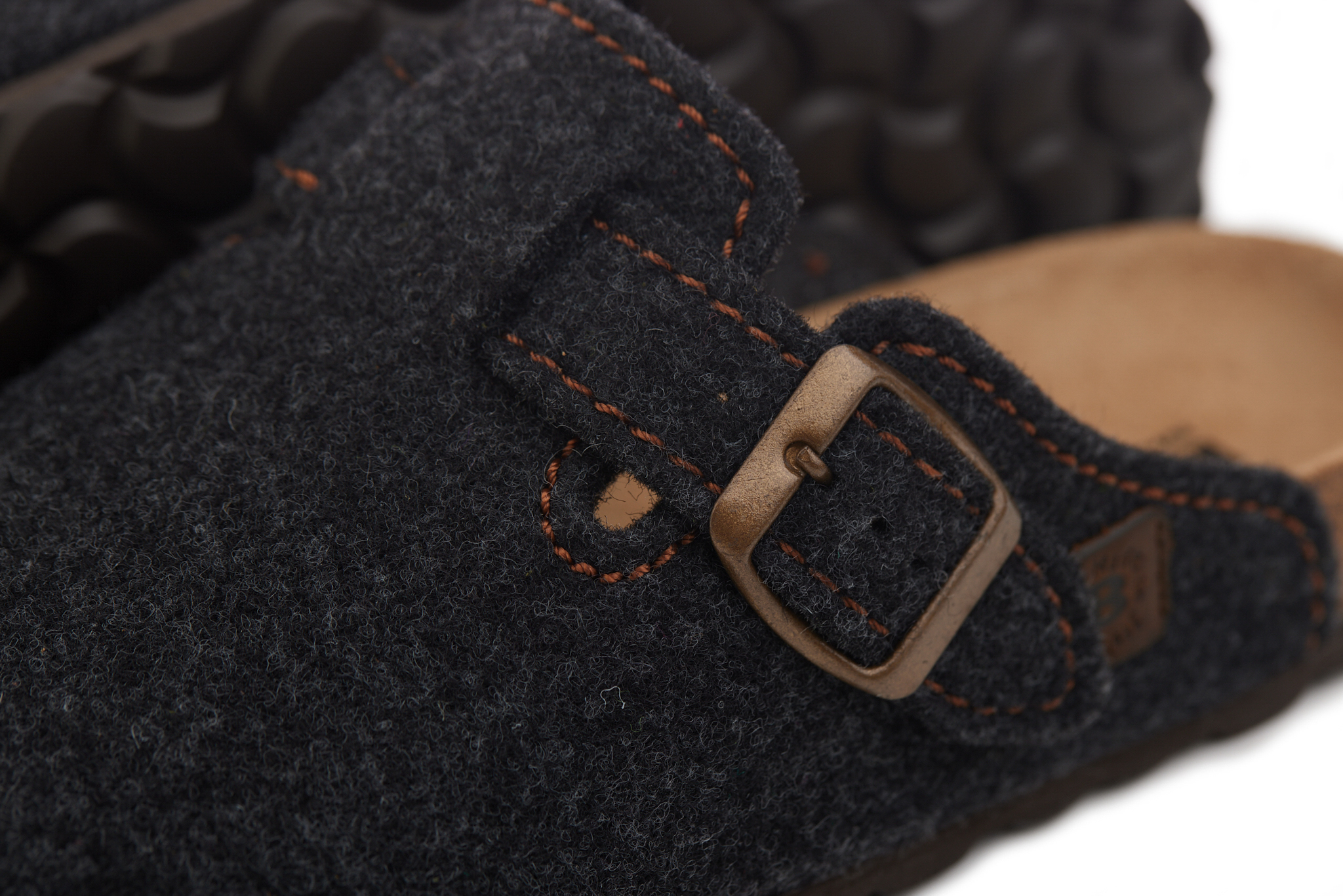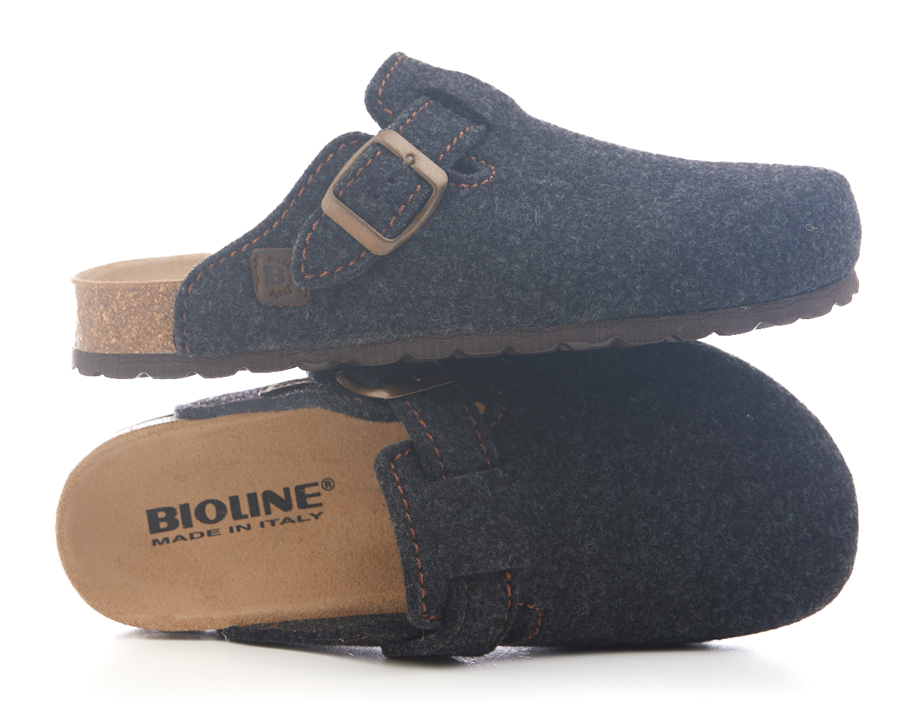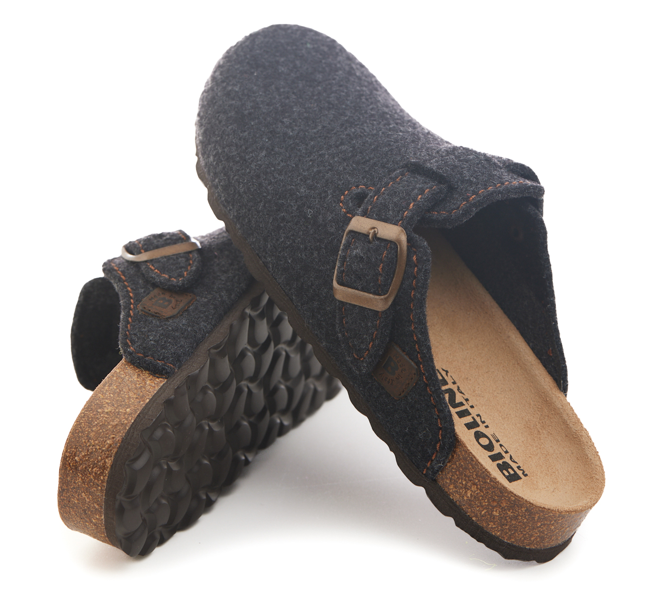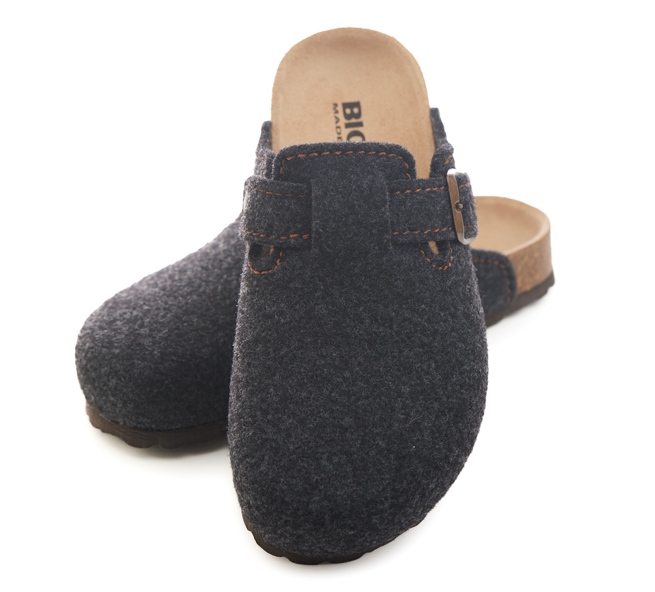 Sabot con tomaia in lana merinos. Regolabile, con cinturino dotato di fibbia in metallo.
