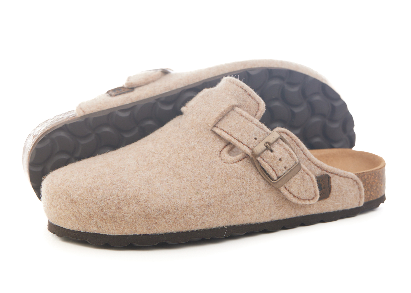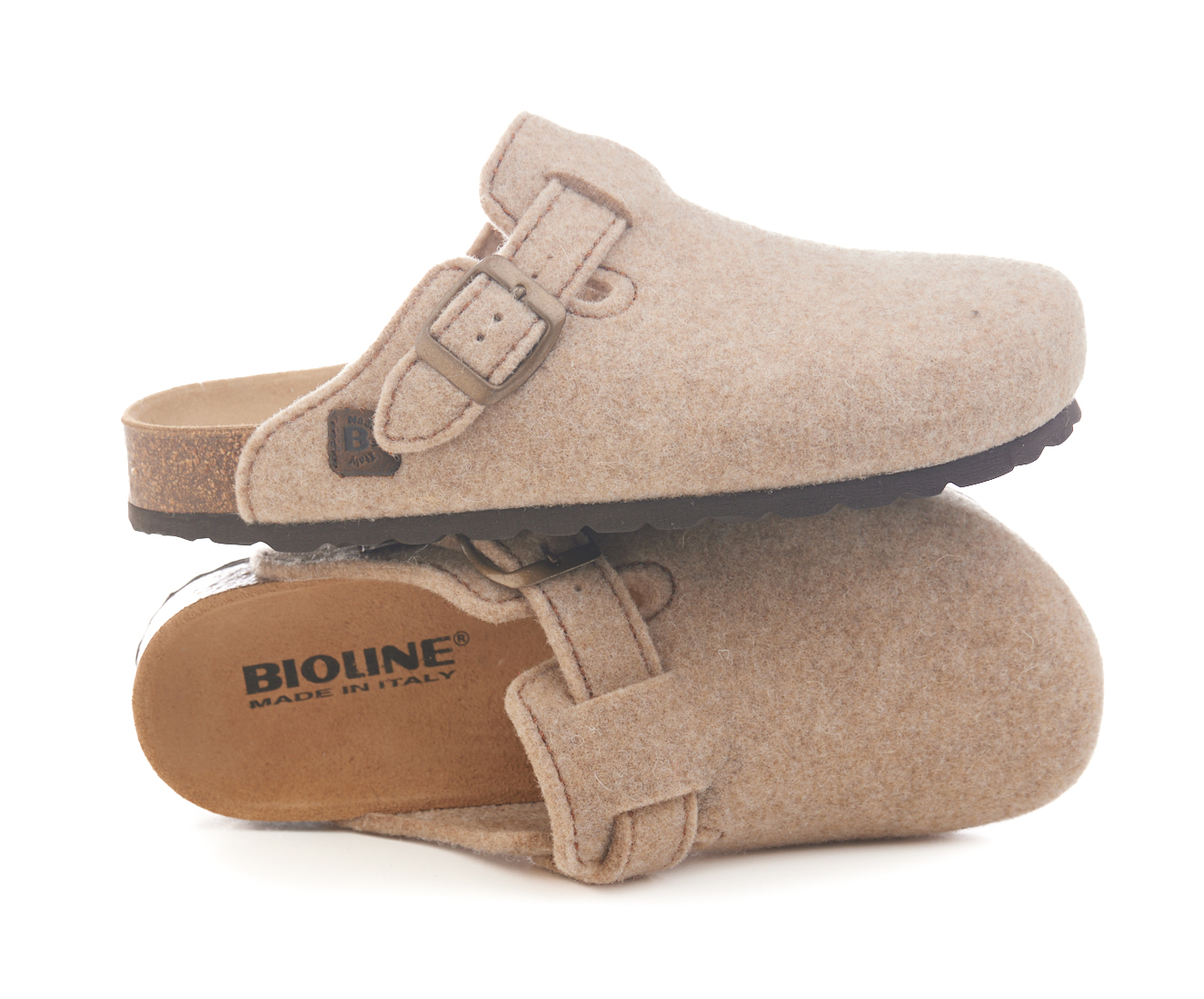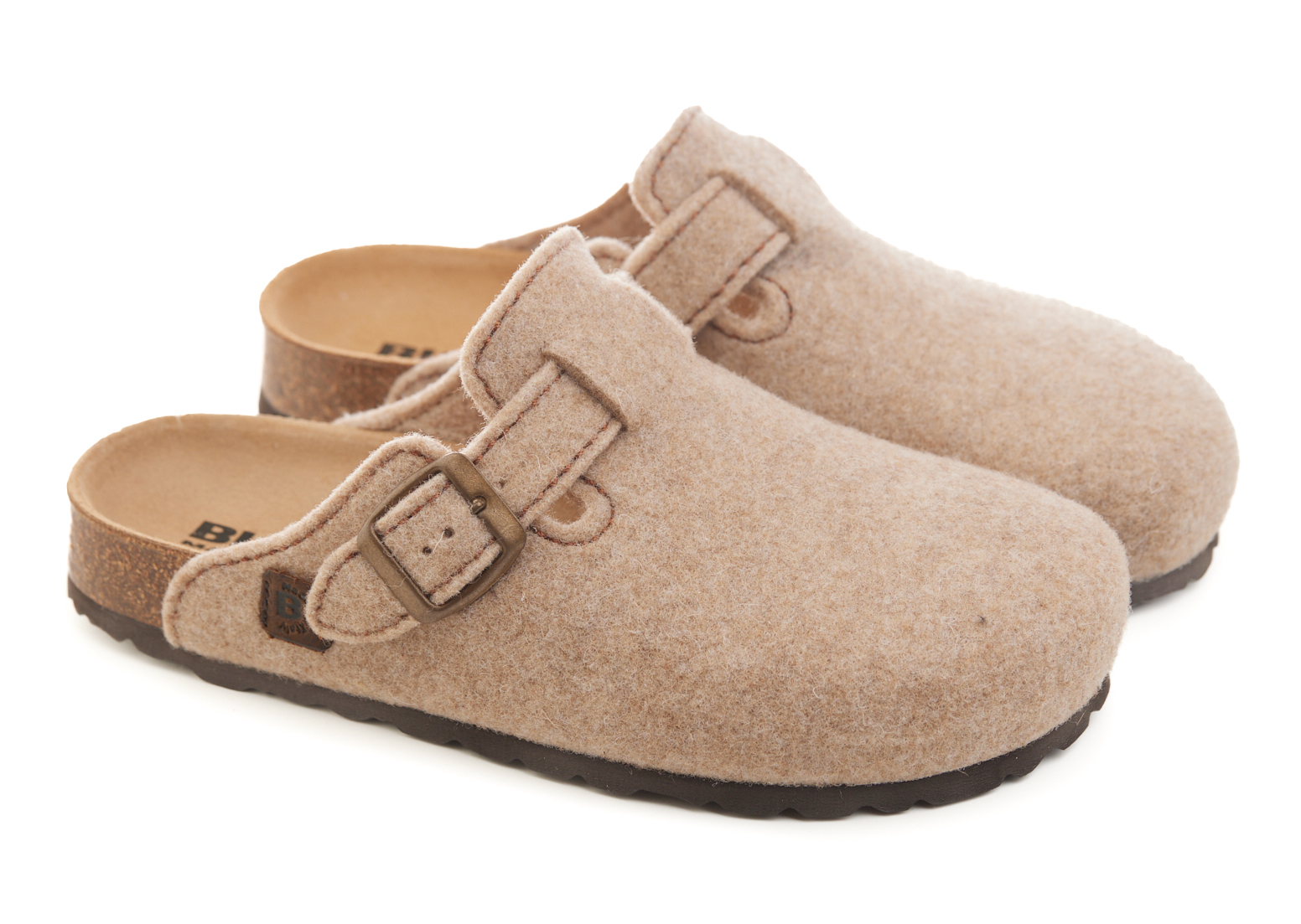 Sabot con tomaia in lana merinos. Regolabile, con cinturino dotato di fibbia in metallo.