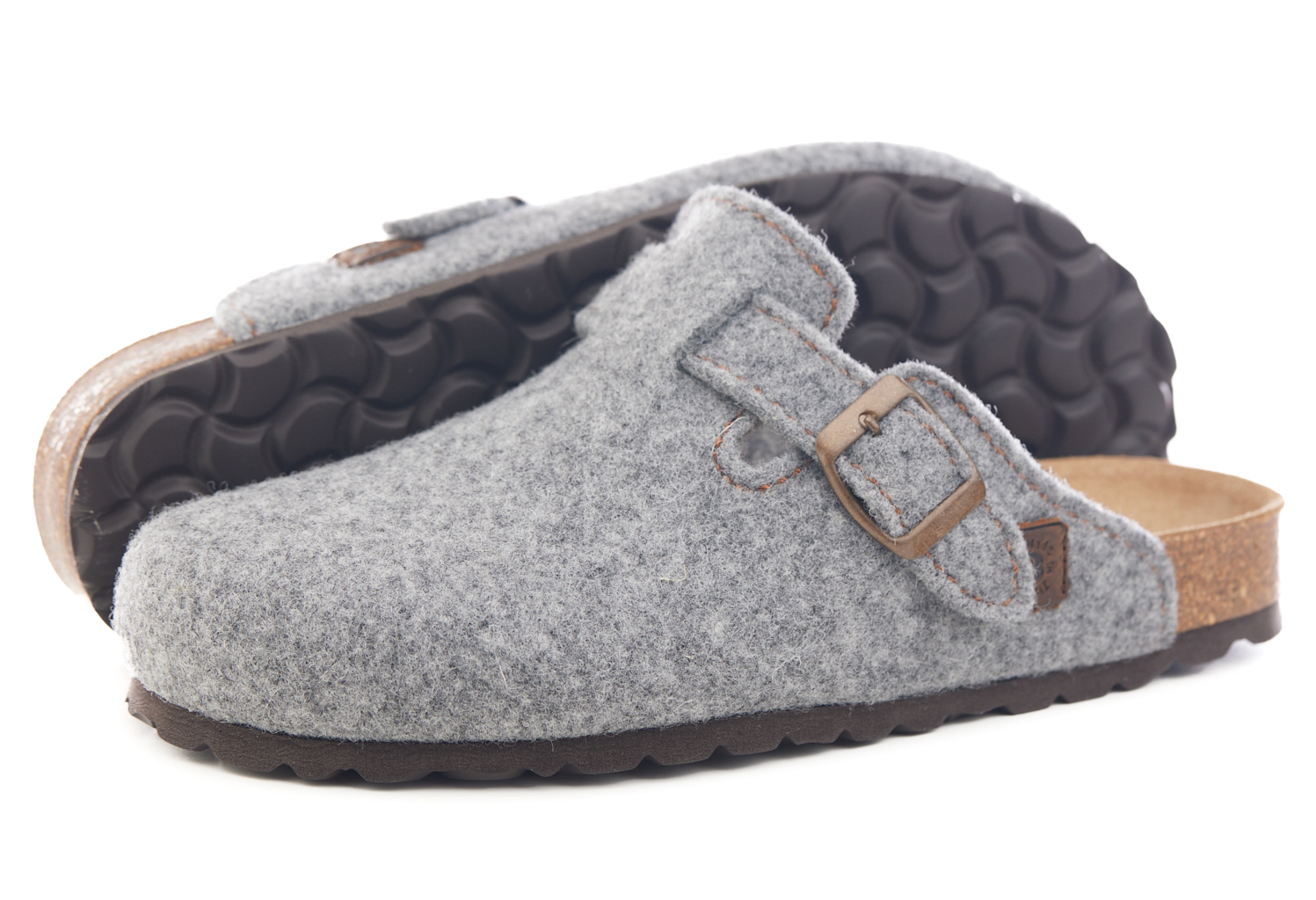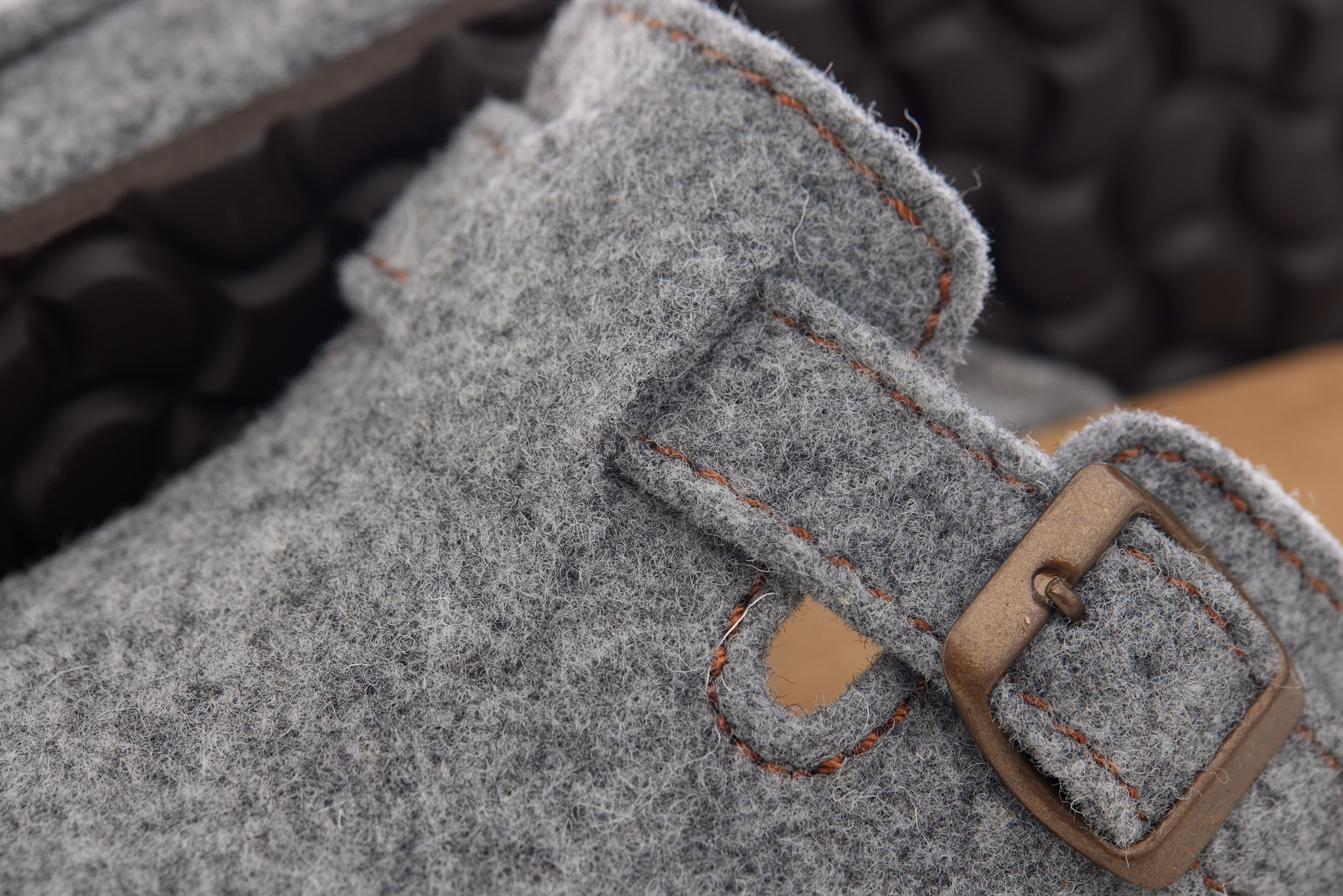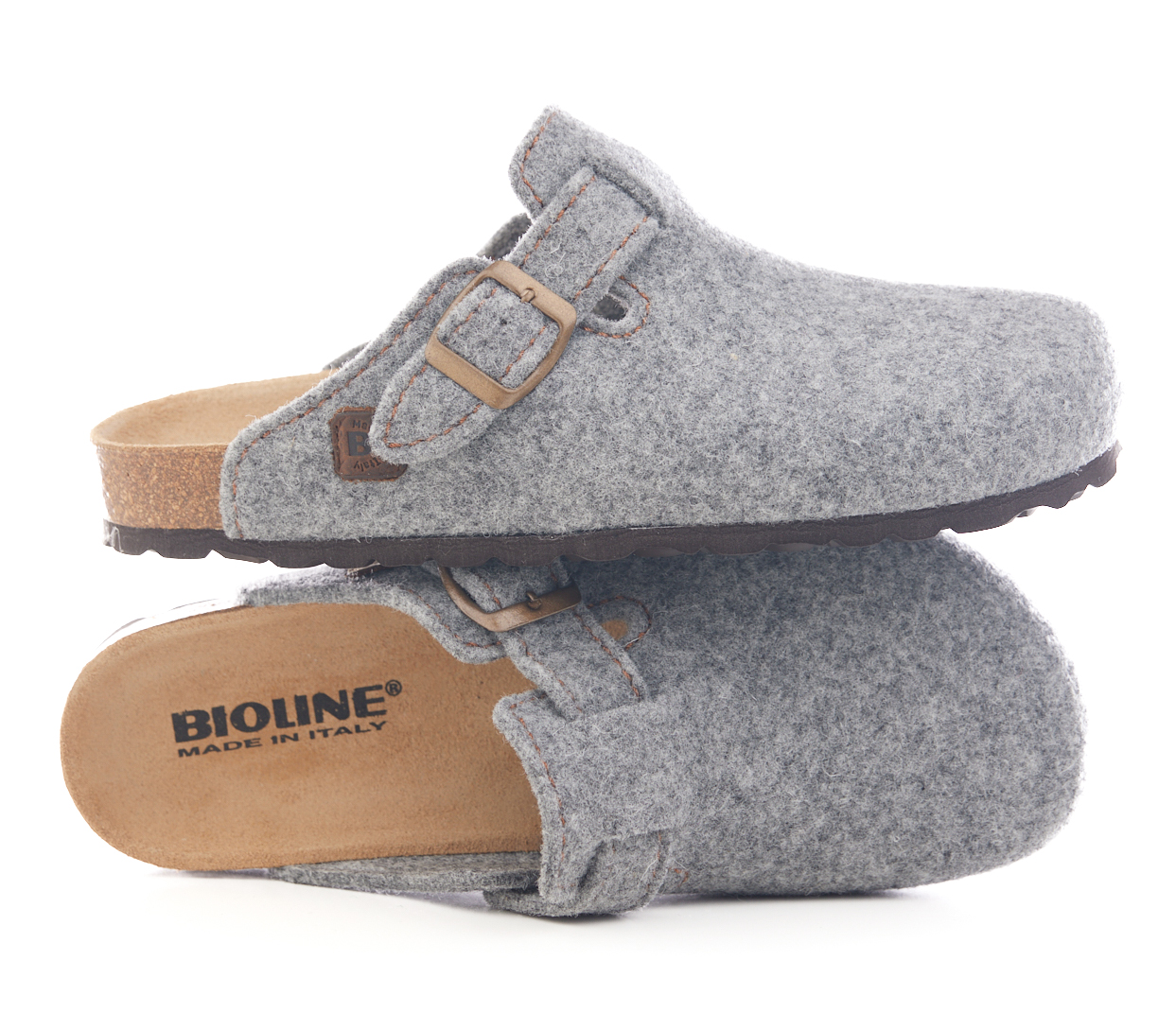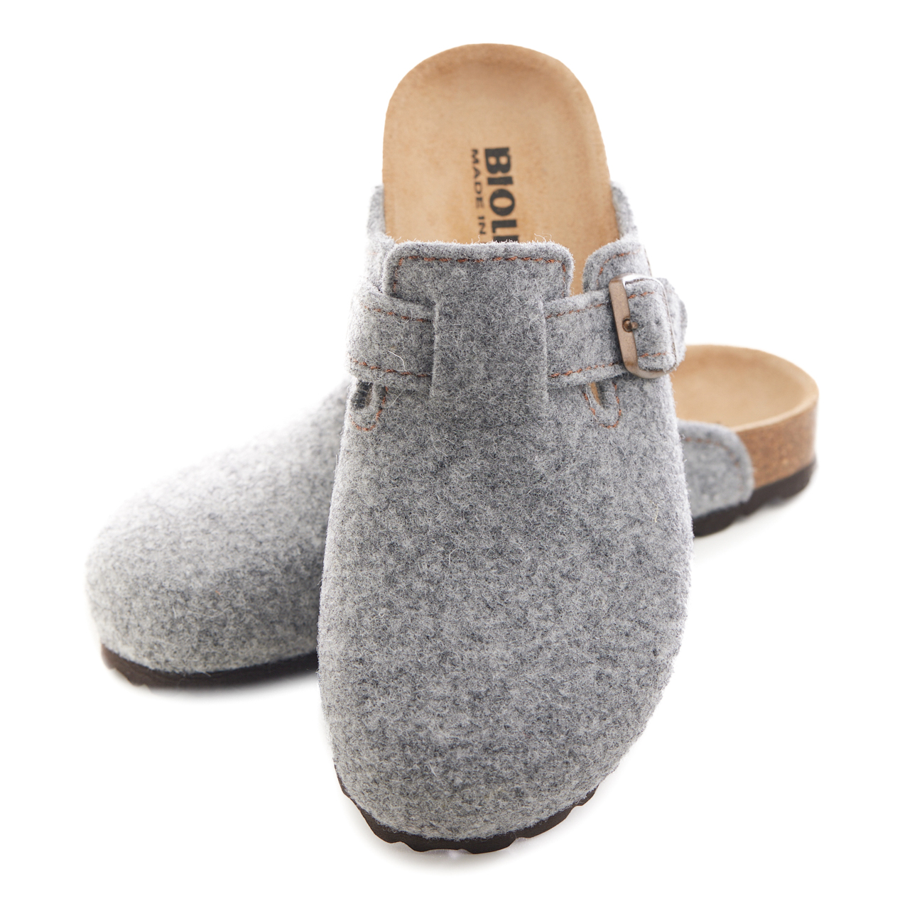 Sabot con tomaia in lana merinos. Regolabile, con cinturino dotato di fibbia in metallo.