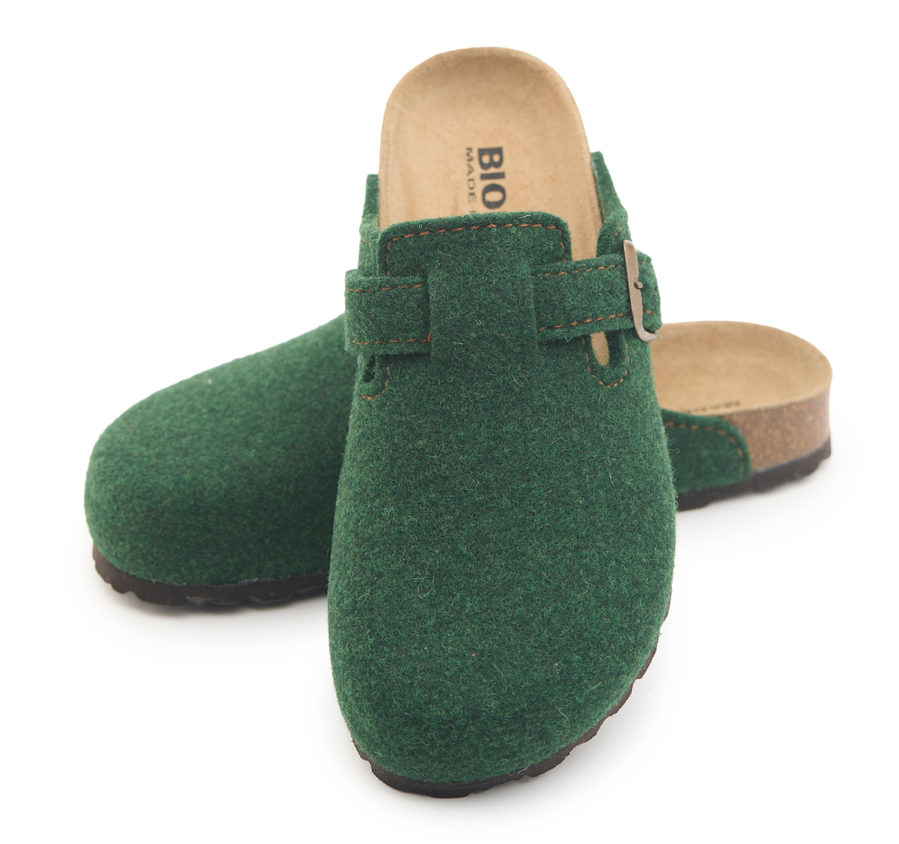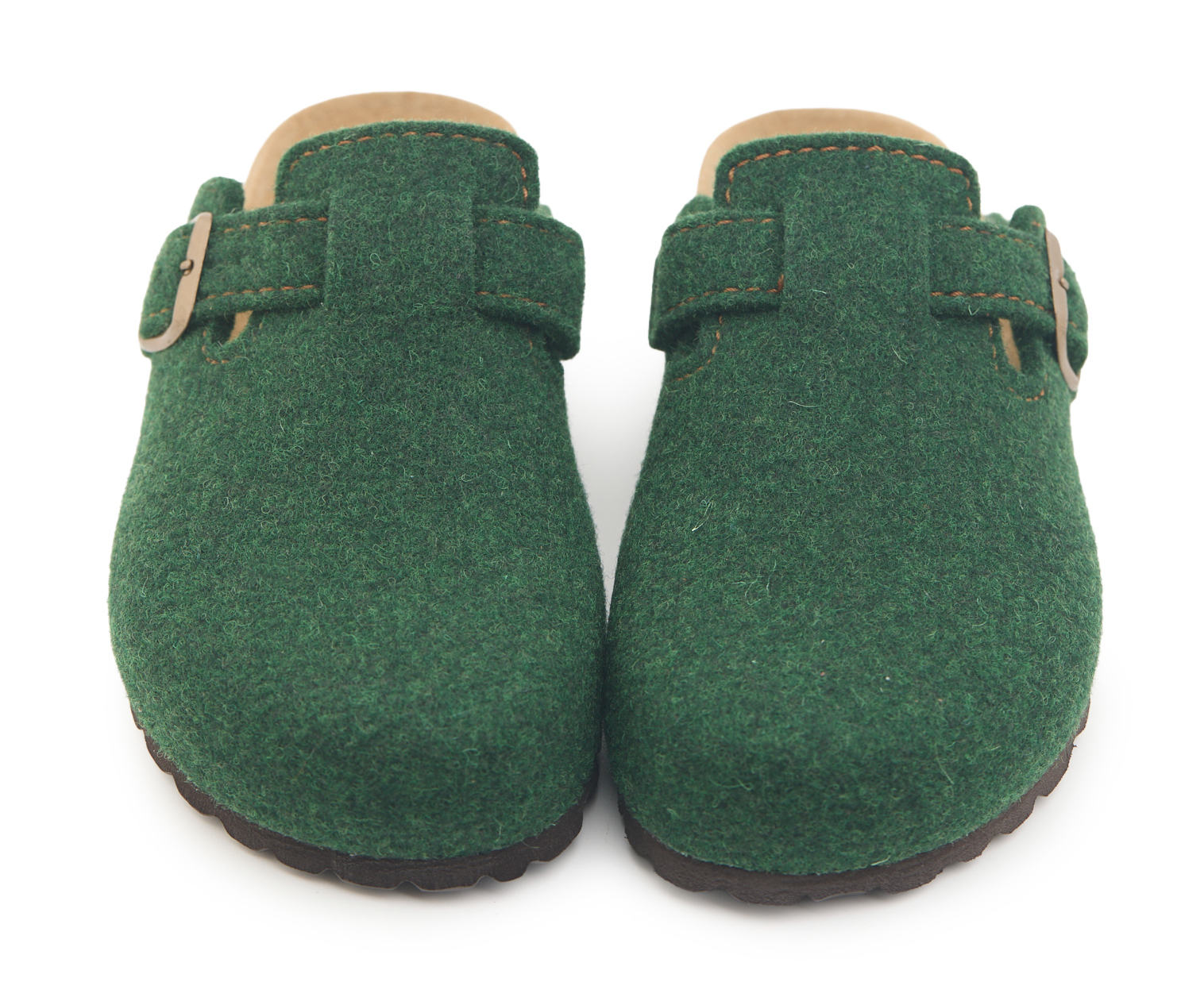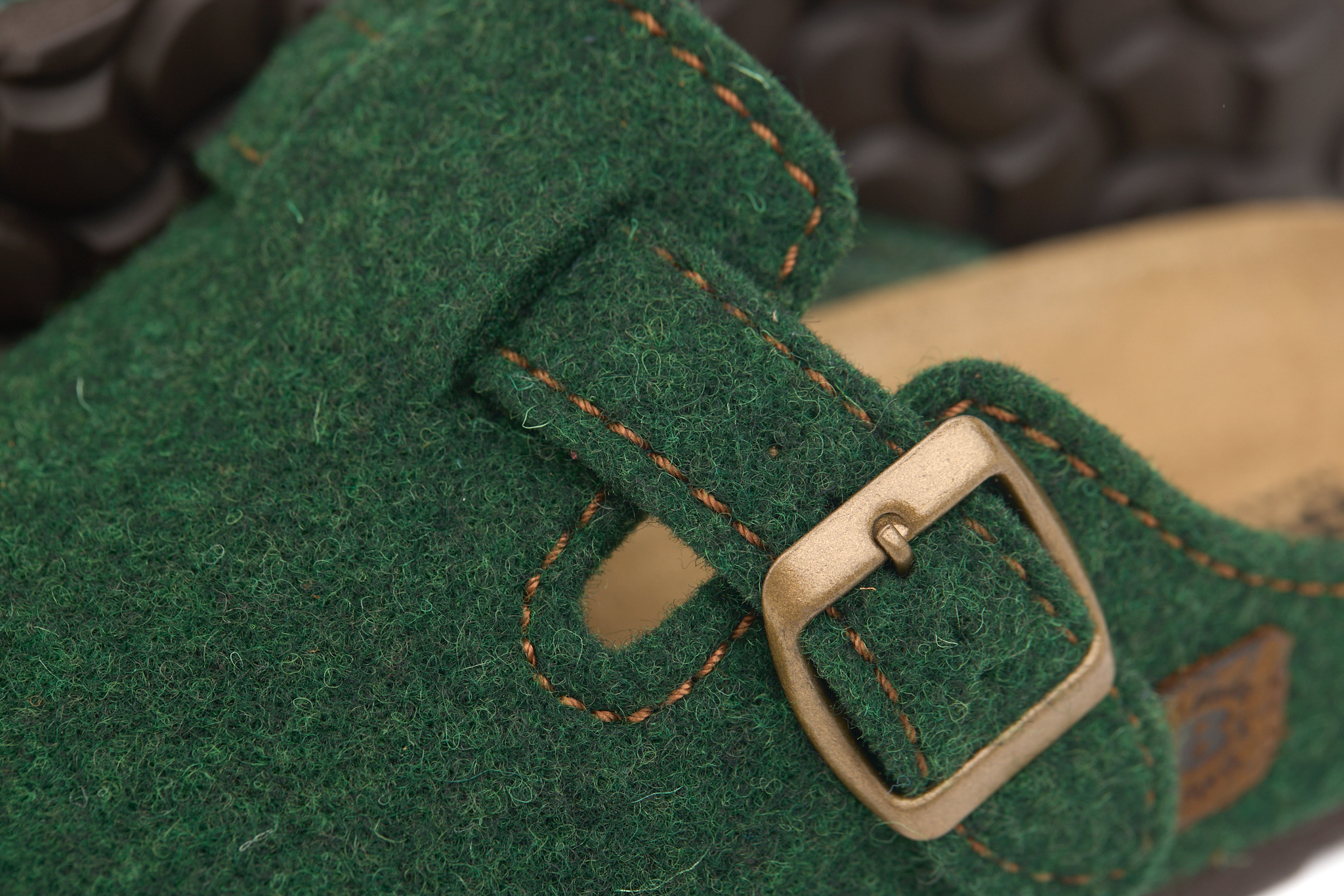 Sabot con tomaia in lana merinos. Regolabile, con cinturino dotato di fibbia in metallo.
