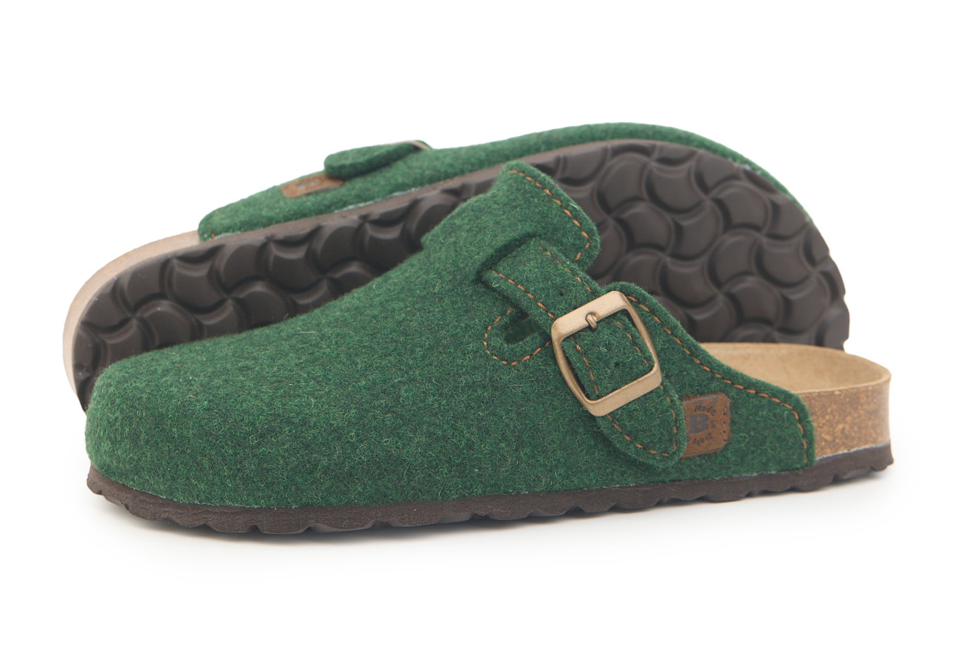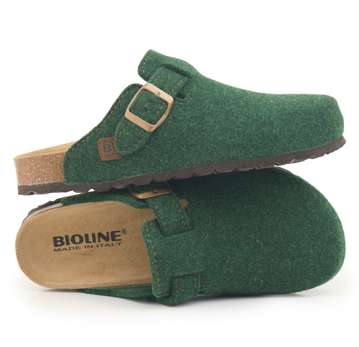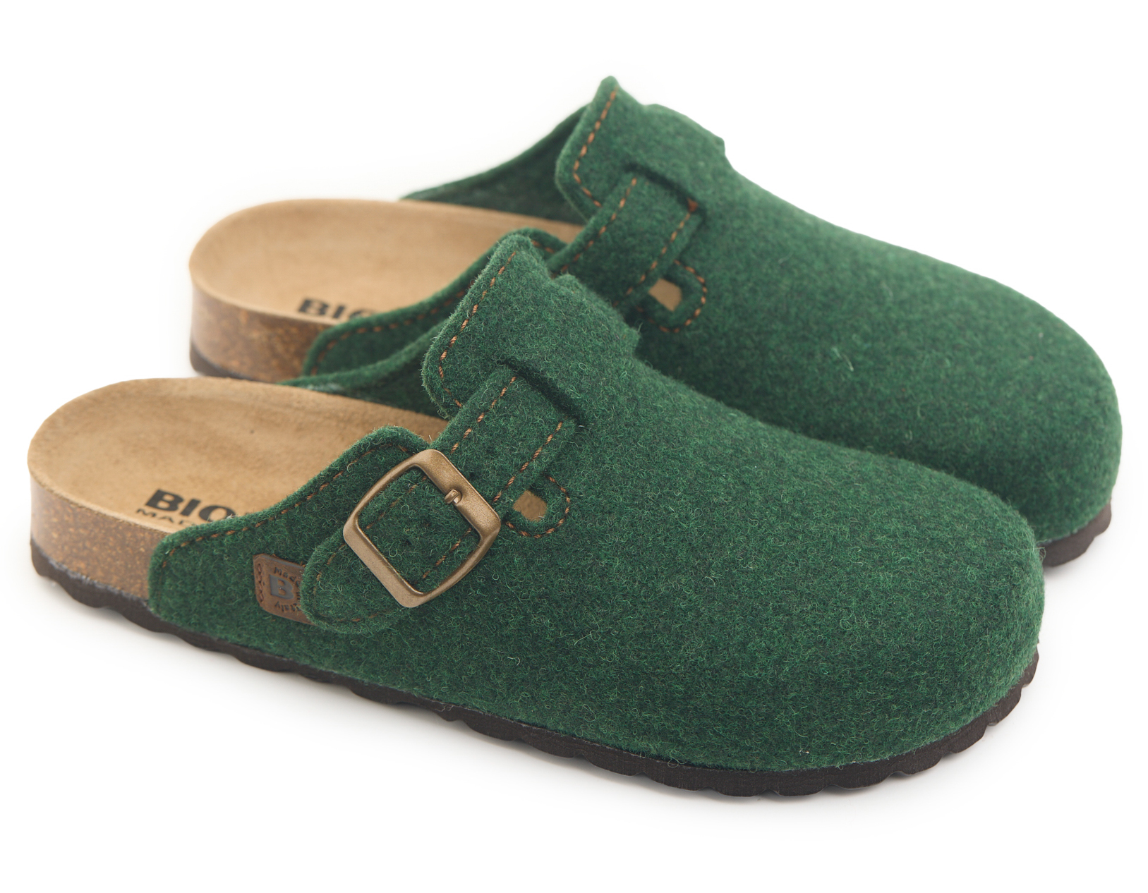 Sabot con tomaia in lana merinos. Regolabile, con cinturino dotato di fibbia in metallo.