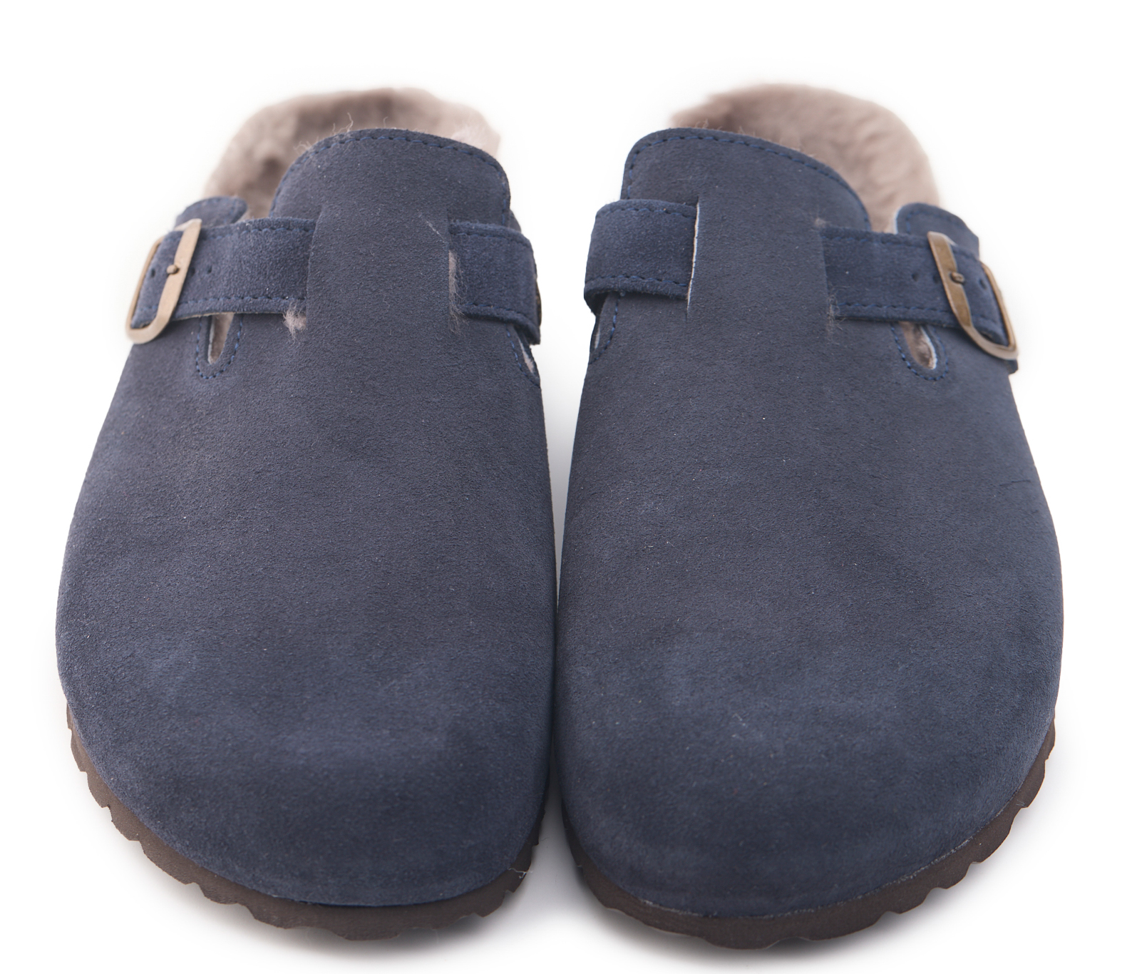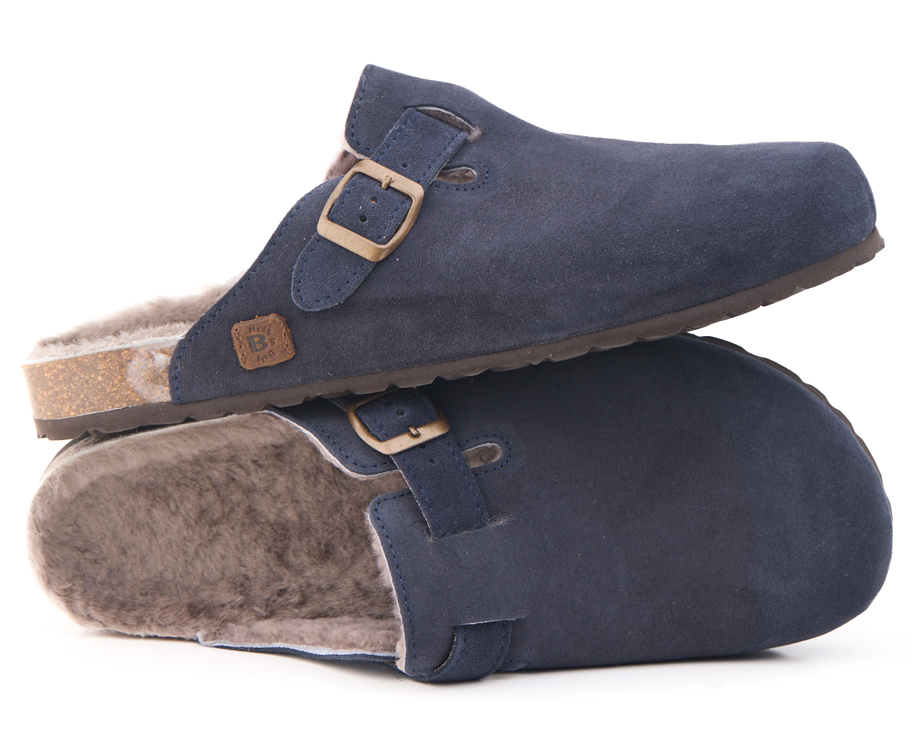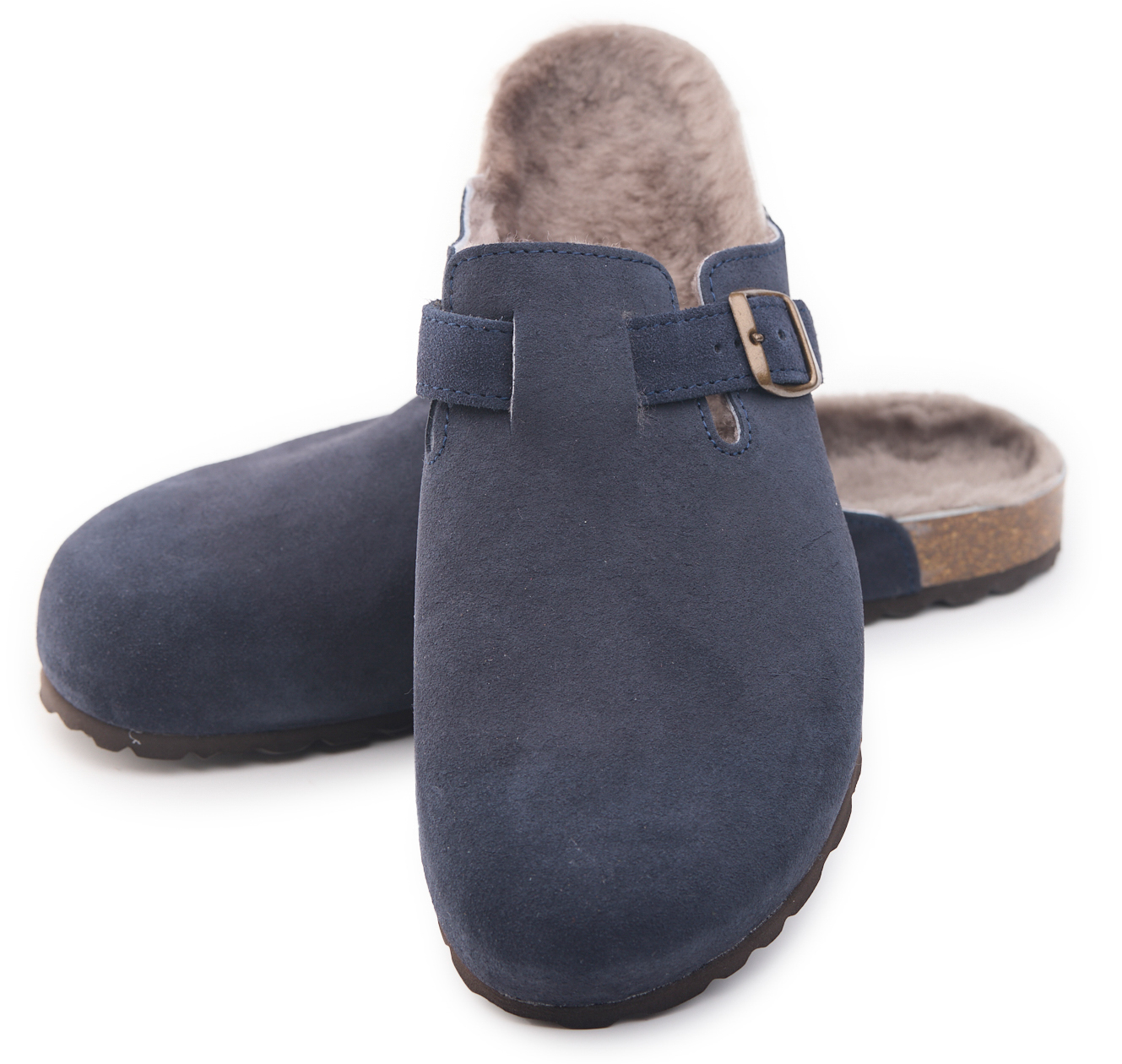 Sabot con tomaia in pelle scamosciata con fodera montone. Regolabile, con cinturino dotato di fibbia in metallo.
