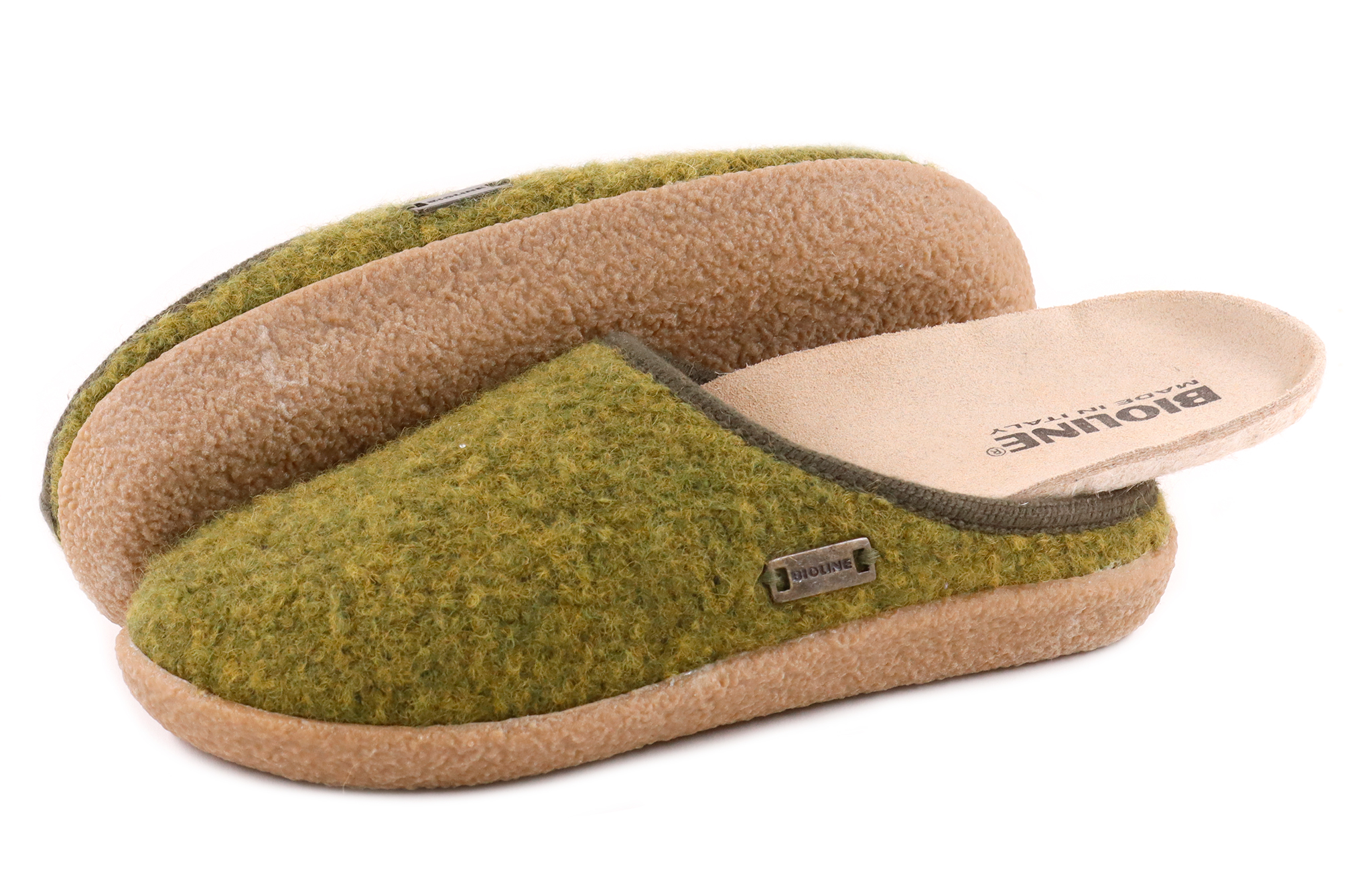 Sabot comfort in lana cotta naturale doppio strato, sottopiede estraibile ricoperto in pelle, suola termoplastico con ottimo grip.