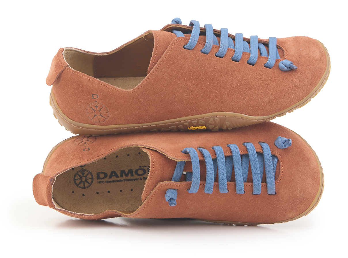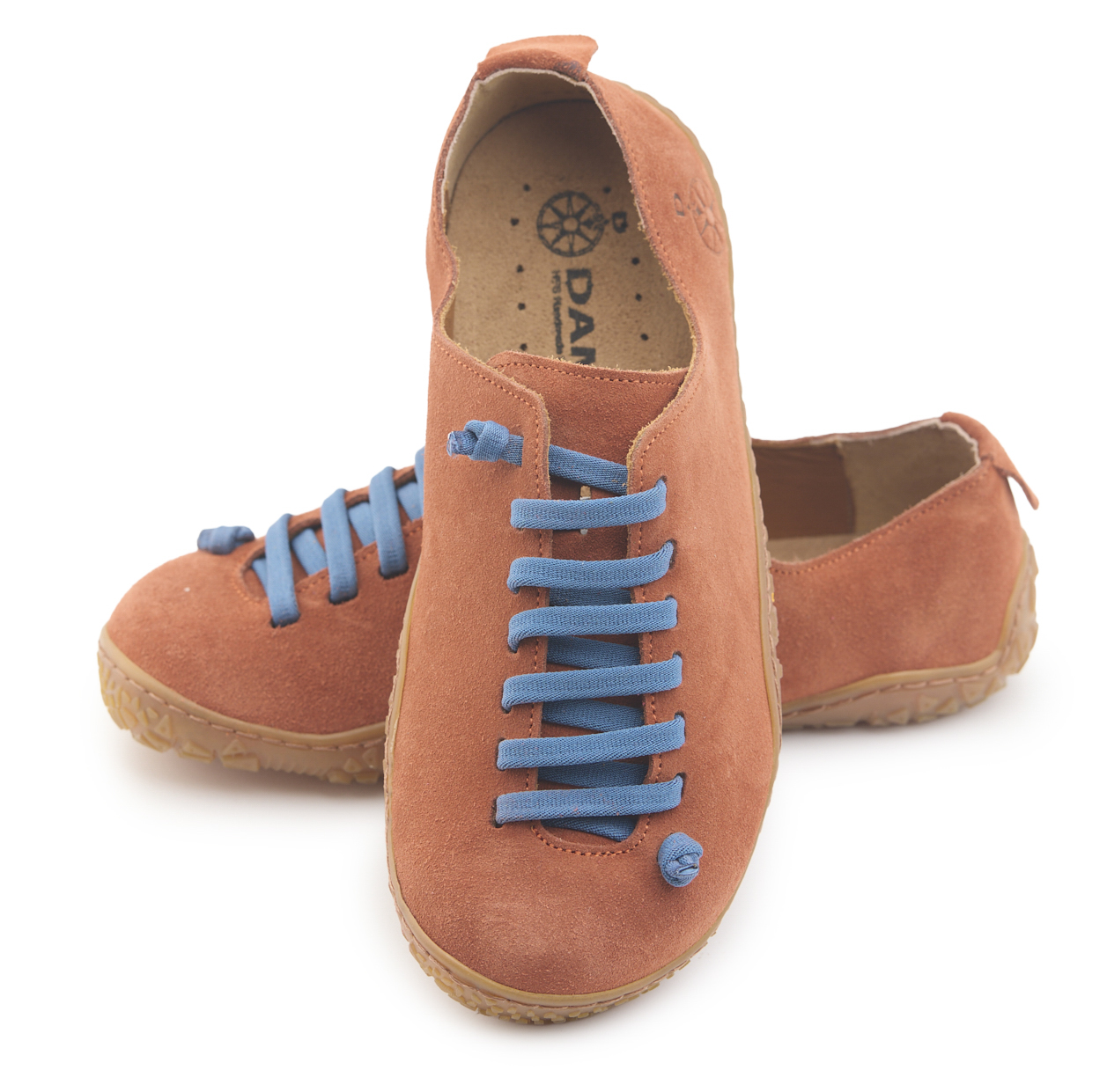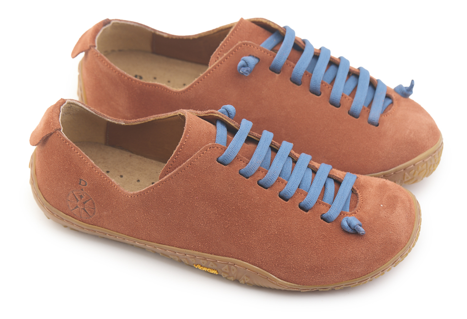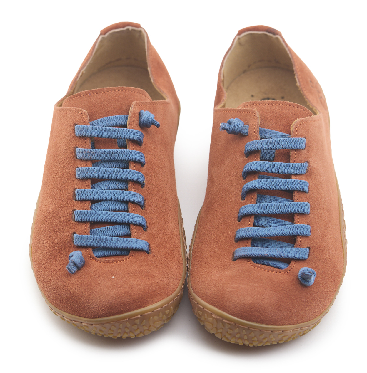 Scarpetta barefoot realizzato in pelle scamosciata, fodera in pelle vitello e lacci elastici annodati.