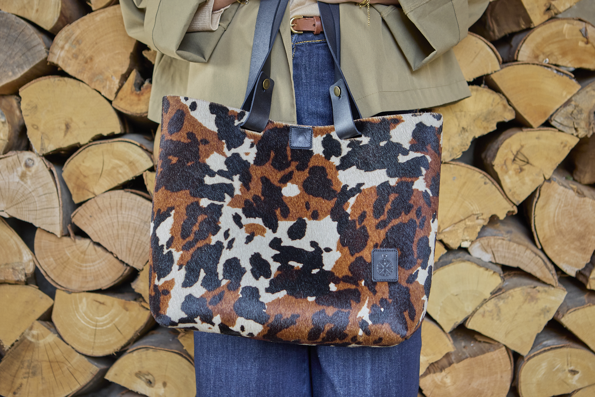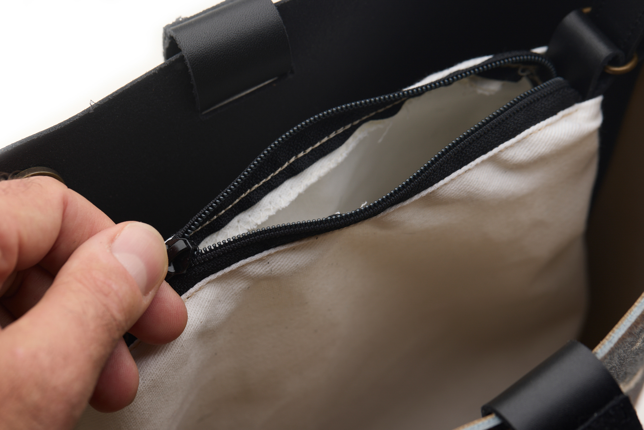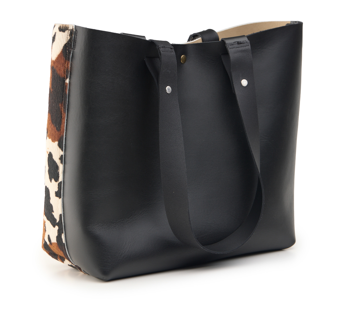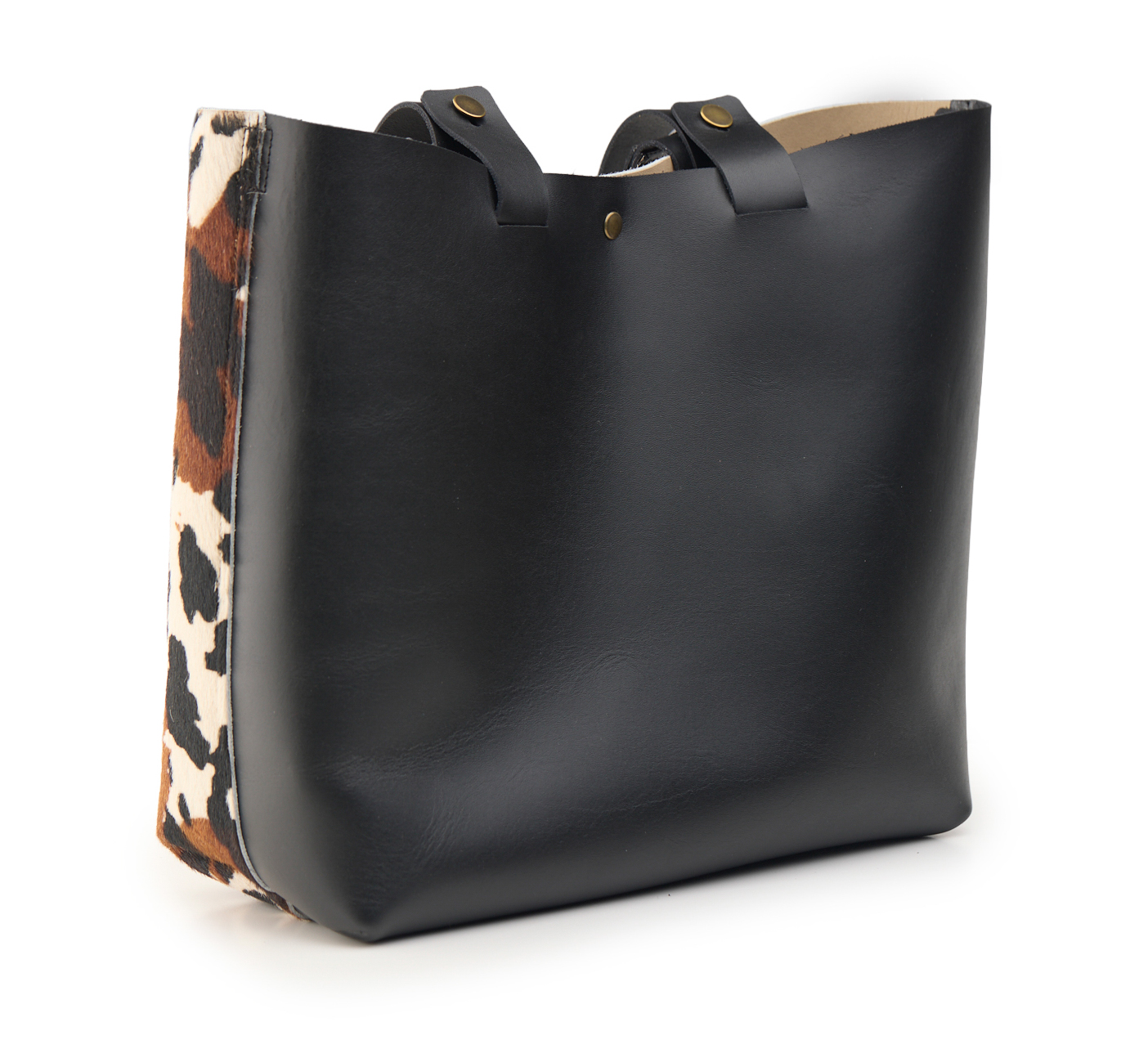Borsa componibile in pelle cavallino Double Mucca e pelle nera composta da scocca, manico e sacca interna, per contenere e proteggere tutti gli oggetti che custodirà al suo interno.