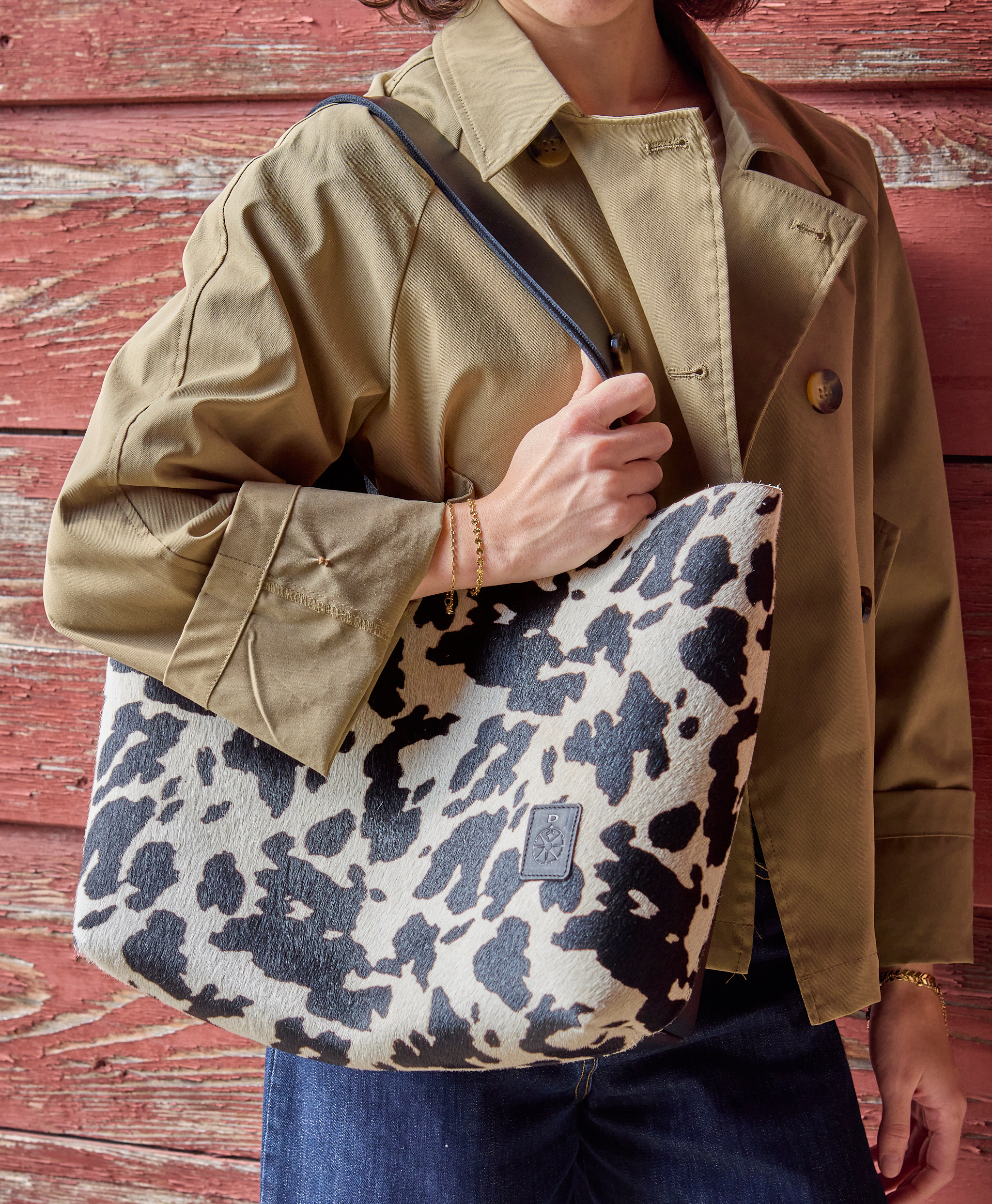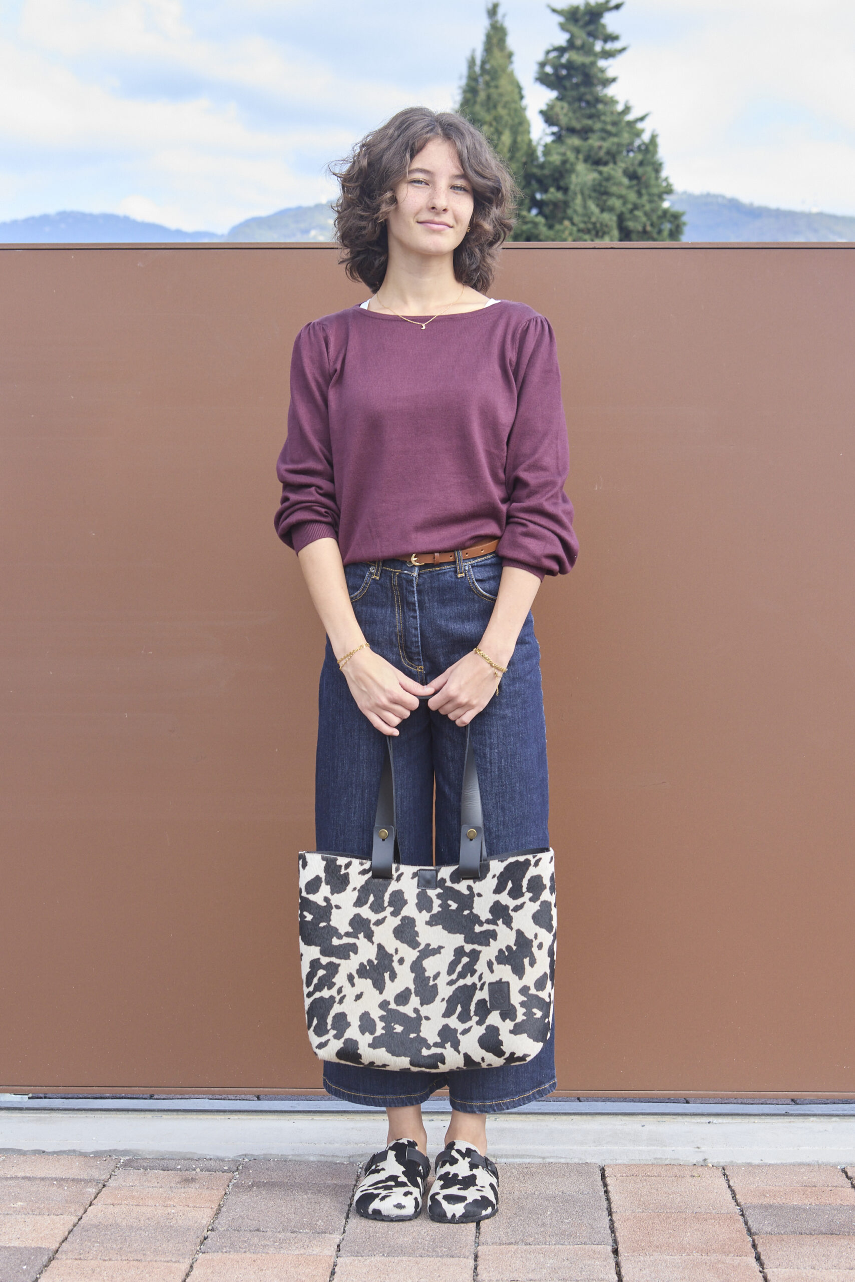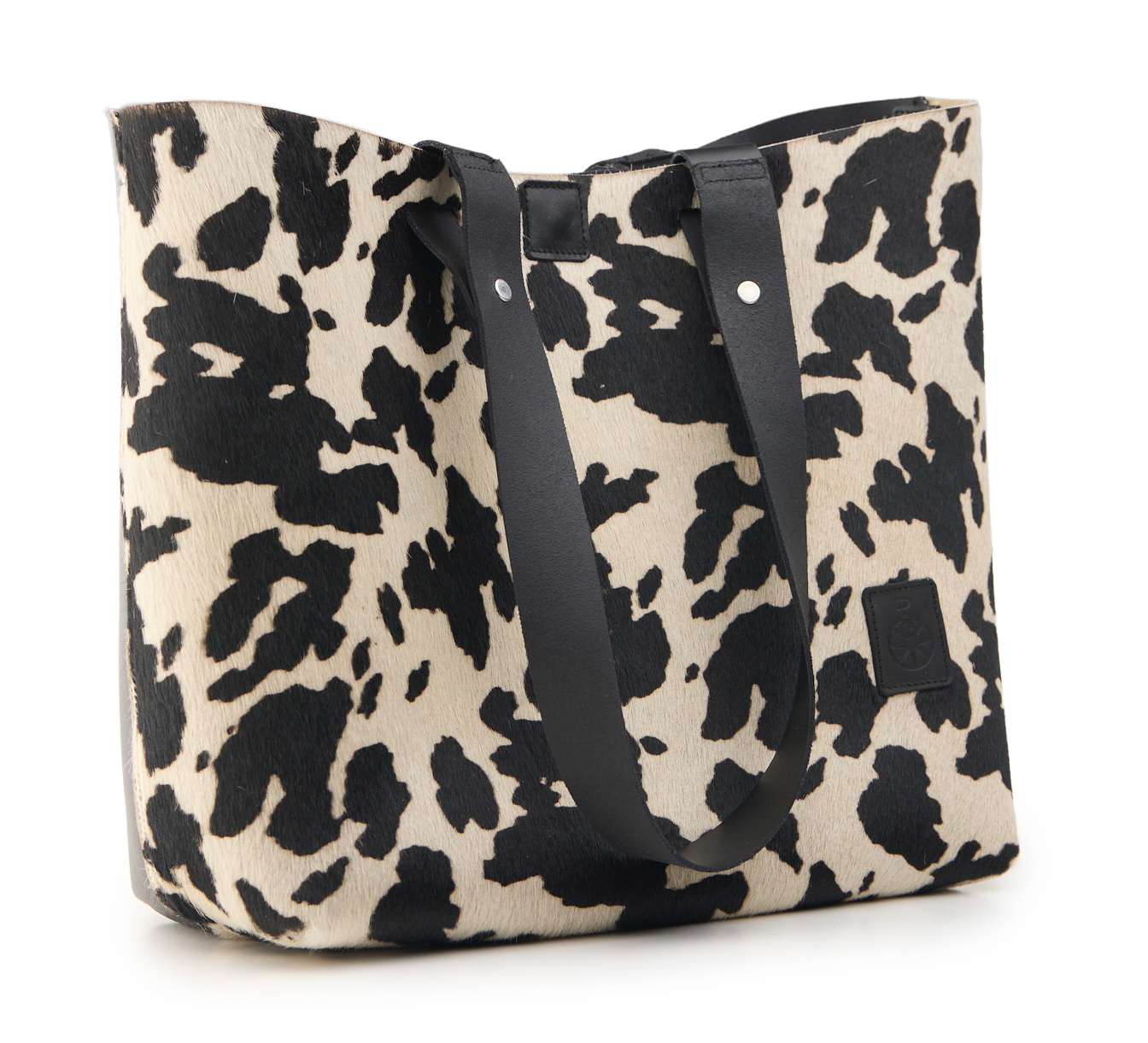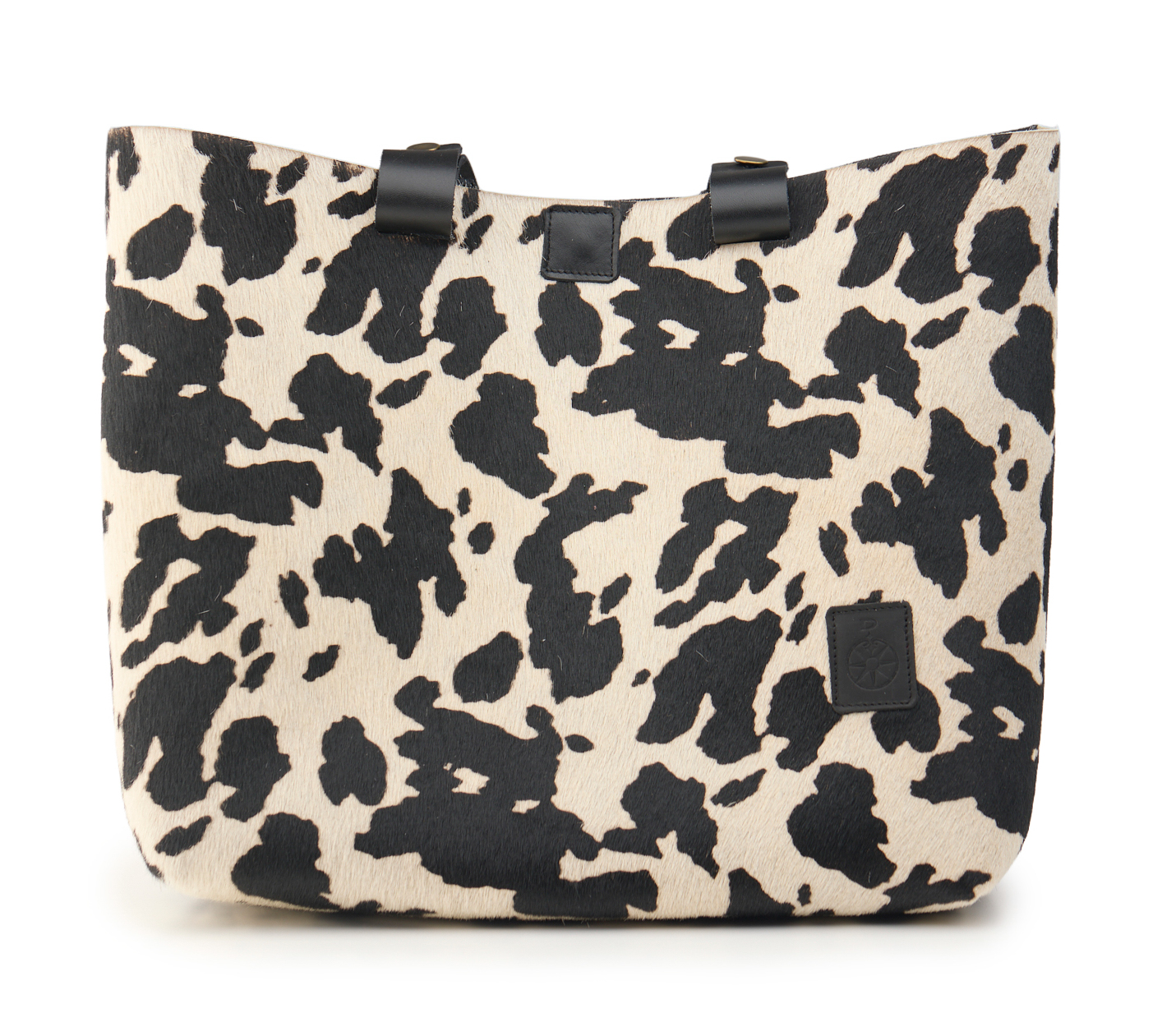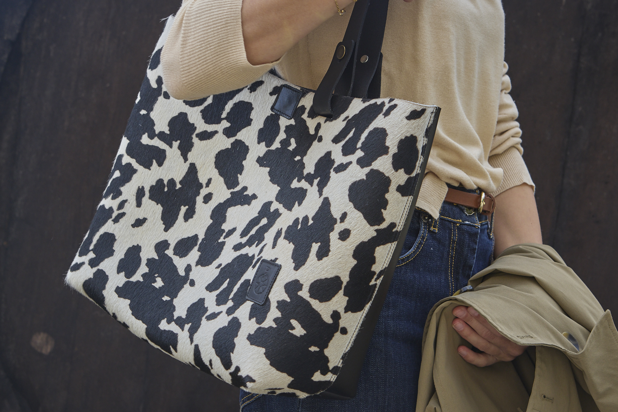 Borsa componibile in pelle cavallino Mucca e pelle nera composta da scocca, manico e sacca interna, per contenere e proteggere tutti gli oggetti che custodirà al suo interno.