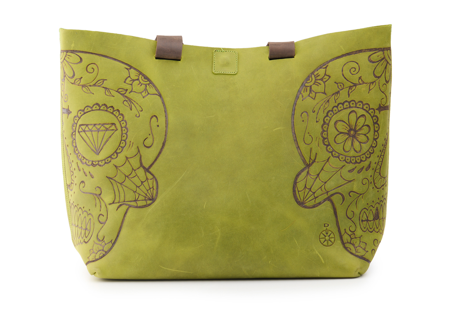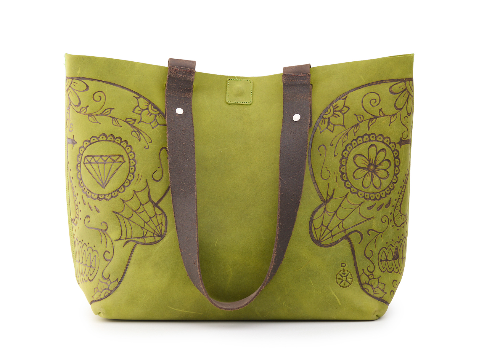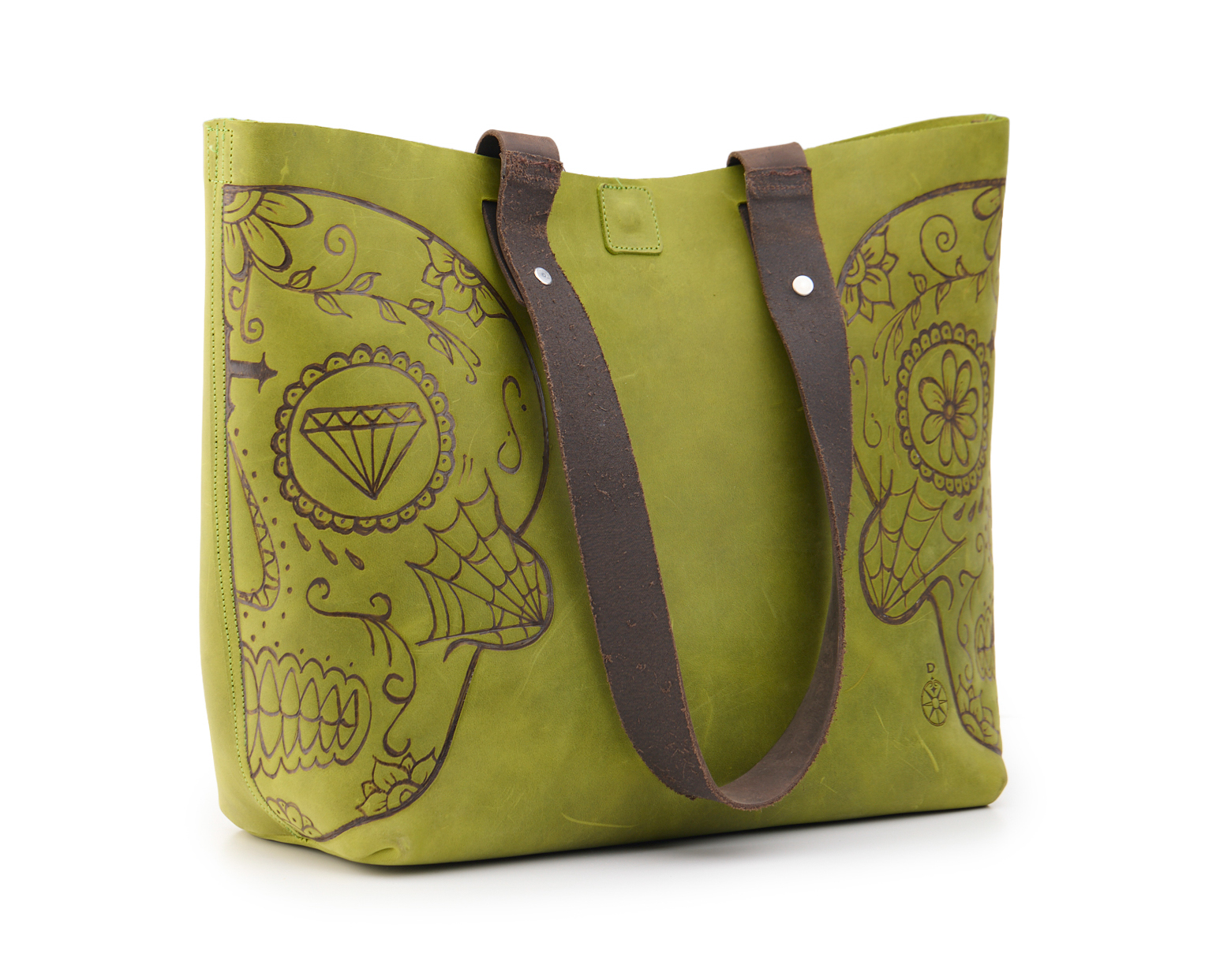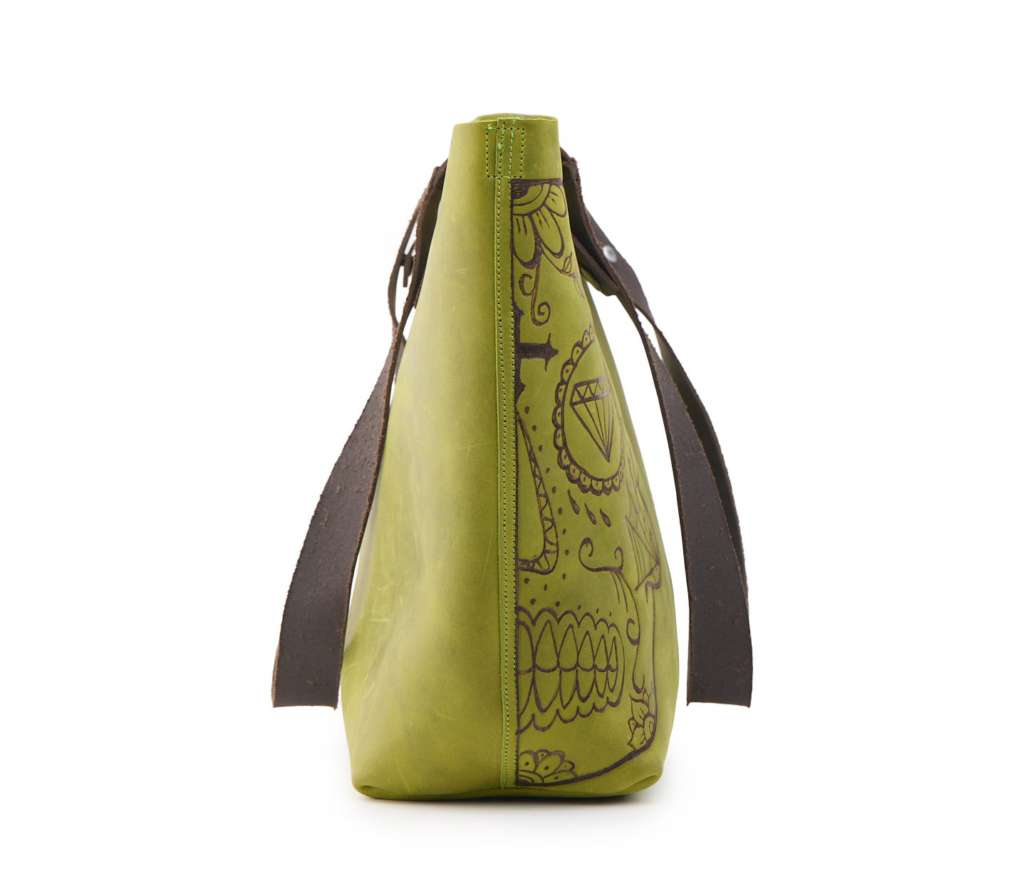 Borsa CHARA color Aloe Pirografia Teschio Messicano