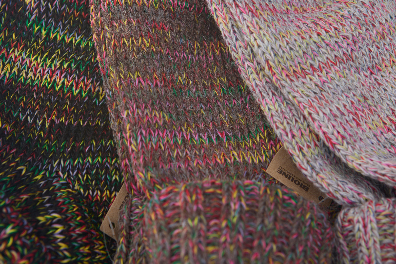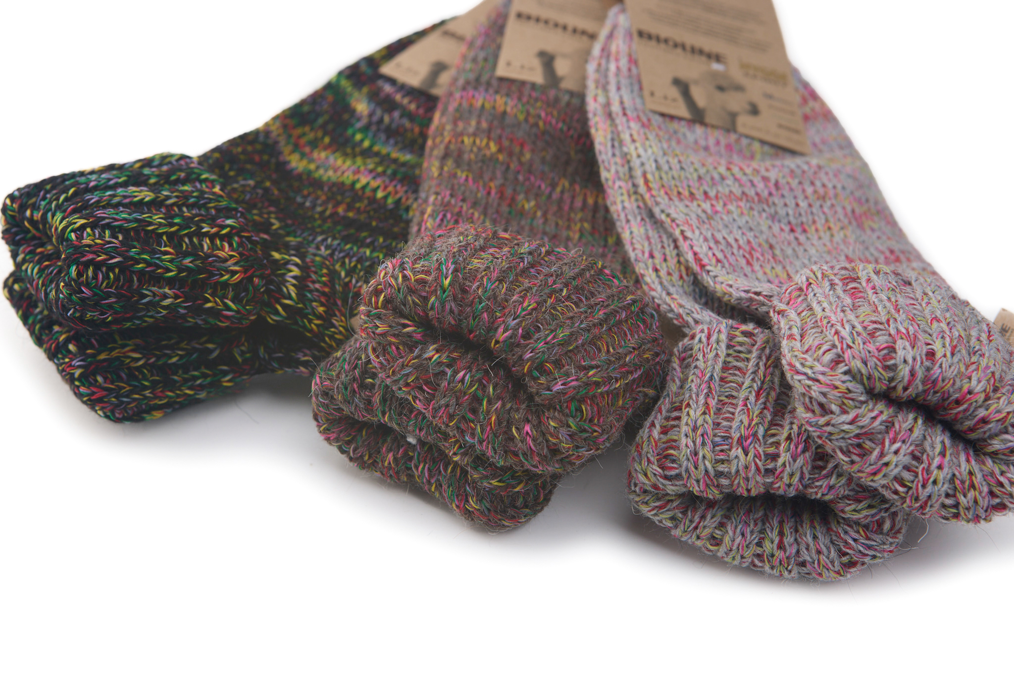 Comode e calde calze in lana alpaca con risvolto, filato di prestigio mulitcolor mèlange filato grosso, ottima resistenza, lavabili in lavatrice 30°.