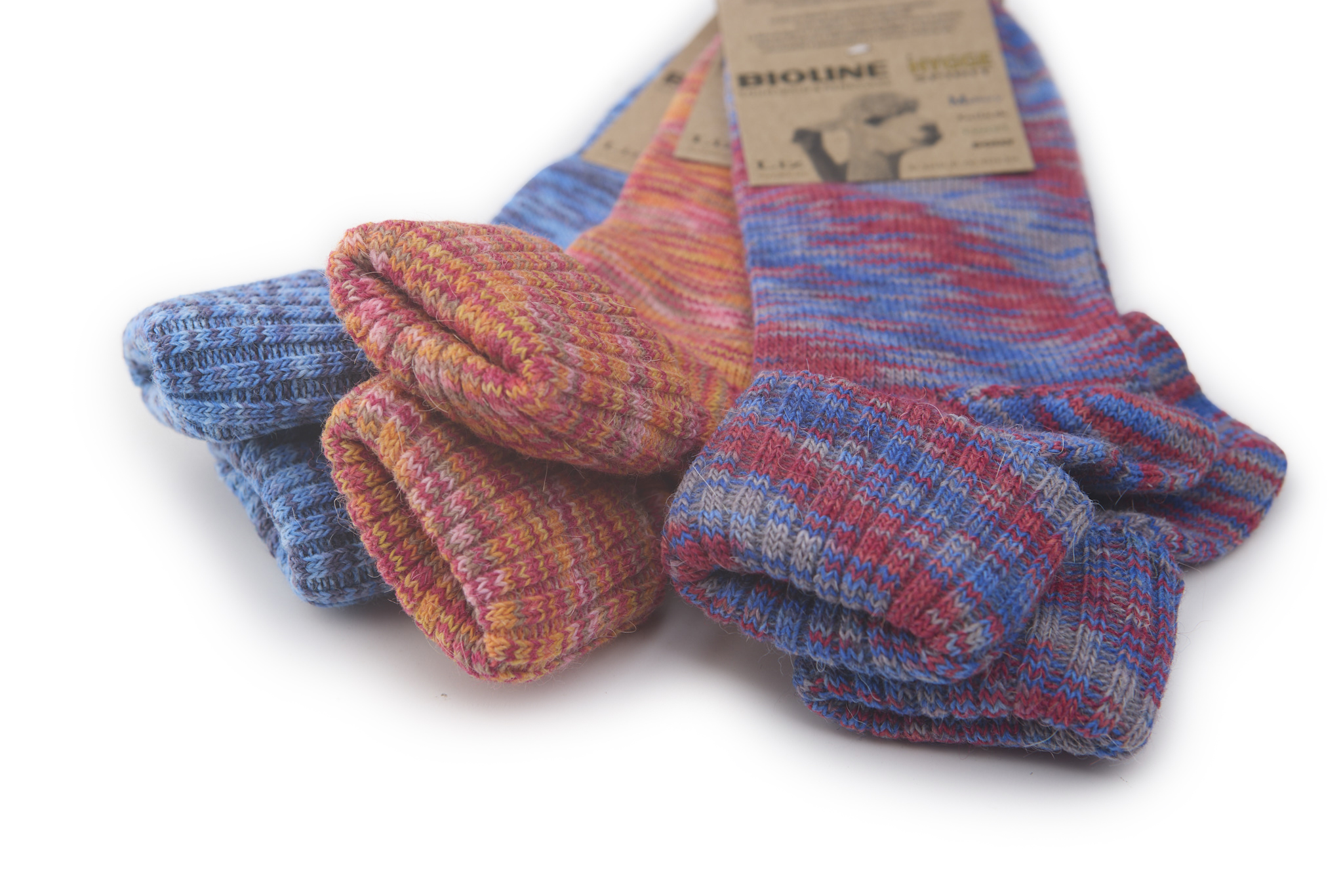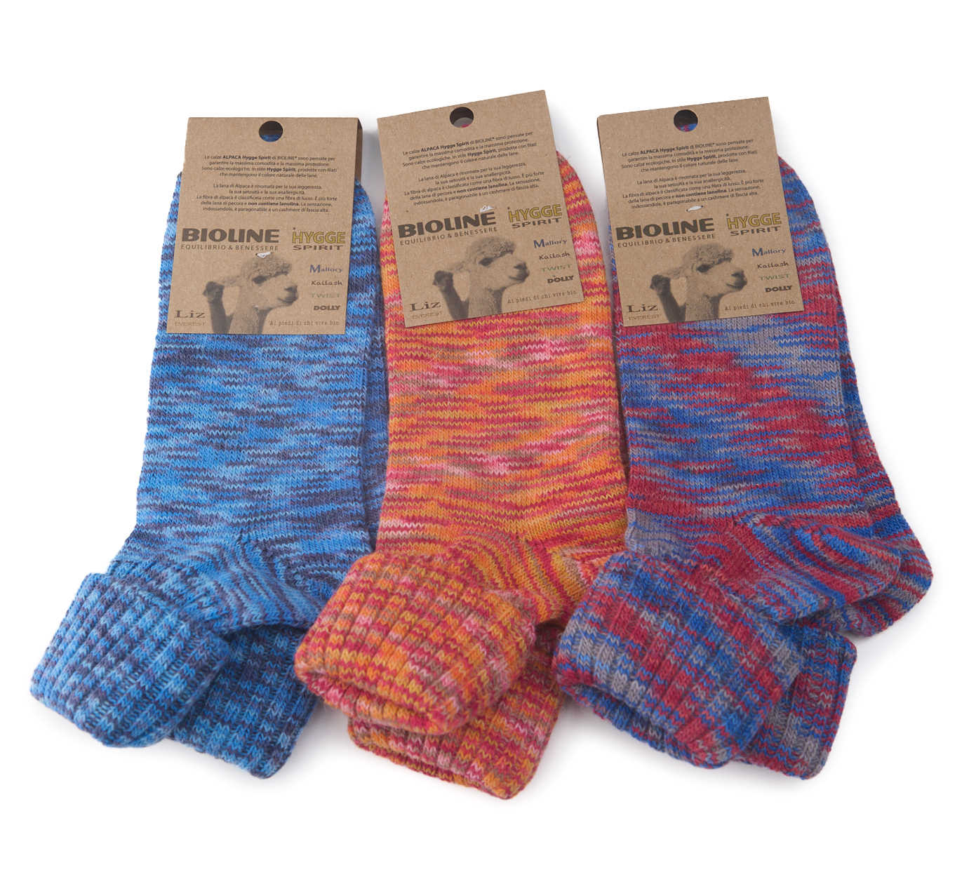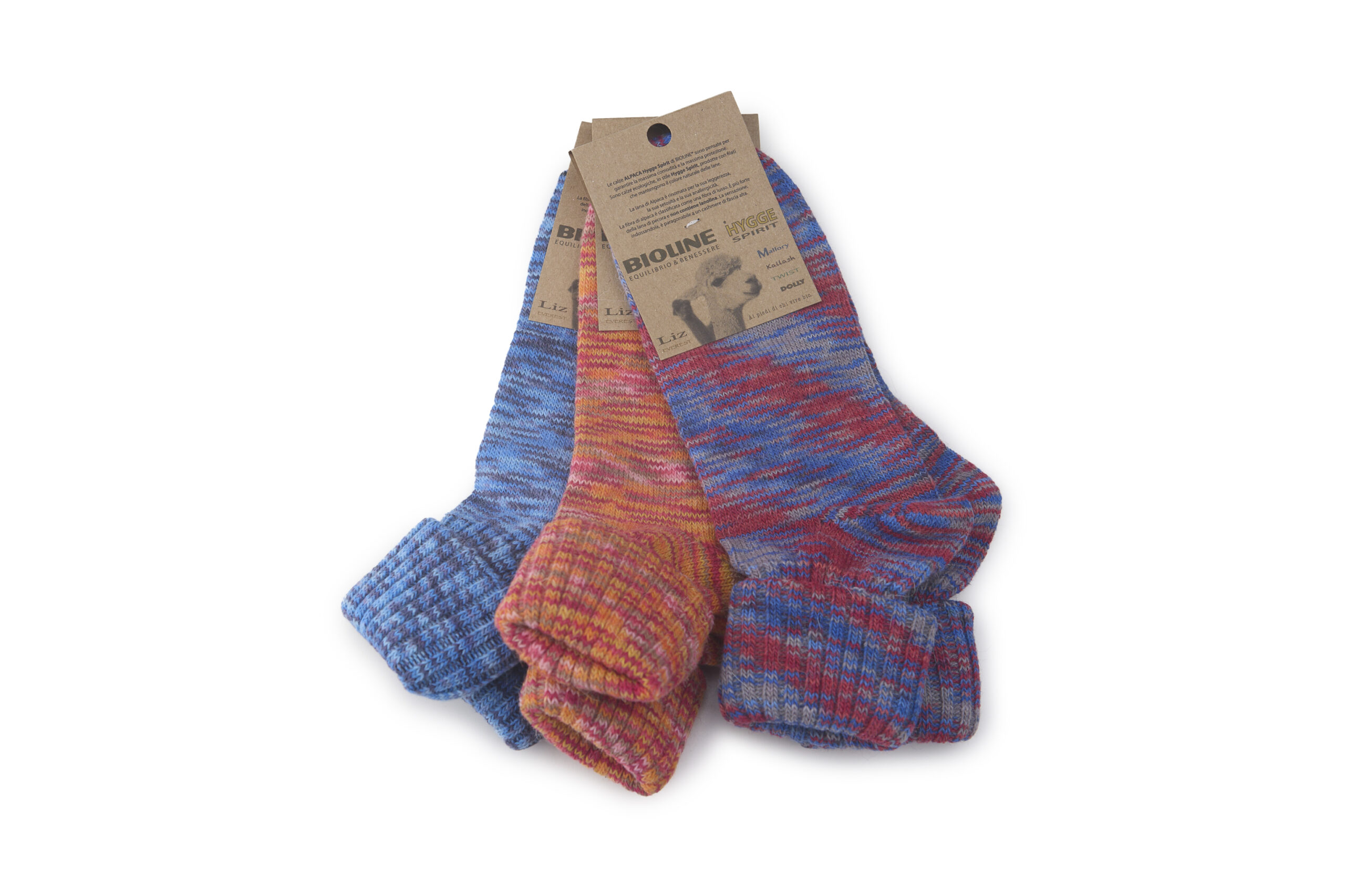 Comode e calde calze in lana alpaca con risvolto, filato di prestigio mulitcolor mèlange filato fino, ottima resistenza, lavabili in lavatrice 30°.