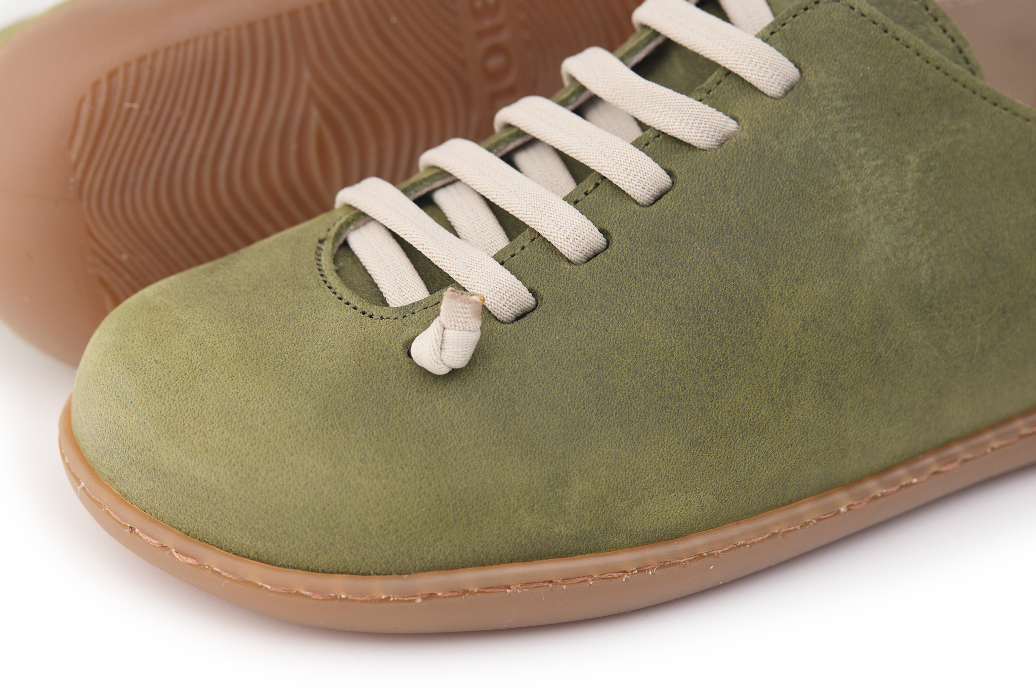 Scarpetta comfort realizzata in pelle nabuk bottalato, fodera in pelle vitello e dotata di lacci elastici annodati.