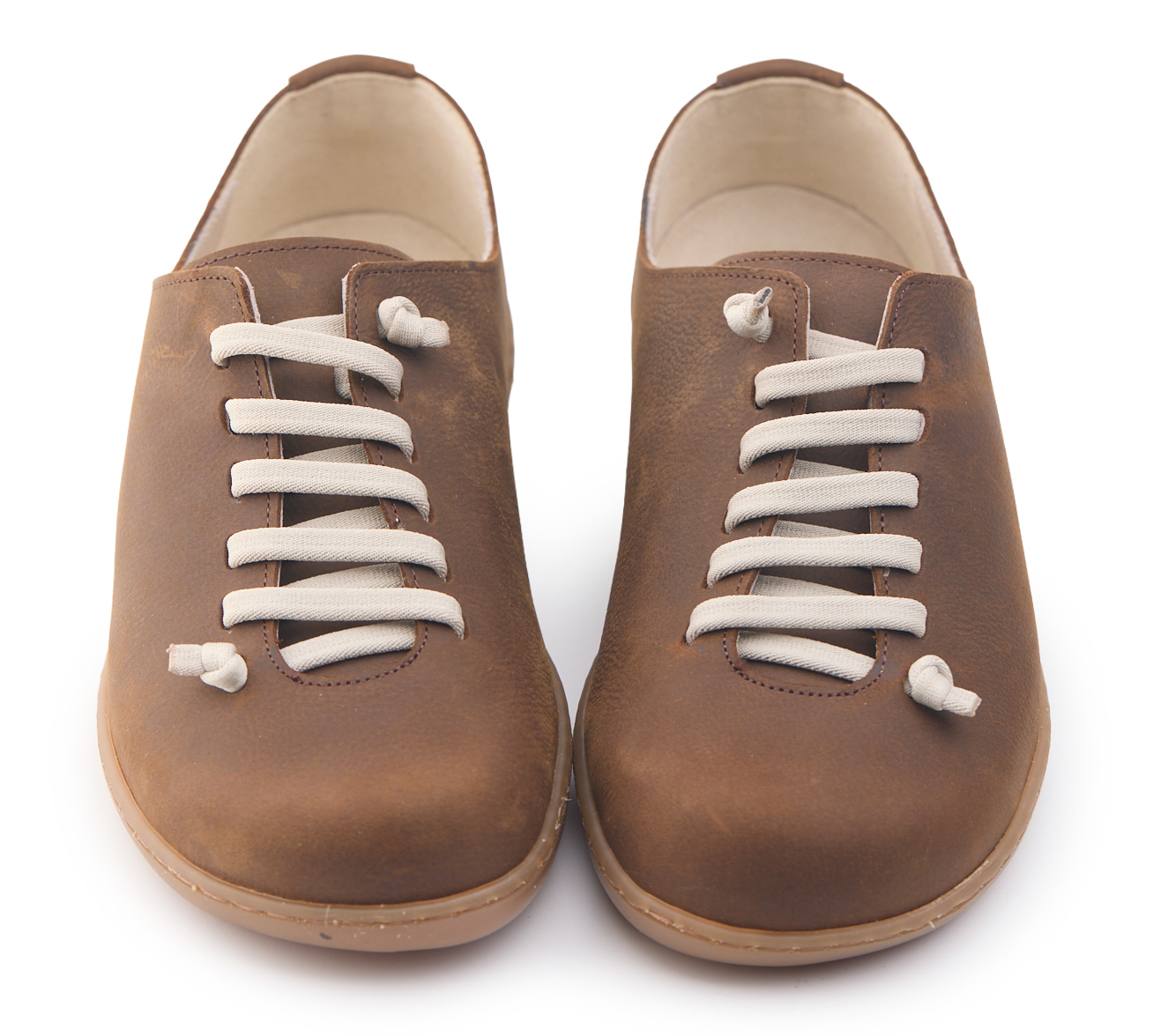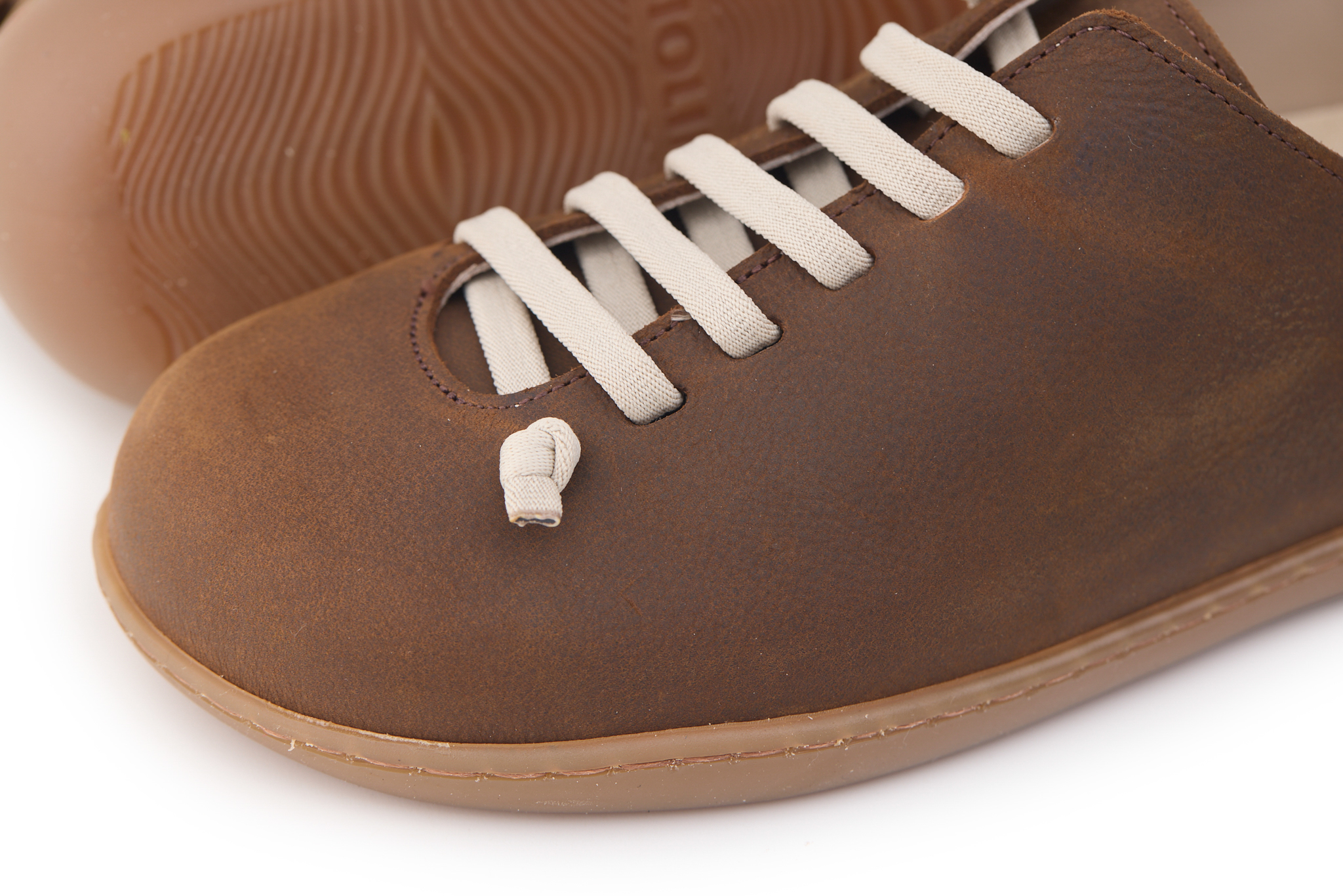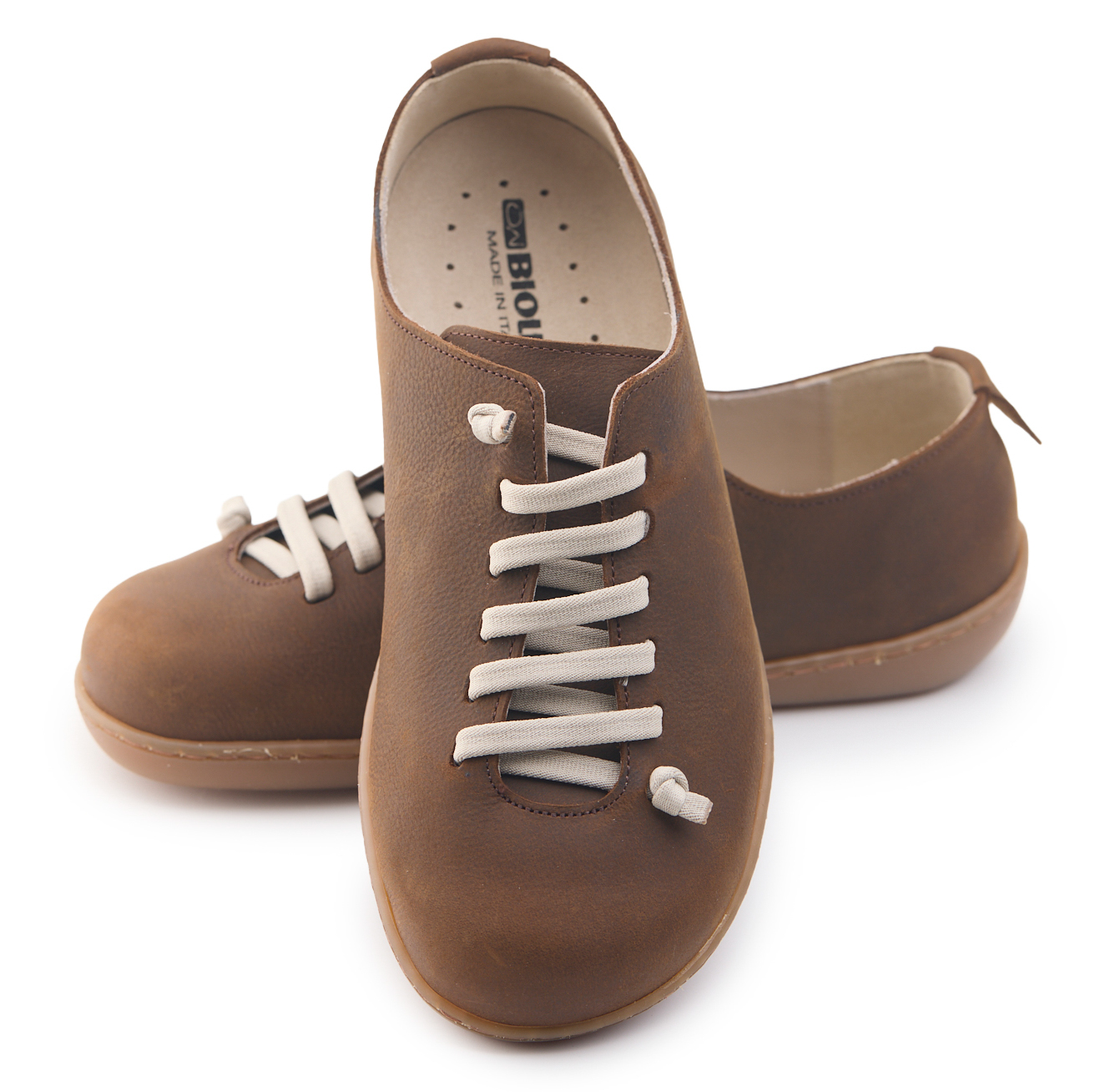Scarpetta comfort realizzata in pelle nabuk bottalato, fodera in pelle vitello e dotata di lacci elastici annodati.