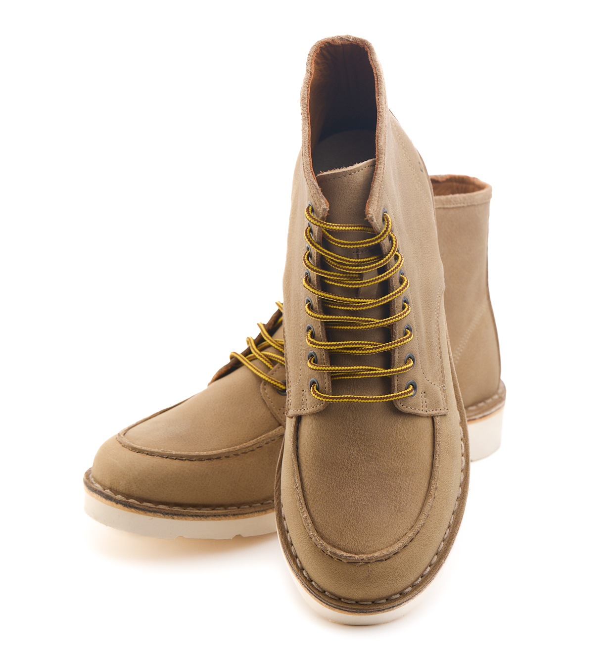 Stivaletto allacciato in pelle nabuk pieno fiore oliato e bottalato, lavorazione IDEAL, cuciture a vista.
