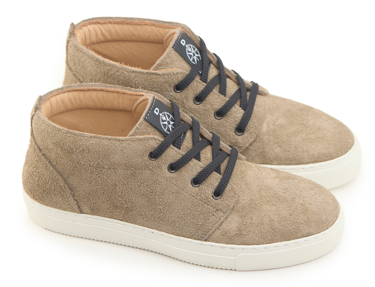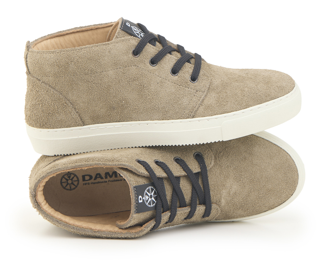 Polacchino sneakers realizzata in pelle crosta bovina scamosciata spessore 2.8-3 con dettagli cuciti e cuciture artigianali. Chiusura con lacci che offre una vestibilità sicura e personalizzata, sottopiede estraibile in gomma-sughero rivestito pelle, suola in gomma resistente Vibram®.