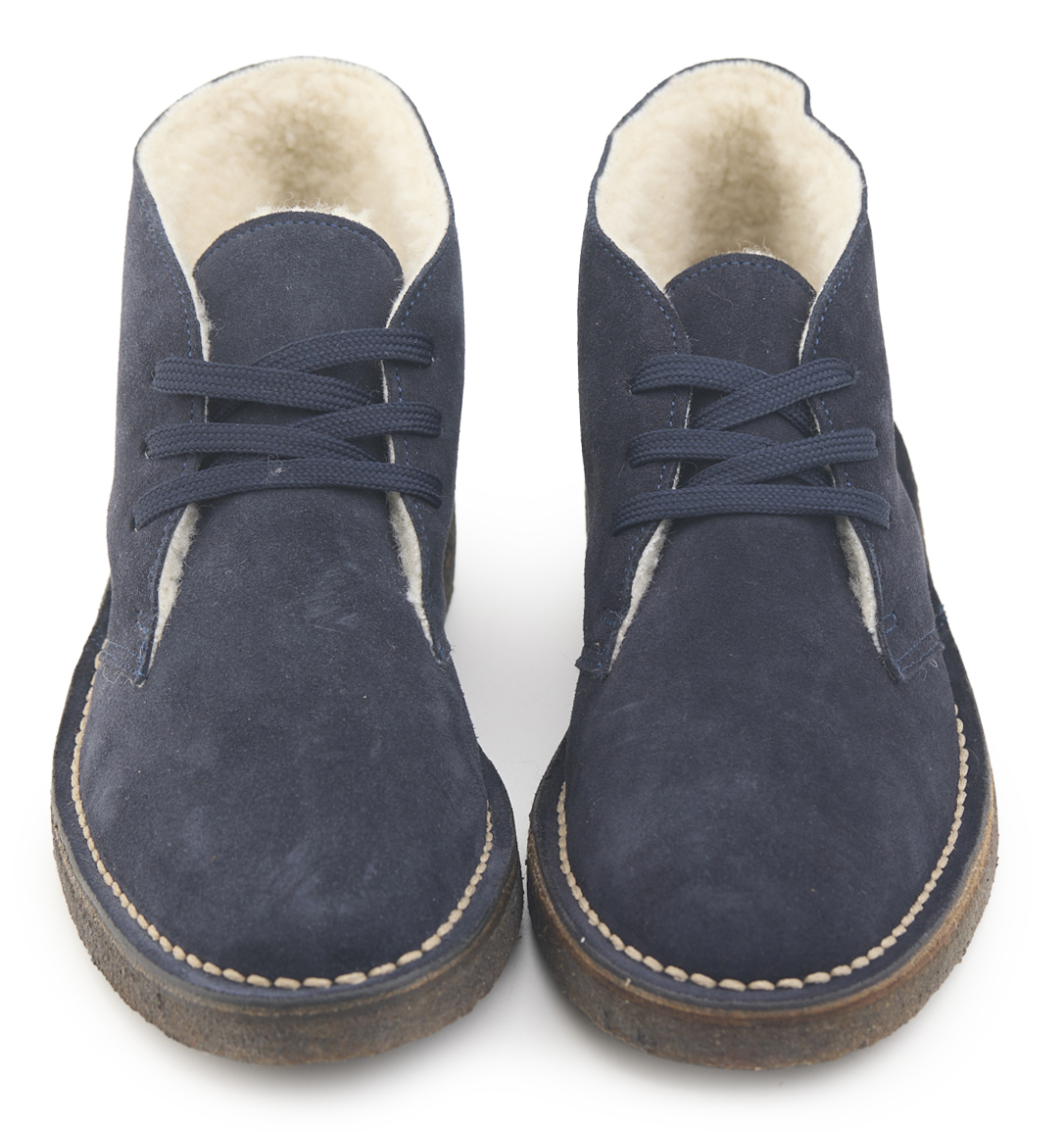 Polacchino comfort realizzato in pelle scamosciata e fodera in lana certificata RWS, Responsible Wool Standard. Lavorazione Ideal, sottopiede memory e suola in gomma NR (Natural Rubber).