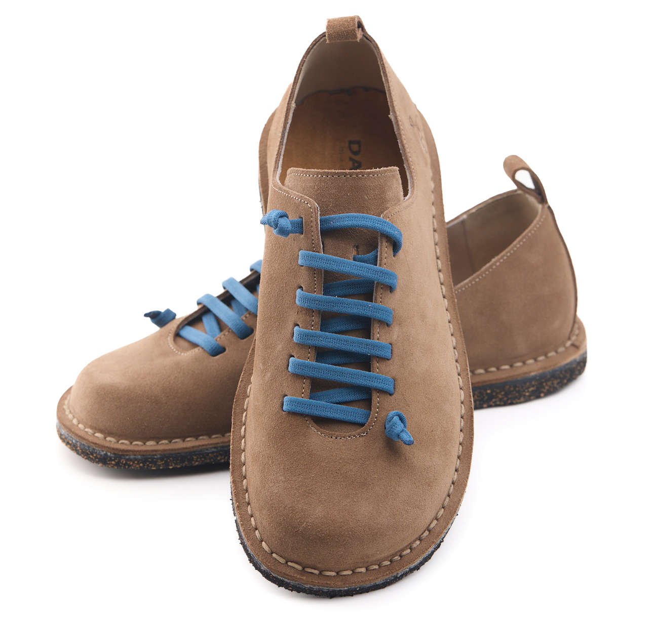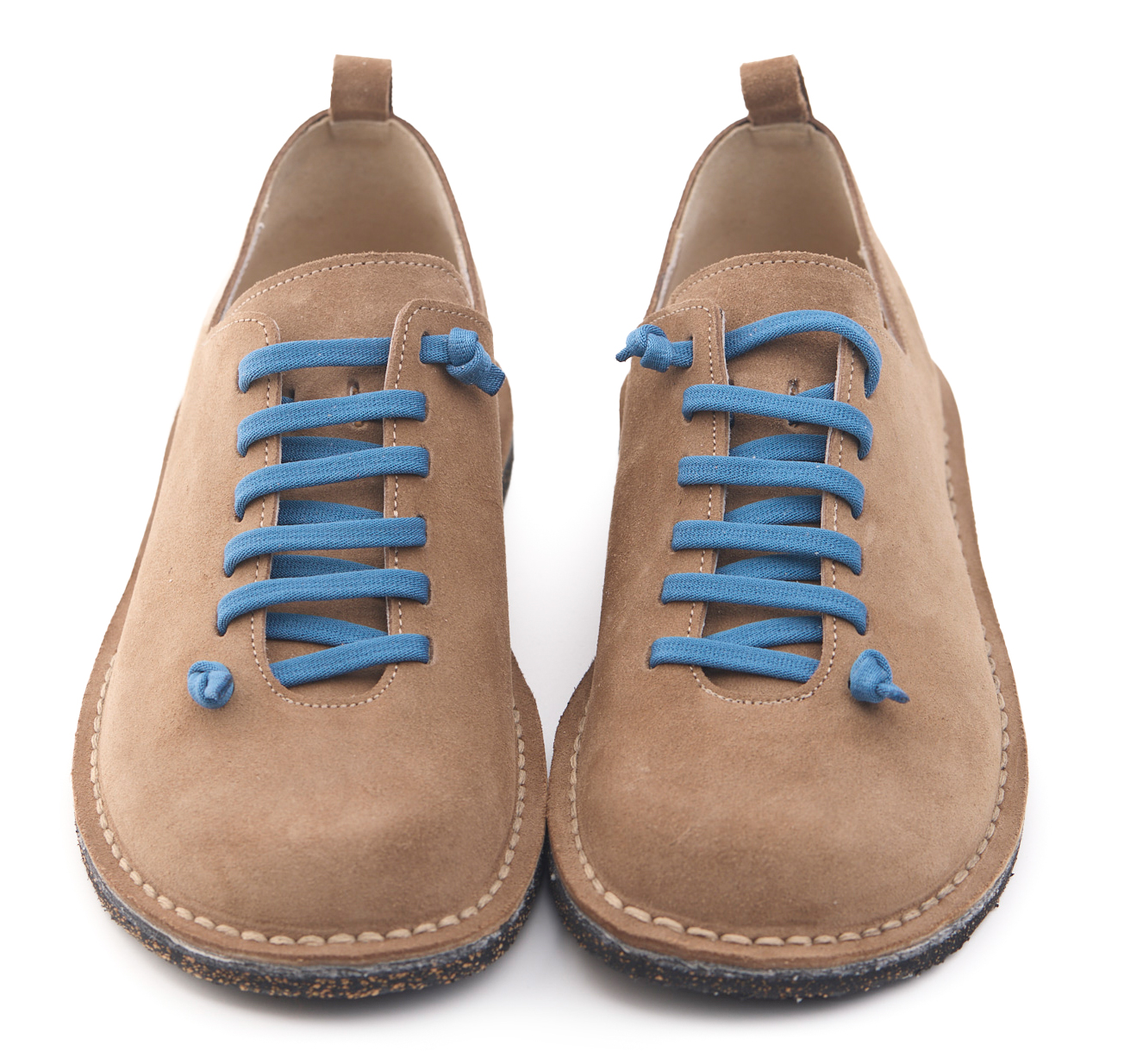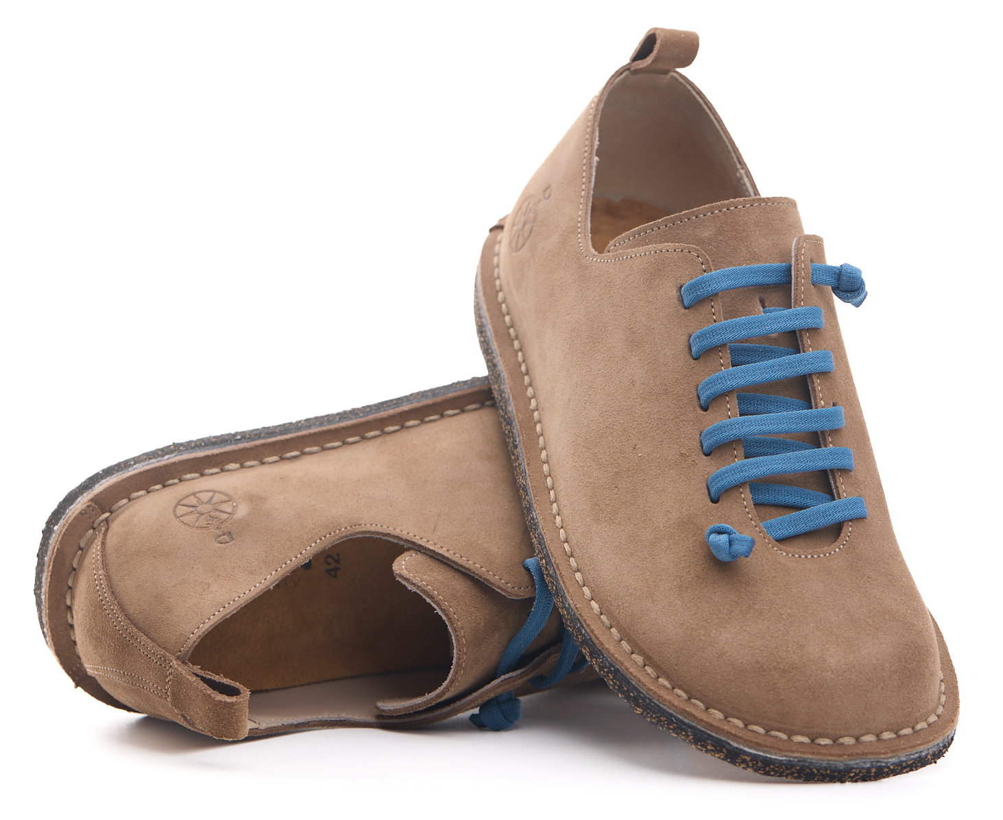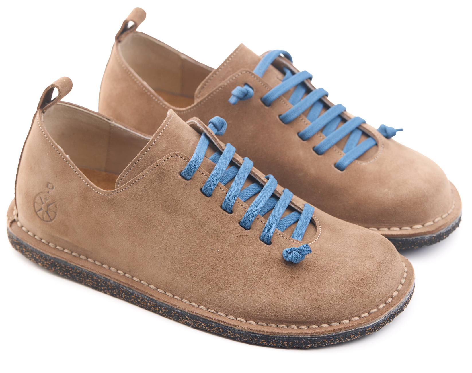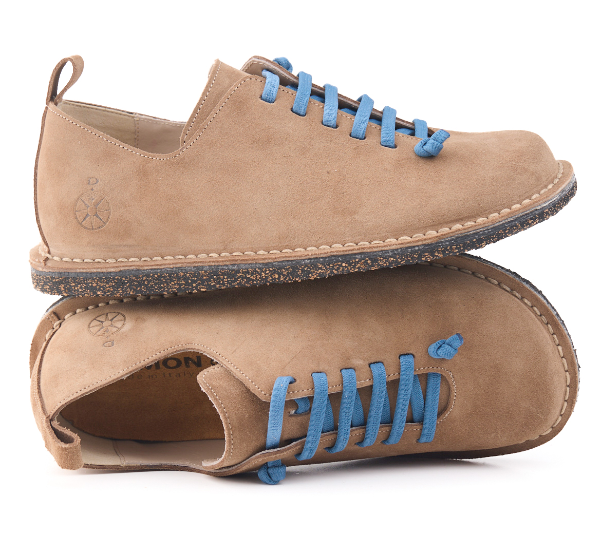 Scarpetta comfort in pelle scamosciata con lacci elastici e fodera in pelle vitello.