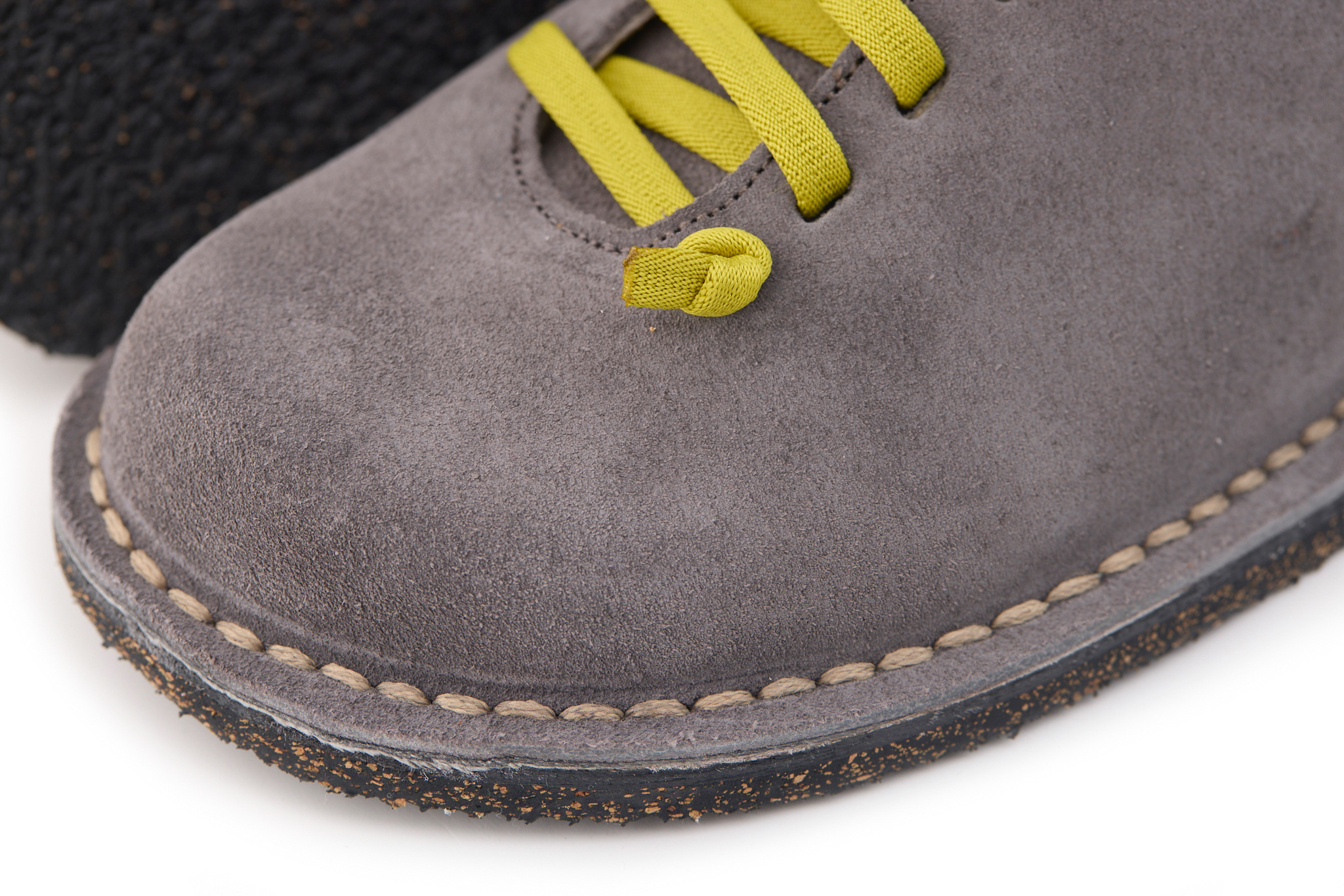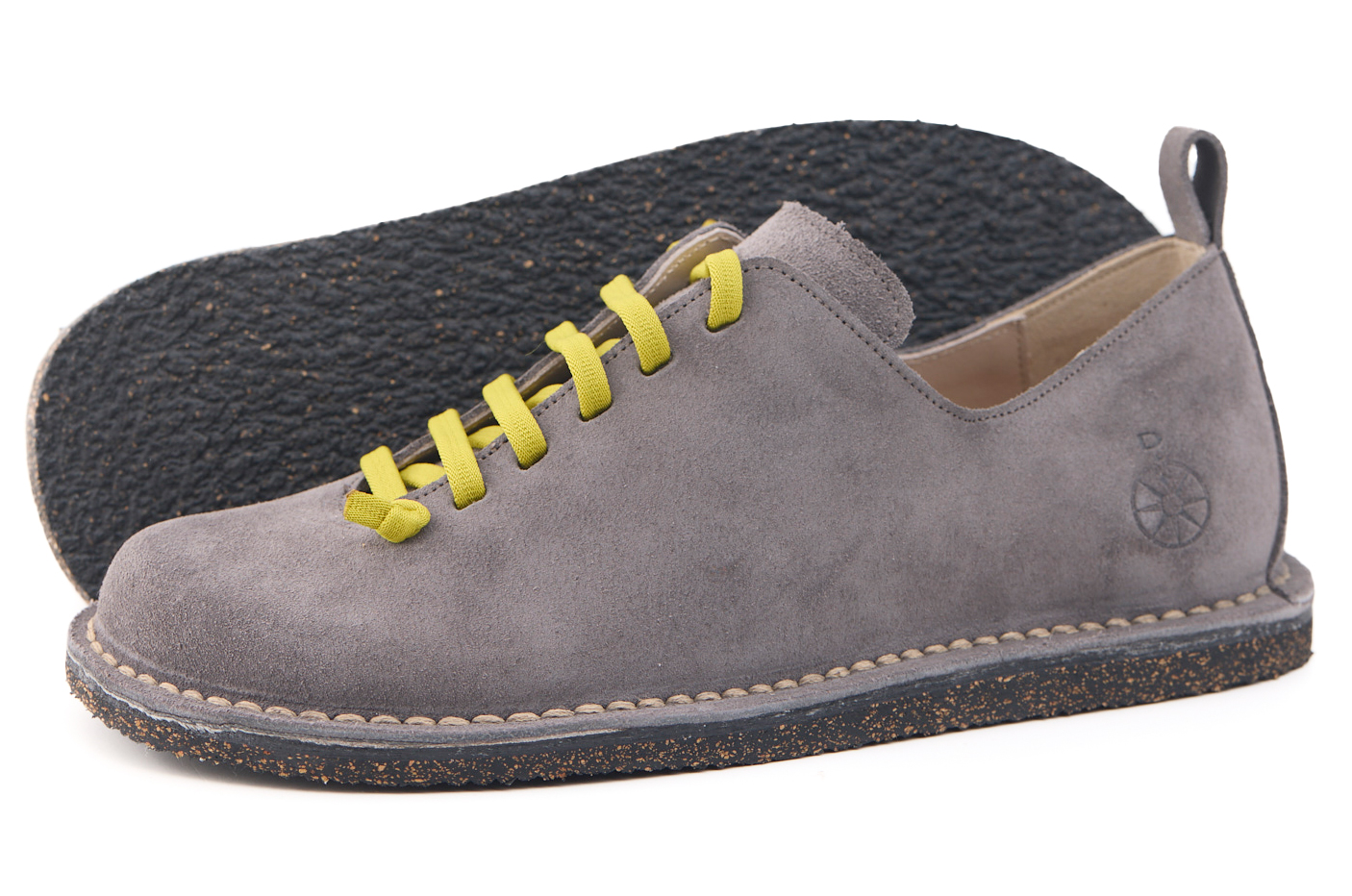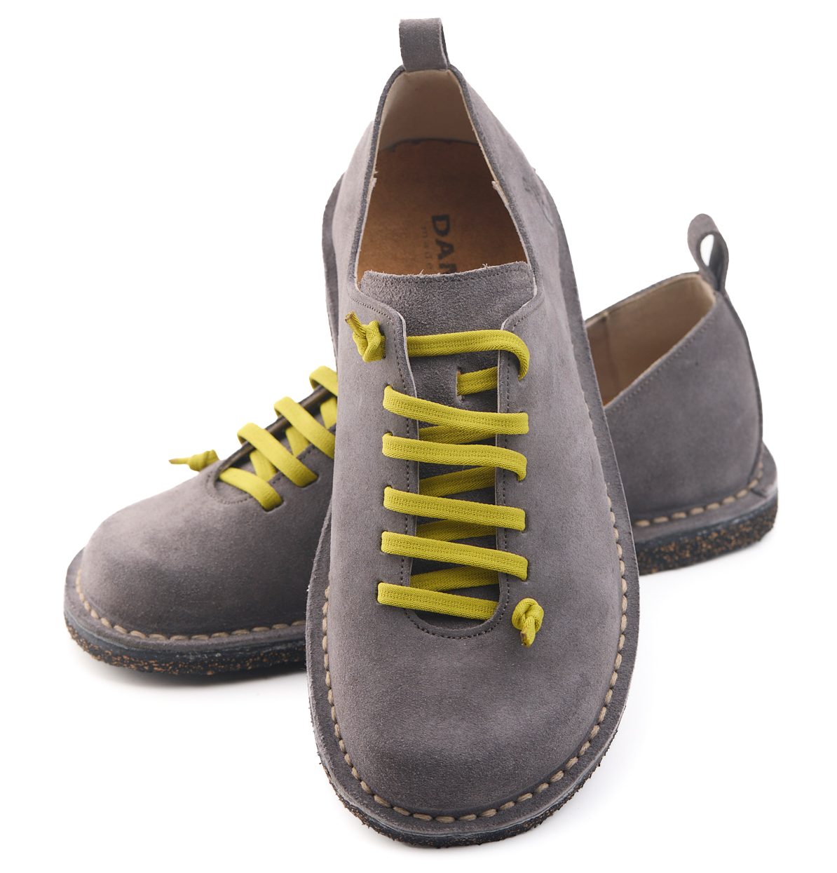 Scarpetta comfort in pelle scamosciata con lacci elastici e fodera in pelle vitello.