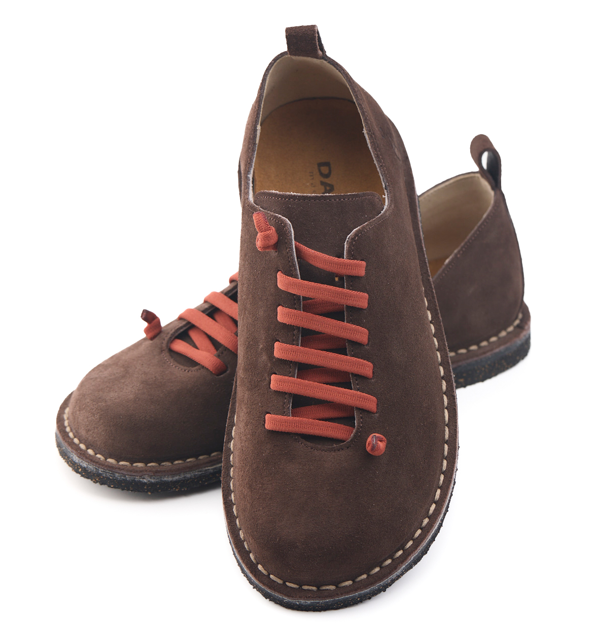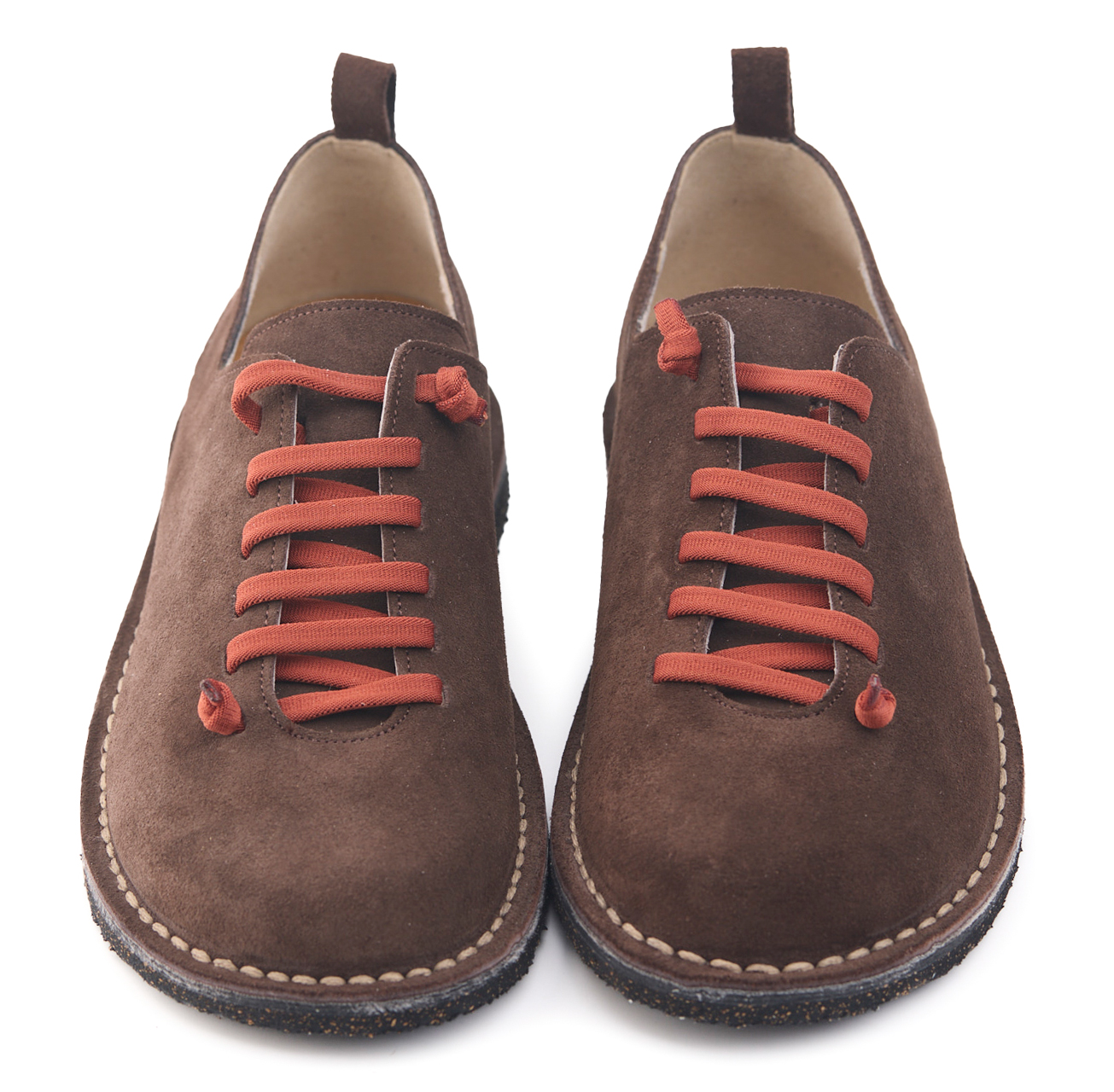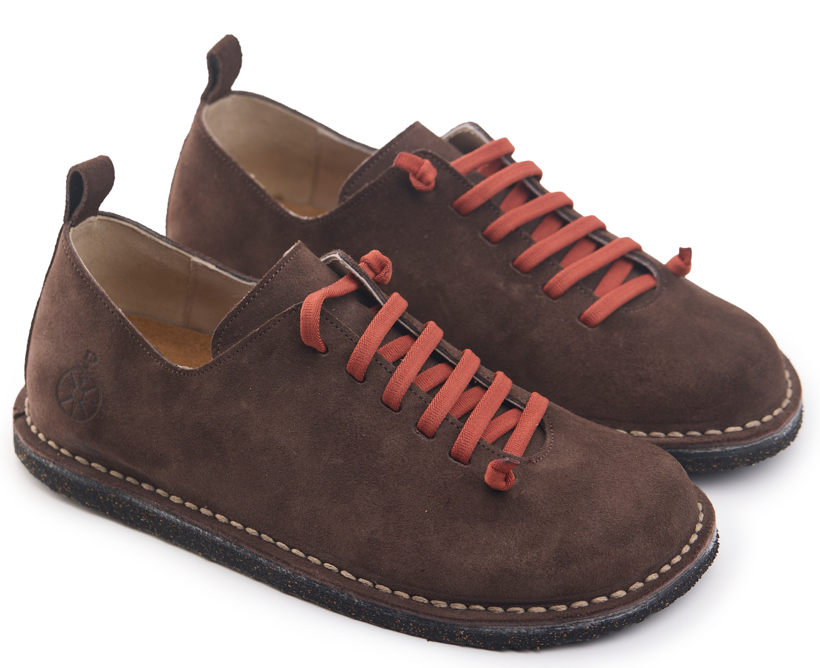 Scarpetta comfort in pelle scamosciata con lacci elastici e fodera in pelle vitello.