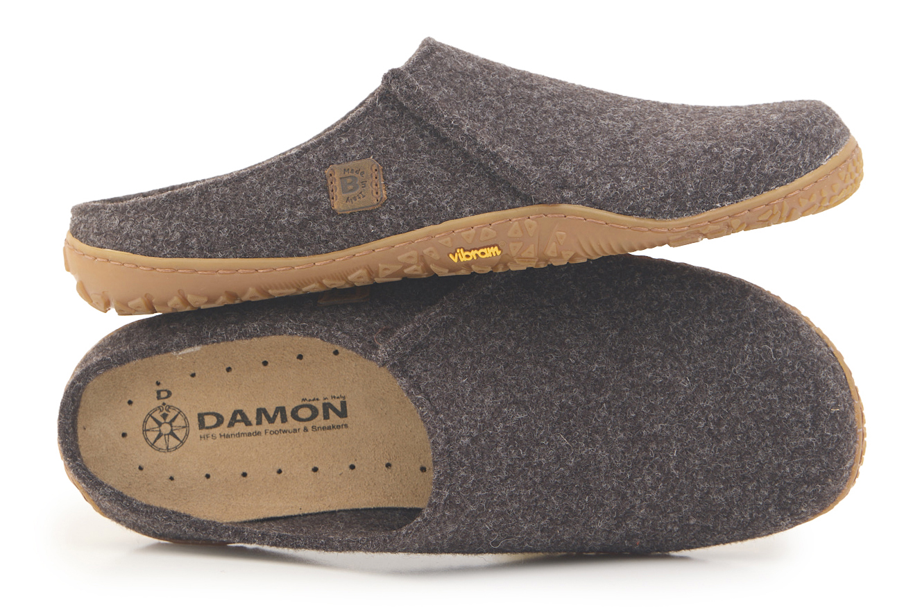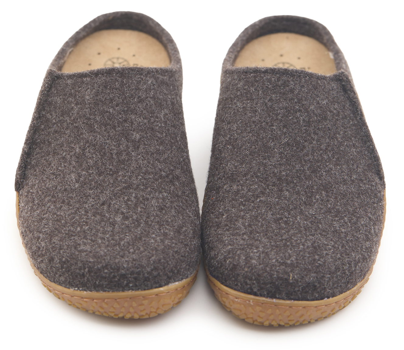 Pantofola in lana merinos costruzione strobel, un metodo di lavorazione che permette alla calzatura la massima flessibilità.
