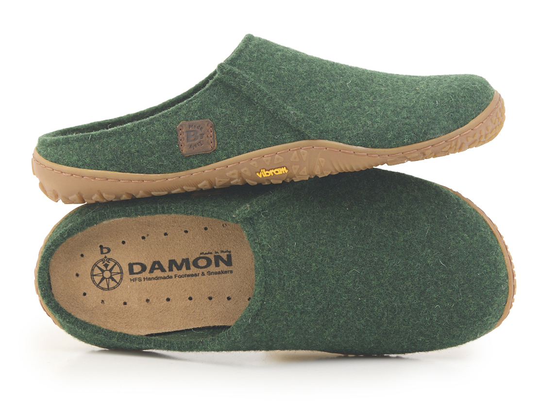 Pantofola in lana merinos costruzione strobel, un metodo di lavorazione che permette alla calzatura la massima flessibilità.