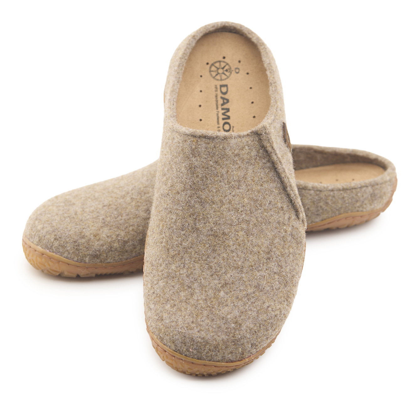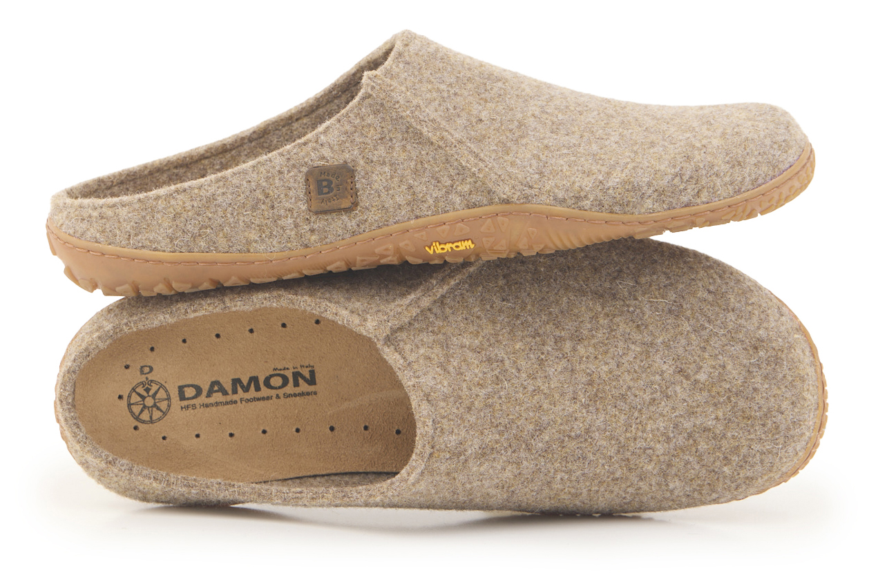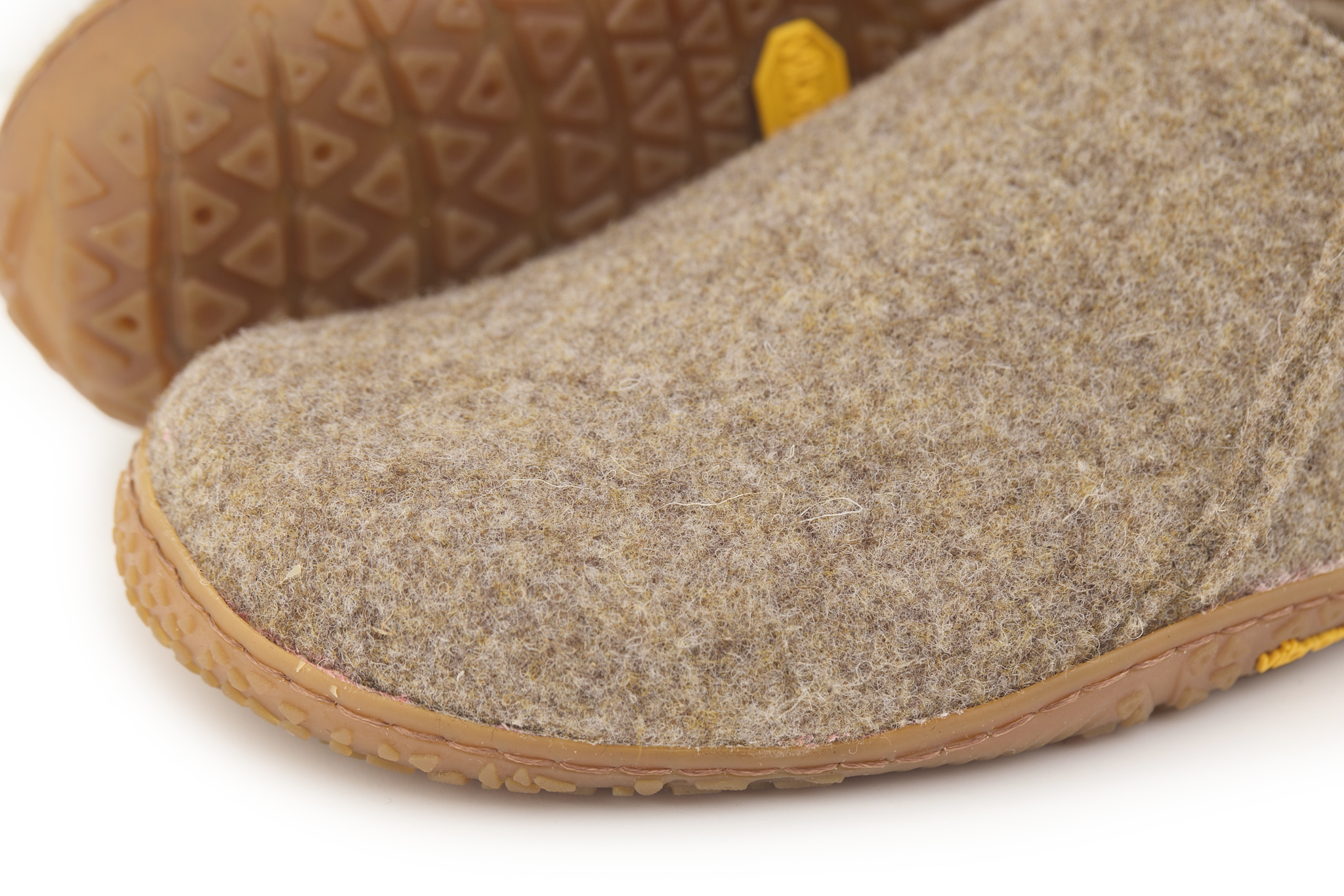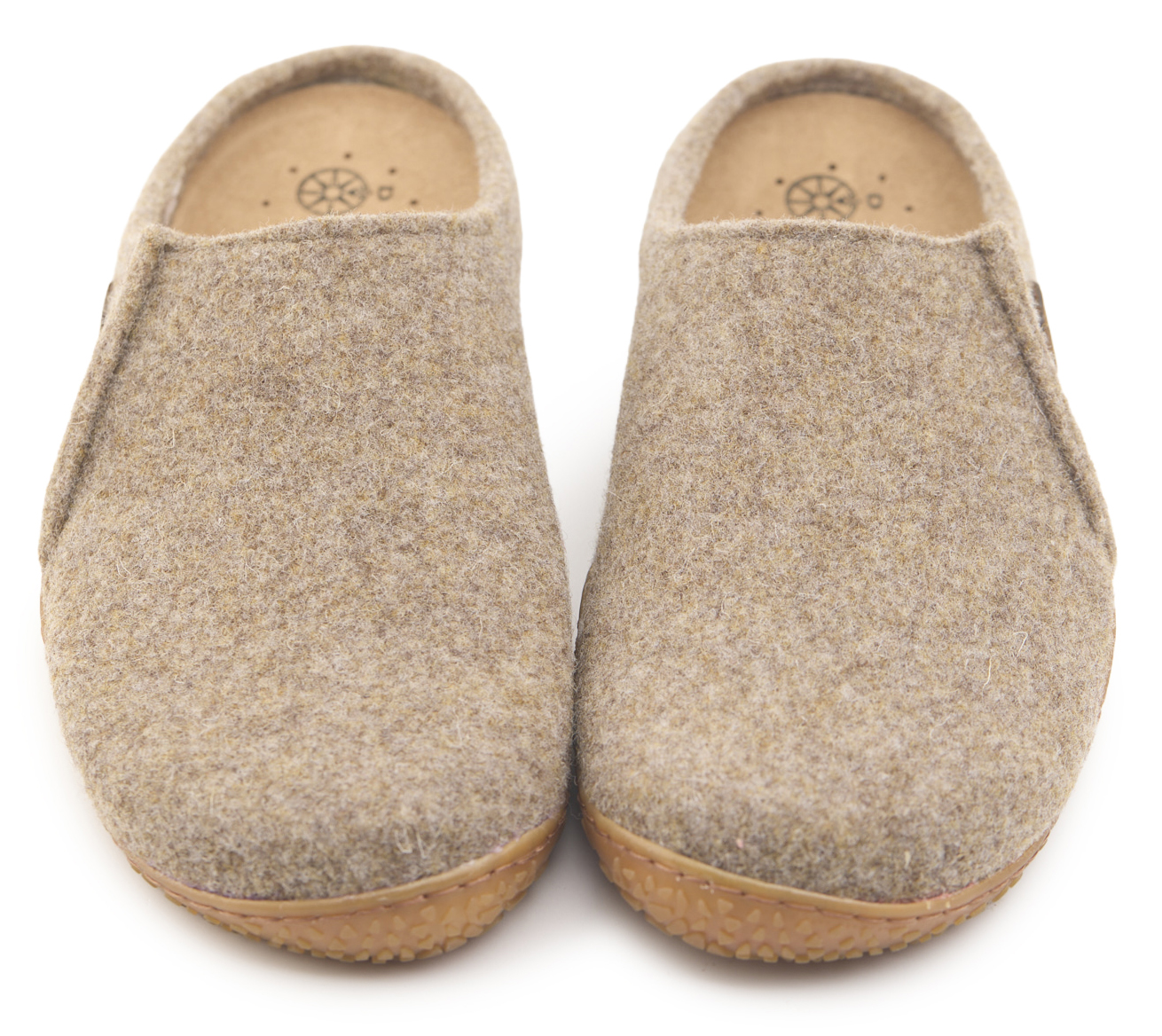 Pantofola in lana merinos costruzione strobel, un metodo di lavorazione che permette alla calzatura la massima flessibilità.