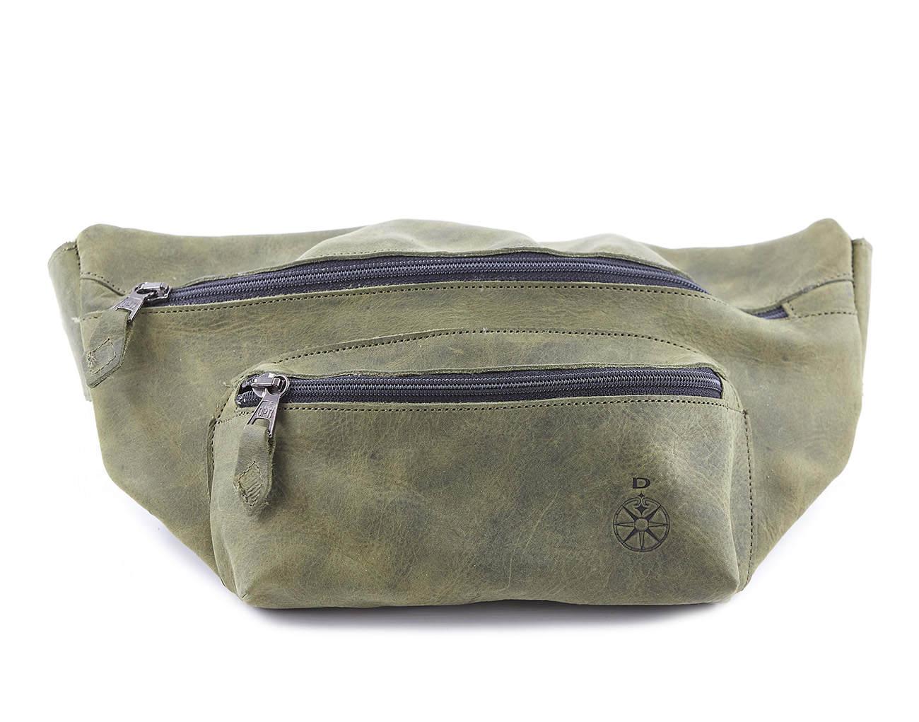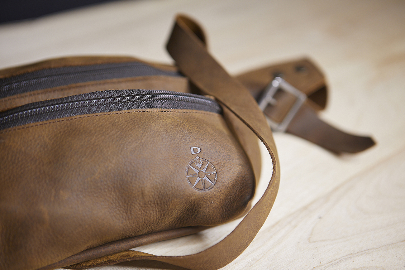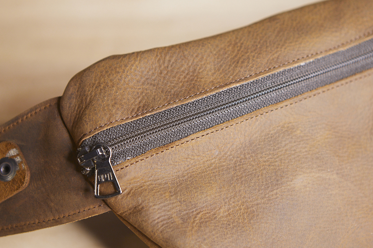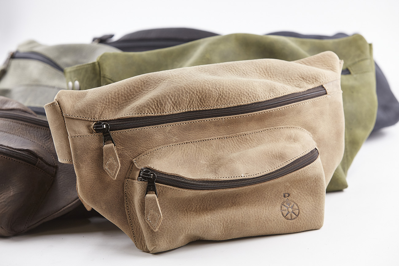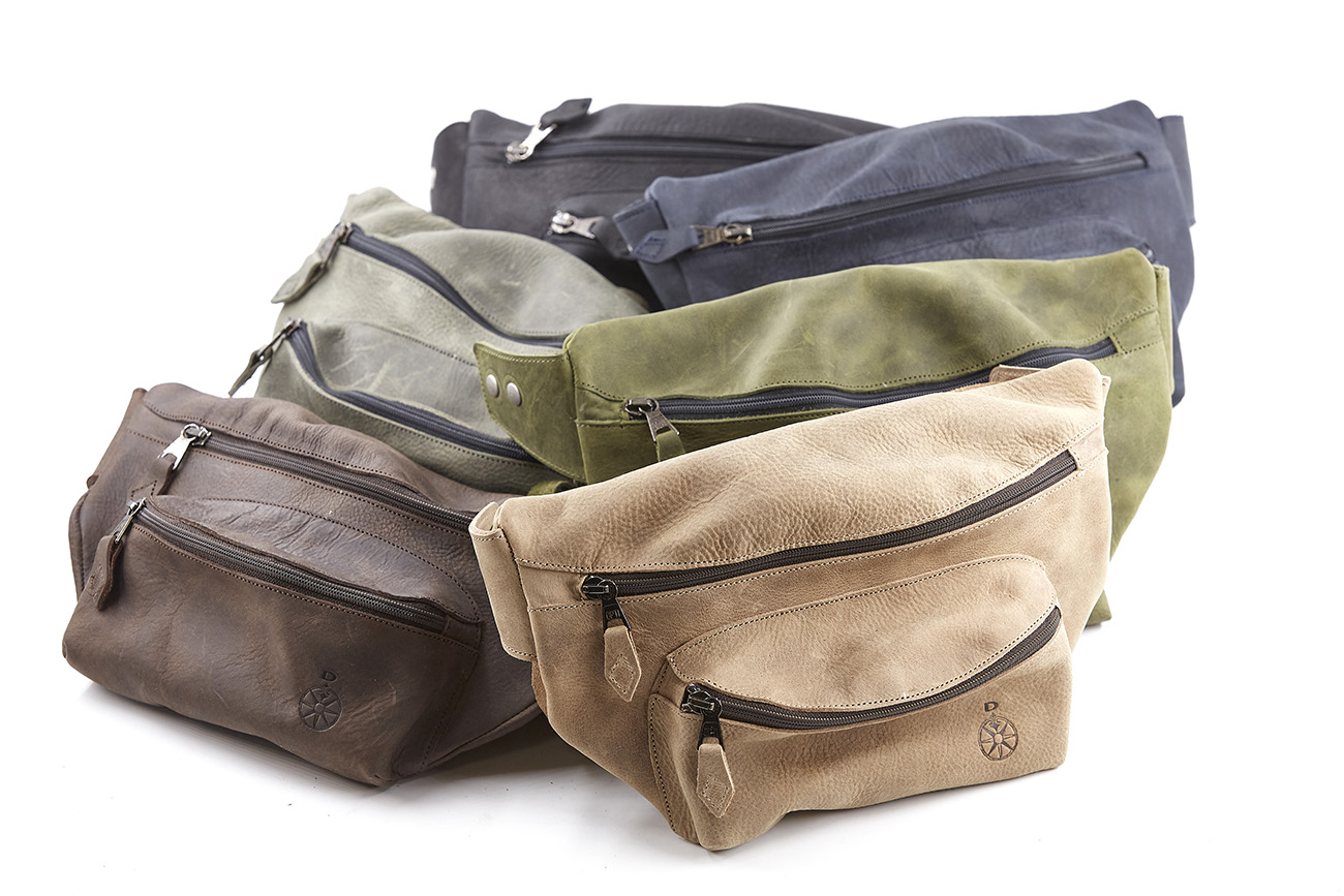 Marsupio in pelle fatto a mano, per mettere lo stretto indispensabile.