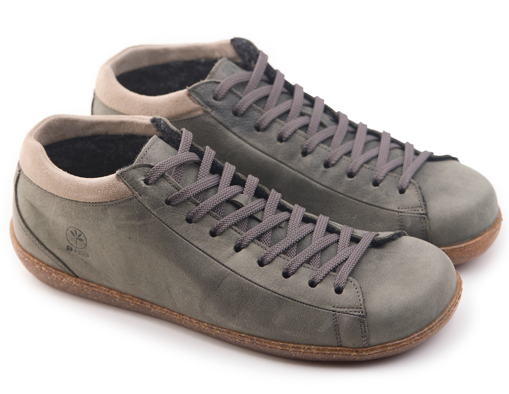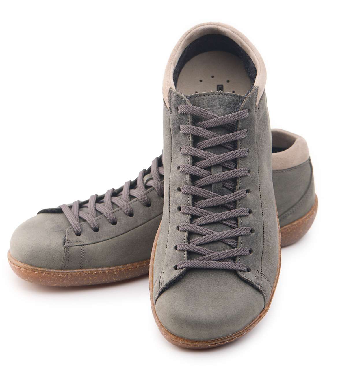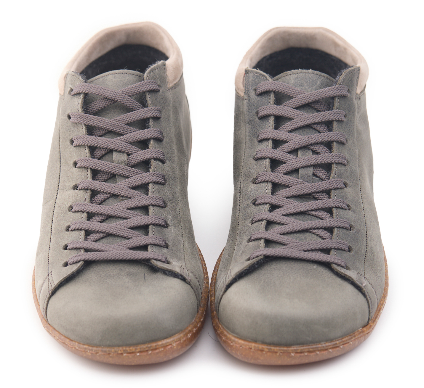 Polacchino mid comfort realizzato in nabuk bottalato, la fodera è in lana cotta, collarino imbottito in pelle capretta scamosciata con lacci in cotone e sottopiede estraibile ricoperto in pelle.