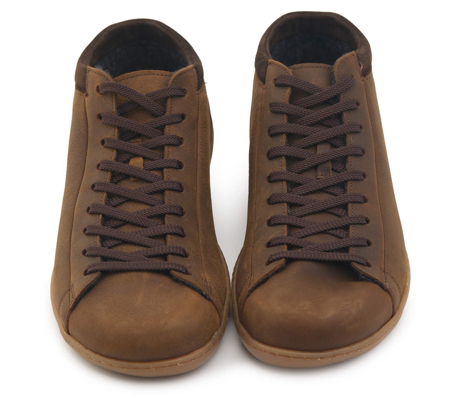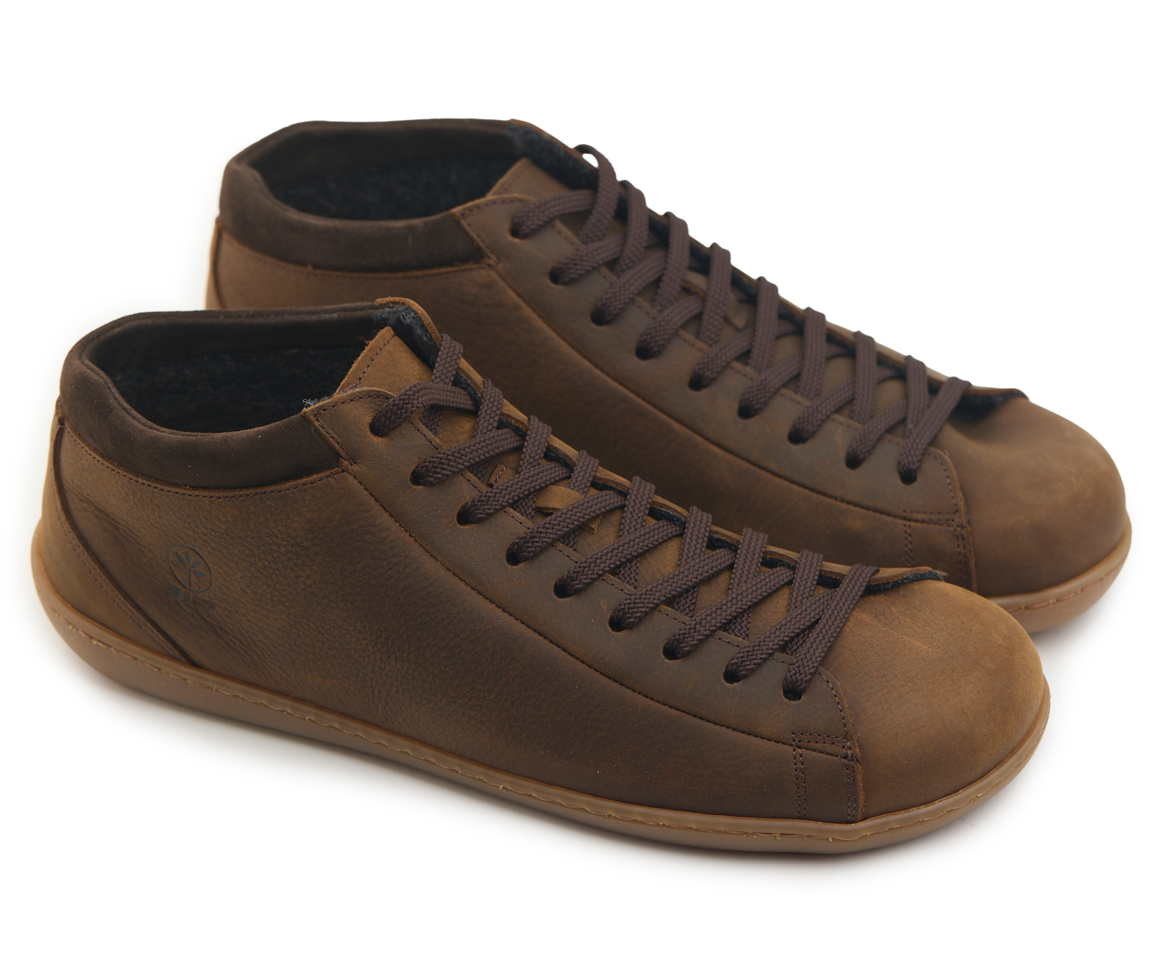 Polacchino mid comfort realizzato in nabuk bottalato, la fodera è in lana cotta, collarino imbottito in pelle capretta scamosciata con lacci in cotone e sottopiede estraibile ricoperto in pelle.