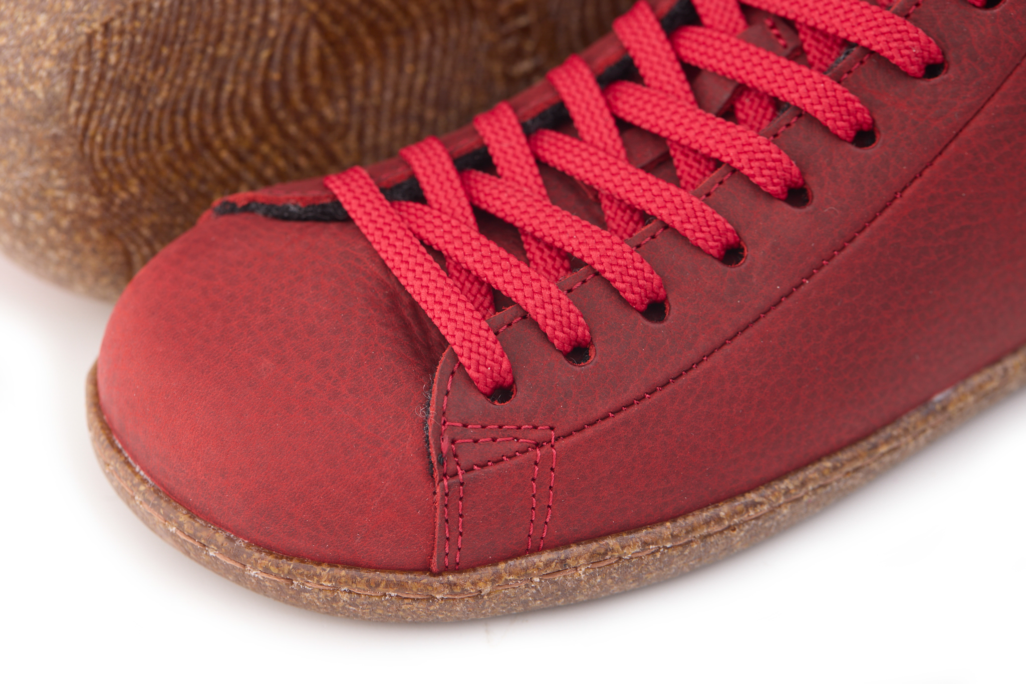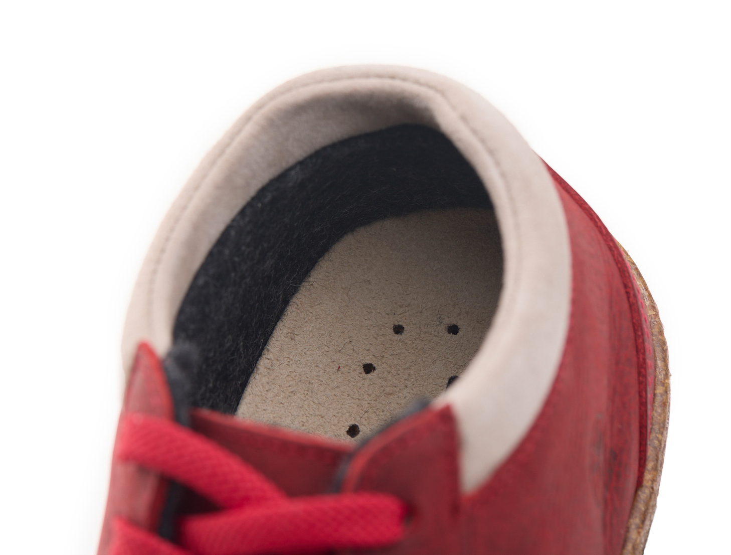 Polacchino mid comfort realizzato in nabuk bottalato, la fodera è in lana cotta, collarino imbottito in pelle capretta scamosciata con lacci in cotone e sottopiede estraibile ricoperto in pelle.