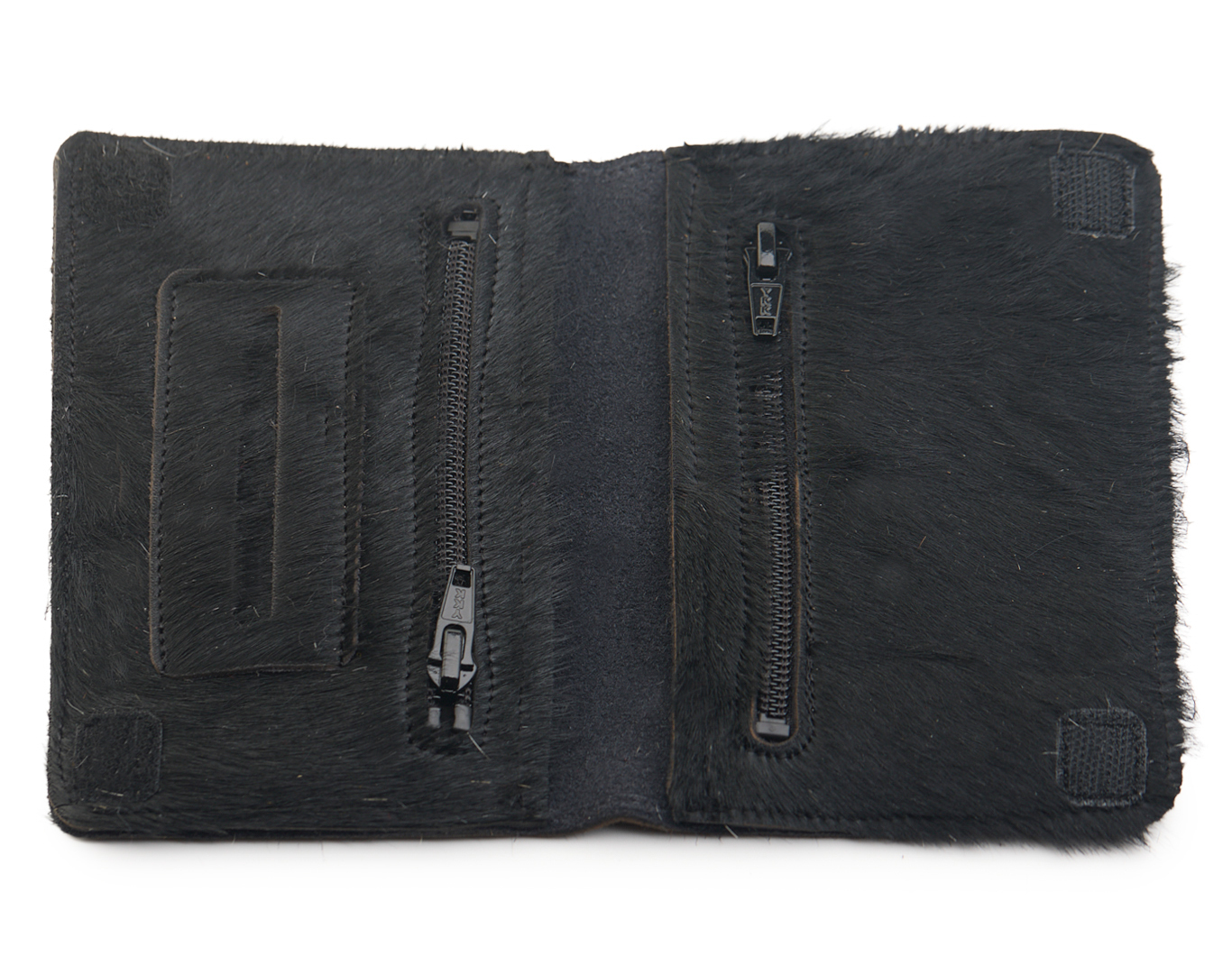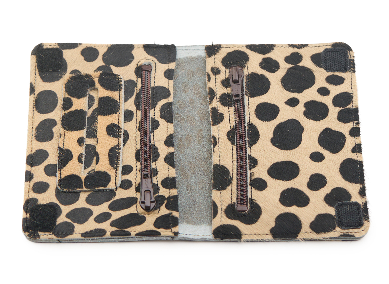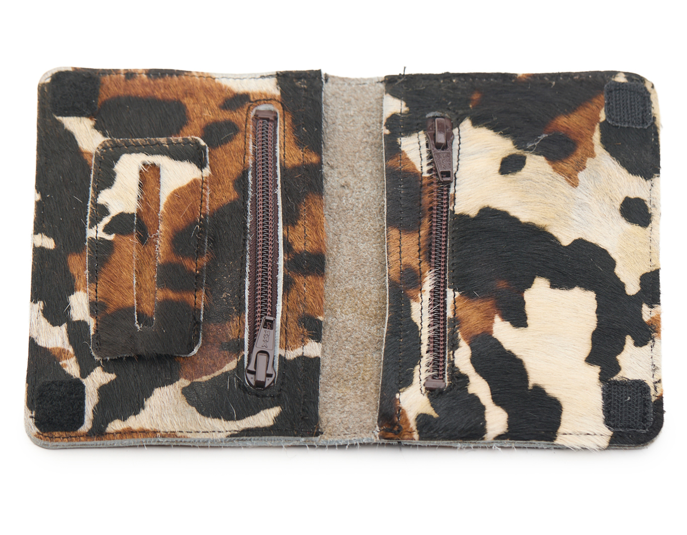 Booklet custodia porta-tabacco in pelle cavallino fatta a mano, con chiusura a velcro.