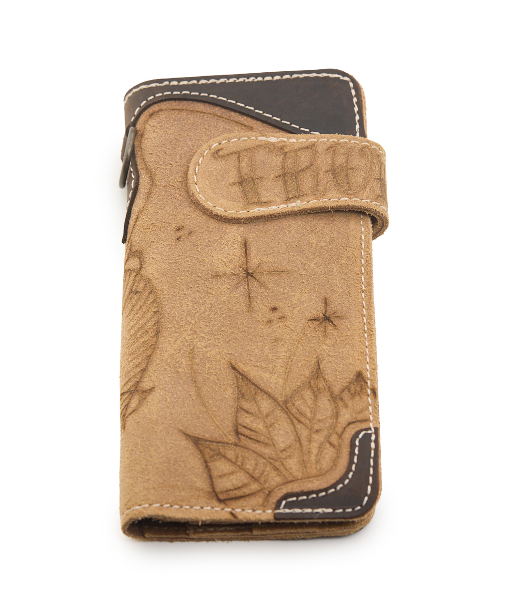 Portafoglio vintage realizzato in pelle scamosciata con inserti in pelle ingrassata, che garantisce resistenza e durata nel tempo. Lavorazione artigianale che conferisce al prodotto un carattere unico e distintivo. Ogni pezzo racconta una storia di qualità e attenzione ai dettagli, incarnando lo spirito del passato con un tocco di autenticità e uno stile senza tempo. Pirografato a mano da A.C Longboards con disegno cervo.