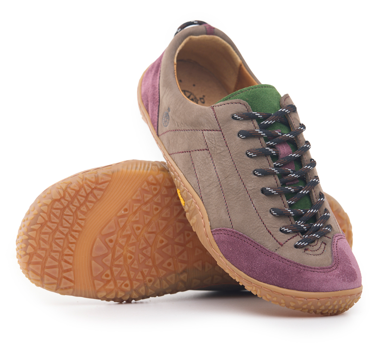 Scarpetta barefoot realizzato in pelle Nabuk morbidone e camoscio, fodera in pelle vitello e lacci stringhe tondi.
