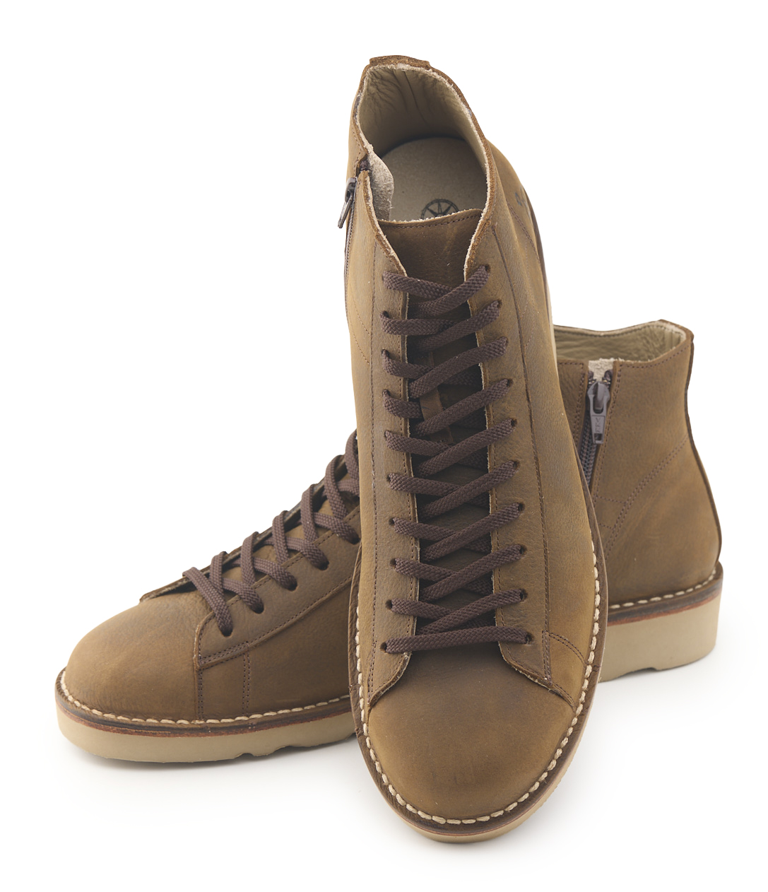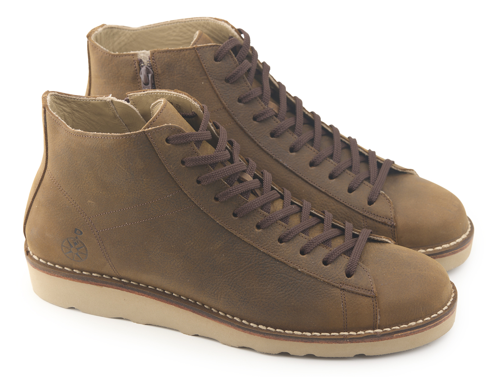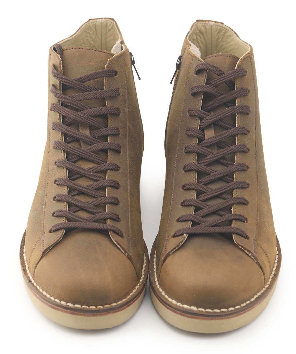 Stivaletto in pelle Nabuk pieno fiore, stringata con lacci in poliammide, fodera in pelle vitello e cerniera laterale.